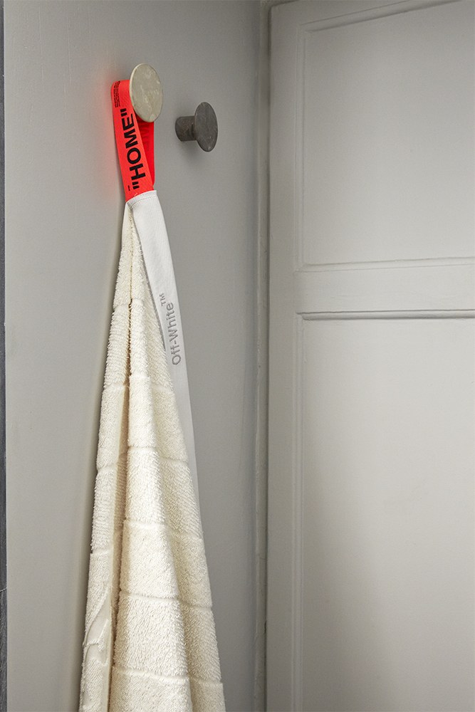 Comforts and necessities, to Abloh, are things like coffee mugs, sheets, terry-cloth towels with a matching bathrobe. Fittingly, everything is done in shades of—you guessed it—off white.