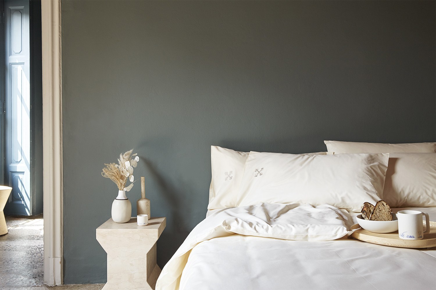 Comforts and necessities, to Abloh, are things like coffee mugs, sheets, terry-cloth towels with a matching bathrobe. Fittingly, everything is done in shades of—you guessed it—off white.