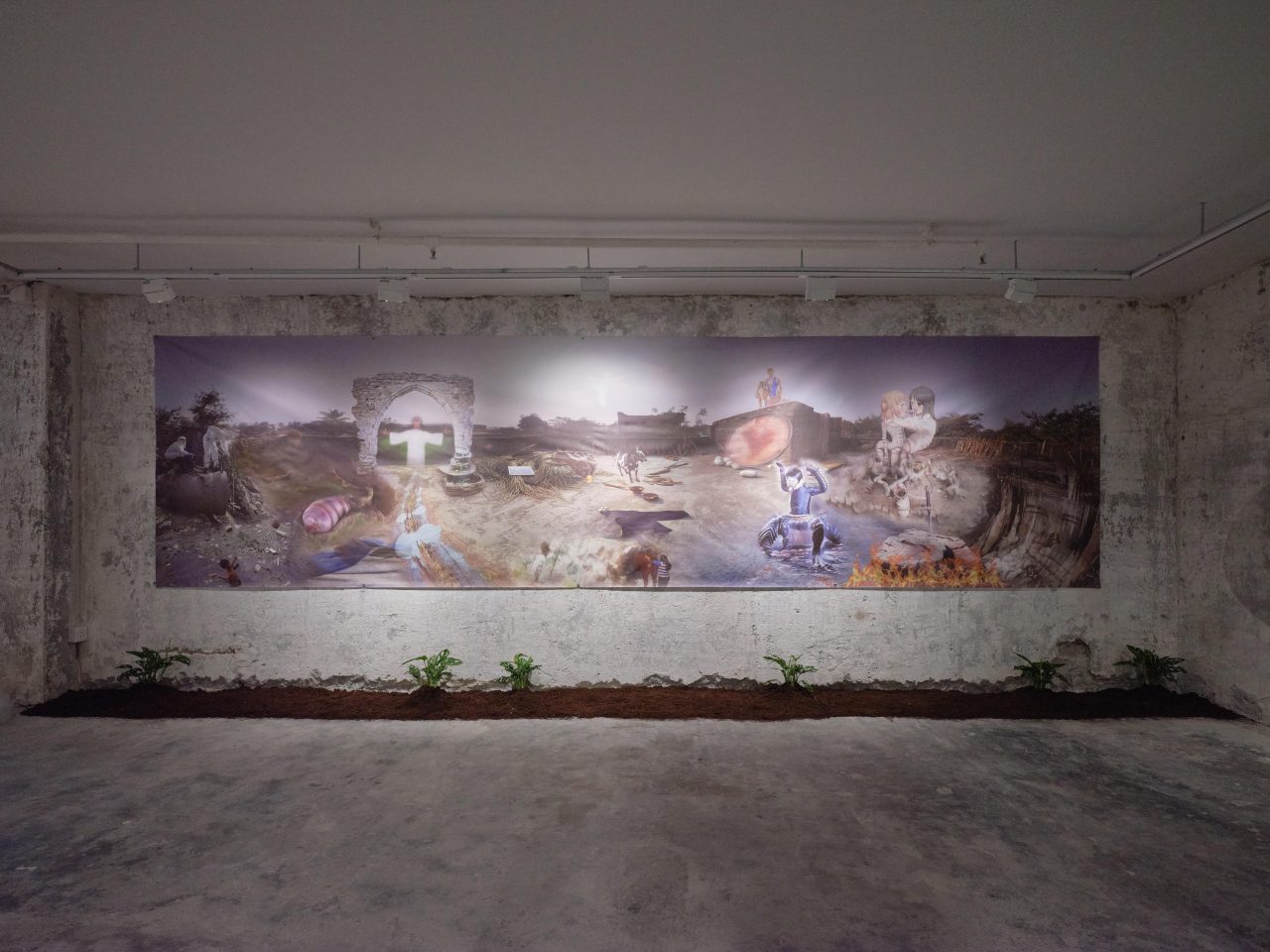 How would you define a “village”? Idyllic scenes of open pastures, livestock frolicking outdoors, and a neighbourly sense of community may come to mind. But this sense of a village couldn’t be more different for this artist duo, who sought to provide a more subversive and futuristic take on what a village could be. How would time-old rituals of a village manifest in a post-human, post-internet world? Could this alternate reality offer a space of respite and authentic living for the queer community?