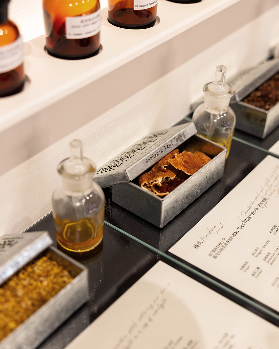 Stepping into To Summer’s Causeway Bay store is like stepping into a living scrapbook of Hong Kong’s cultural history. The space is divided into four zones, each telling a unique story. The Eastern Ingredients Studio greets visitors with mosaic tiles from the building’s original construction in 1958. Here, rare raw materials and essential oils are displayed alongside rare archival images of female artisans, courtesy of Chang Wai Chun’s lens.