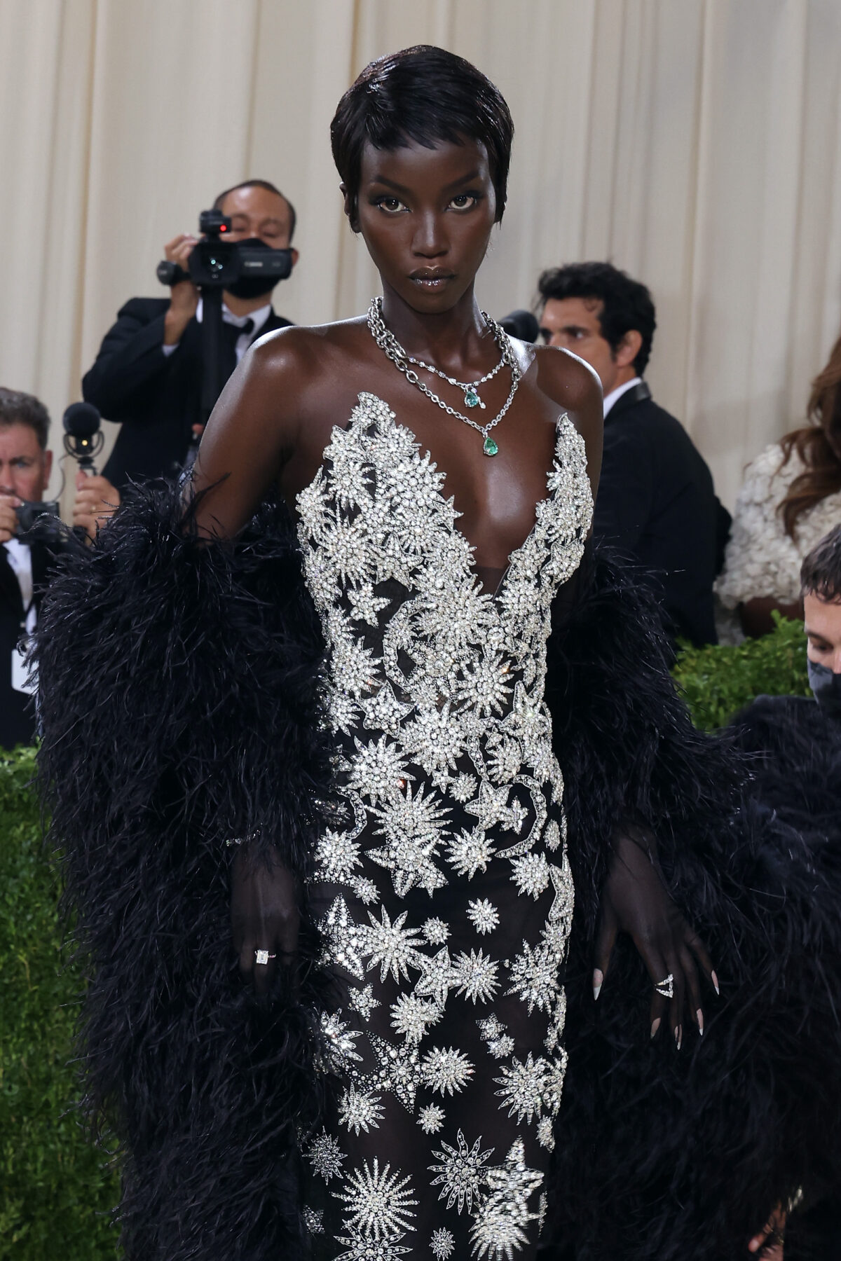 September 13, 2021 Anok Yai attends The 2021 Met Gala Celebrating In America: A Lexicon Of Fashion at Metropolitan Museum of Art wearing Oscar de la Renta Spring 2022