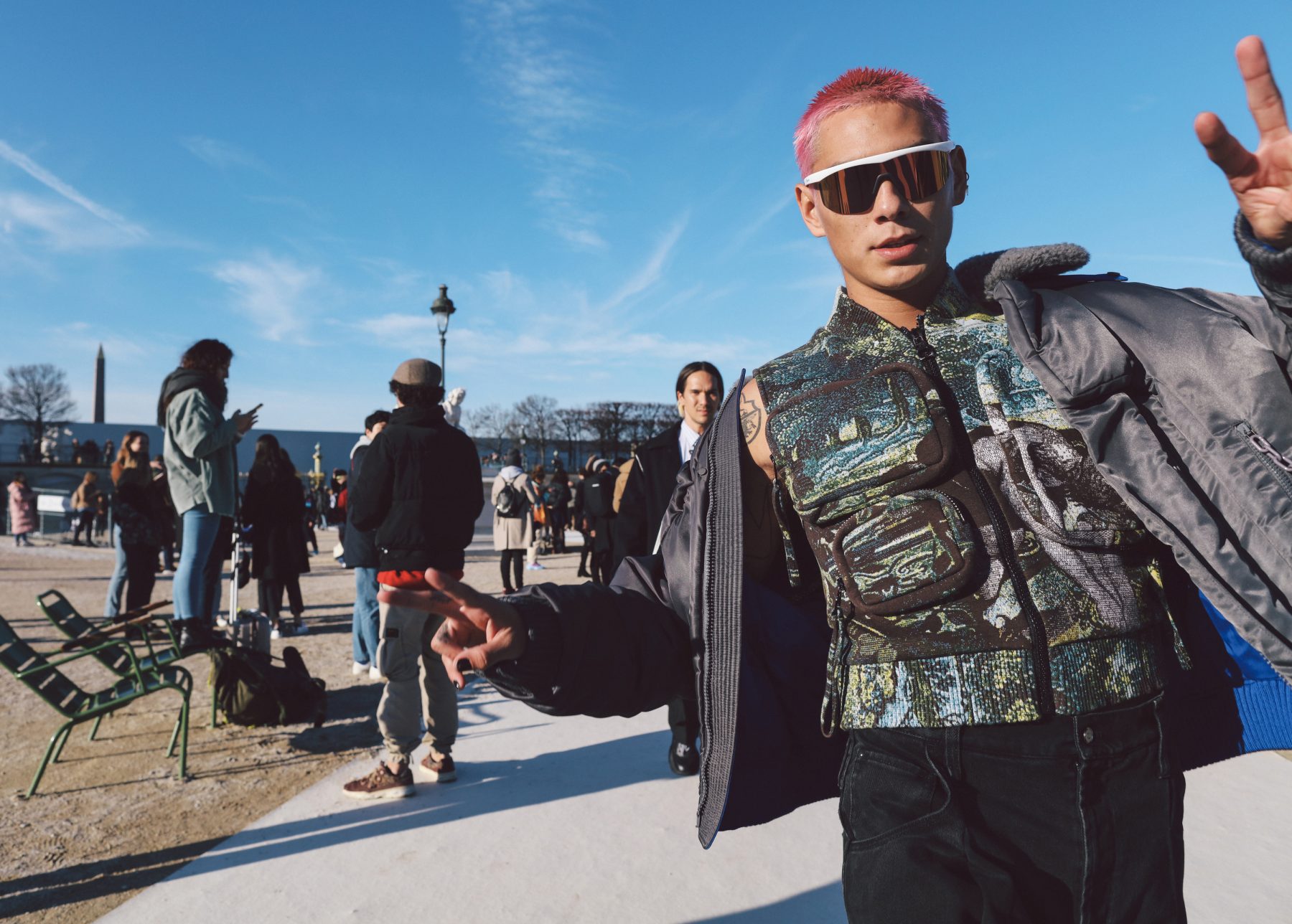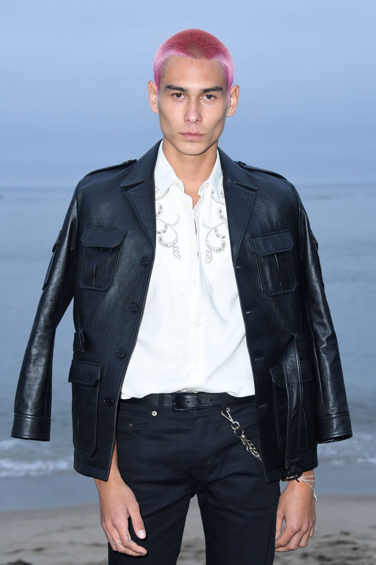 Born in Oahu, Hawaii, the 24-year-old spent his youth outdoors, fully immersed in the island’s surf and skate scene. A rising star in his small circle, Mock was propelled into the spotlight in 2019, after a video clip of him and his newly dyed pink hair found its way on to Frank Ocean’s Instagram — a friend had sent it to the singer who had also recently dyed his hair pink. Catching the eye of major fashion houses, it wasn’t long before Mock was walking runways and fronting campaigns for the likes of Calvin Klein, Saint Laurent and Louis Vuitton. That same year, Mock launched his own streetwear brand, Sorry In Advance.