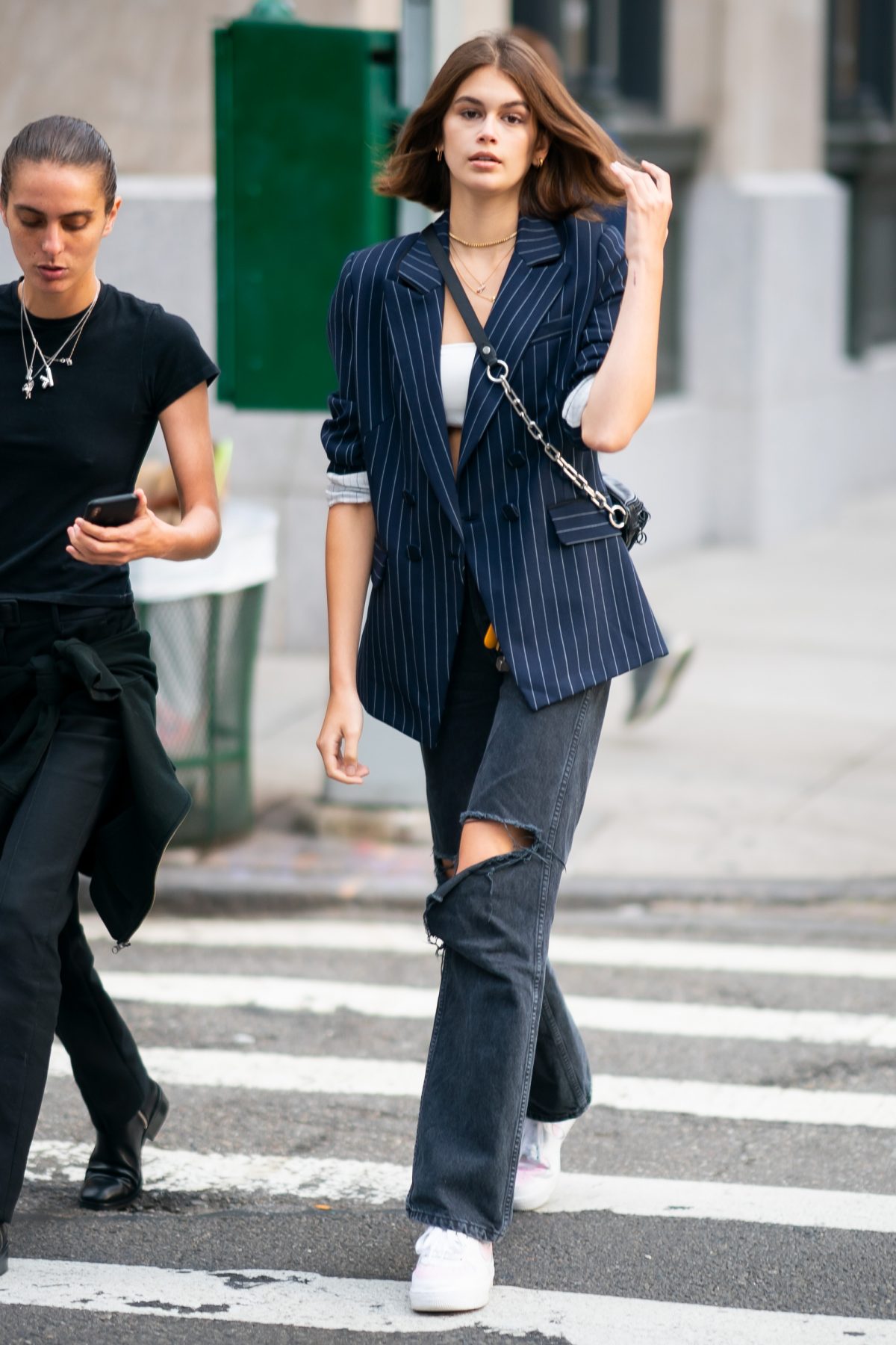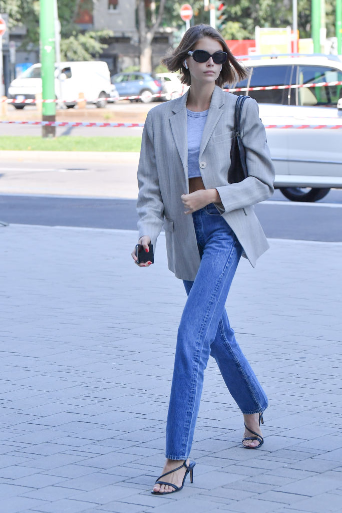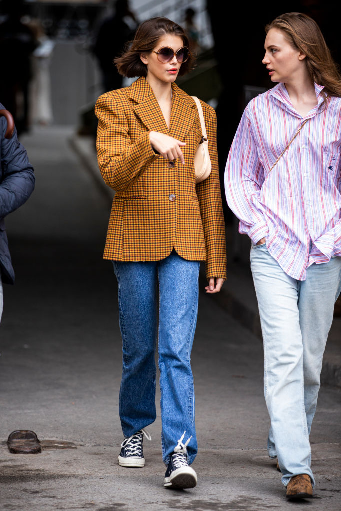 Supermodel and actress Kaia Gerber has fashion coursing through her veins, on and off the runway. As daughter of iconic supermodel Cindy Crawford, it comes as no surprise that Gerber flawlessly executes the model off-duty look. Her go-to outfit is a combo of straight leg jeans and a blazer – leather, plaid, shoulder-padded, oversized…you name it, Kaia’s probably got it. For a sophisticated red carpet look, the young model is a fan of maxi, floor-length dresses that are usually monotoned, lent a touch of sparkle with a few pieces of simple jewellery. As for shoes, the model has a penchant for timeless classics, seen always with a pair of Converse or sleek black boots on. Her “7 Days, 7 Looks” video for Vogue provides a glimpse of her boot collection, being made up of classy brands like By Far, Jimmy Choo, Paco Rabanne and Céline. And to accessorise, Gerber always dons a pair of oval sunglasses — probably the Ray-Ban Daddy-Os.