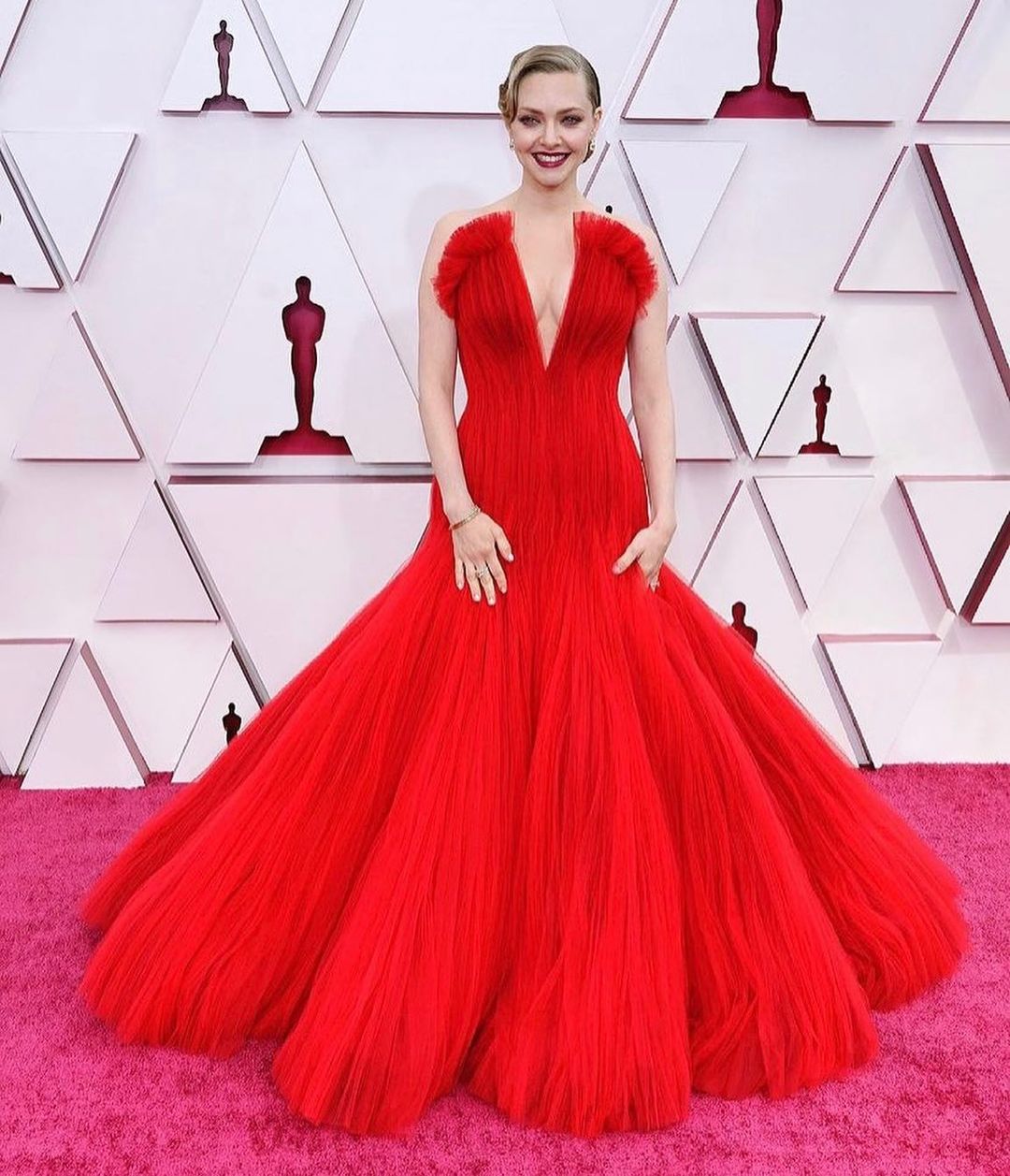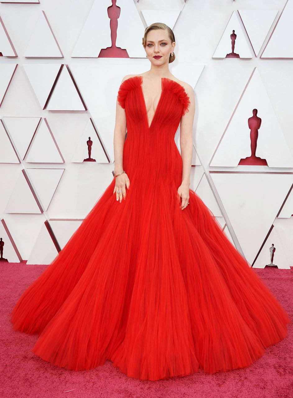 The 93rd Academy Awards has drawn to a close, officially wrapping up awards season for 2021. Although the celebrations were scaled-back, stars showed up in all forms of extravagant red-carpet regalia. Amanda Seyfried, nominated for Best Supporting Actress for her role in Mank, wore a frothy, scarlet Giorgio Armani gown, while Viola Davis, nominated for Best Actress for her role in Ma Rainey’s Black Bottom, wowed in a white Alexander McQueen dress with intricate embroidery detailing.