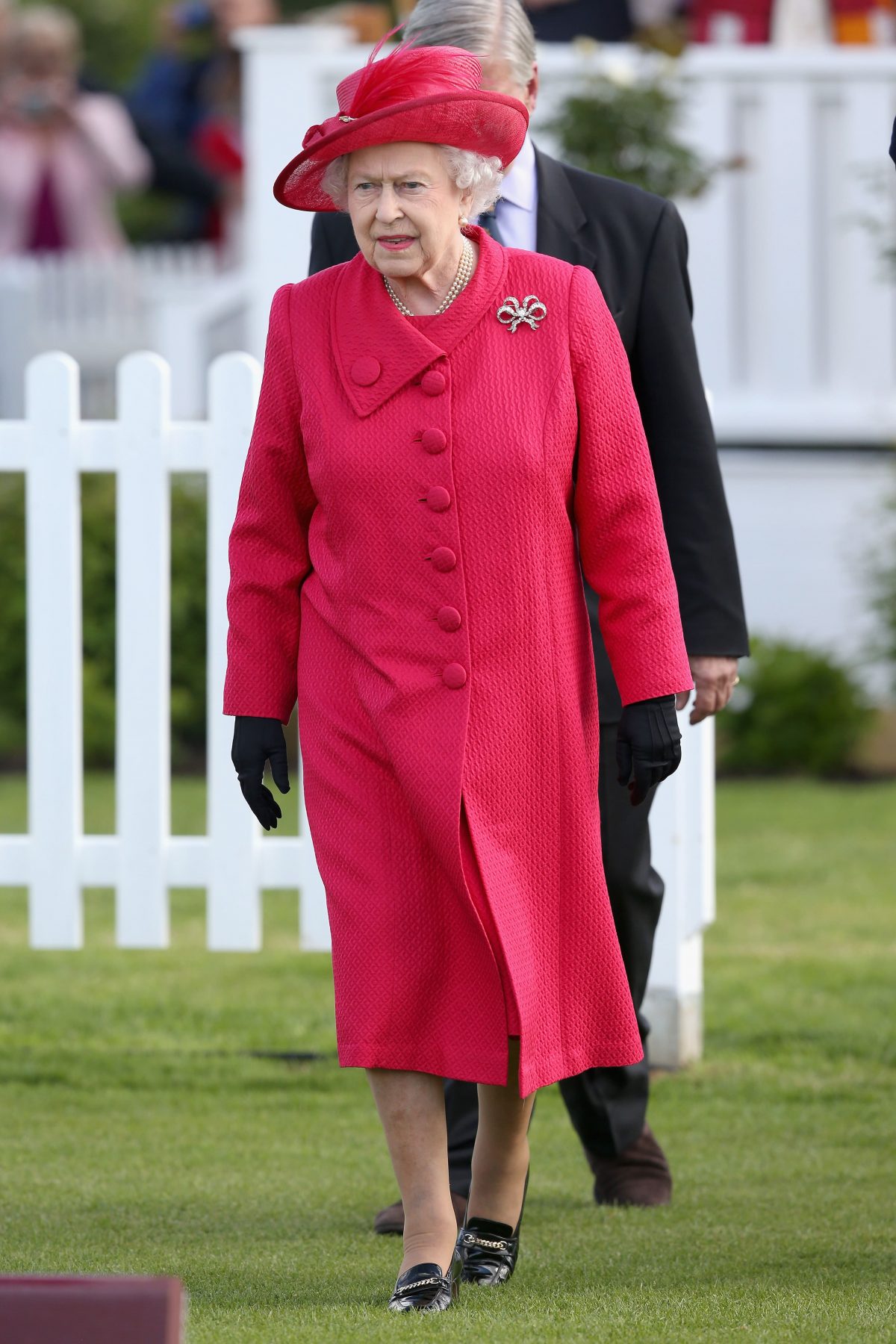 At the Cartier Queen’s Cup polo final in 2013, the Queen opted for a simple yet effective fuchsia and black combination.