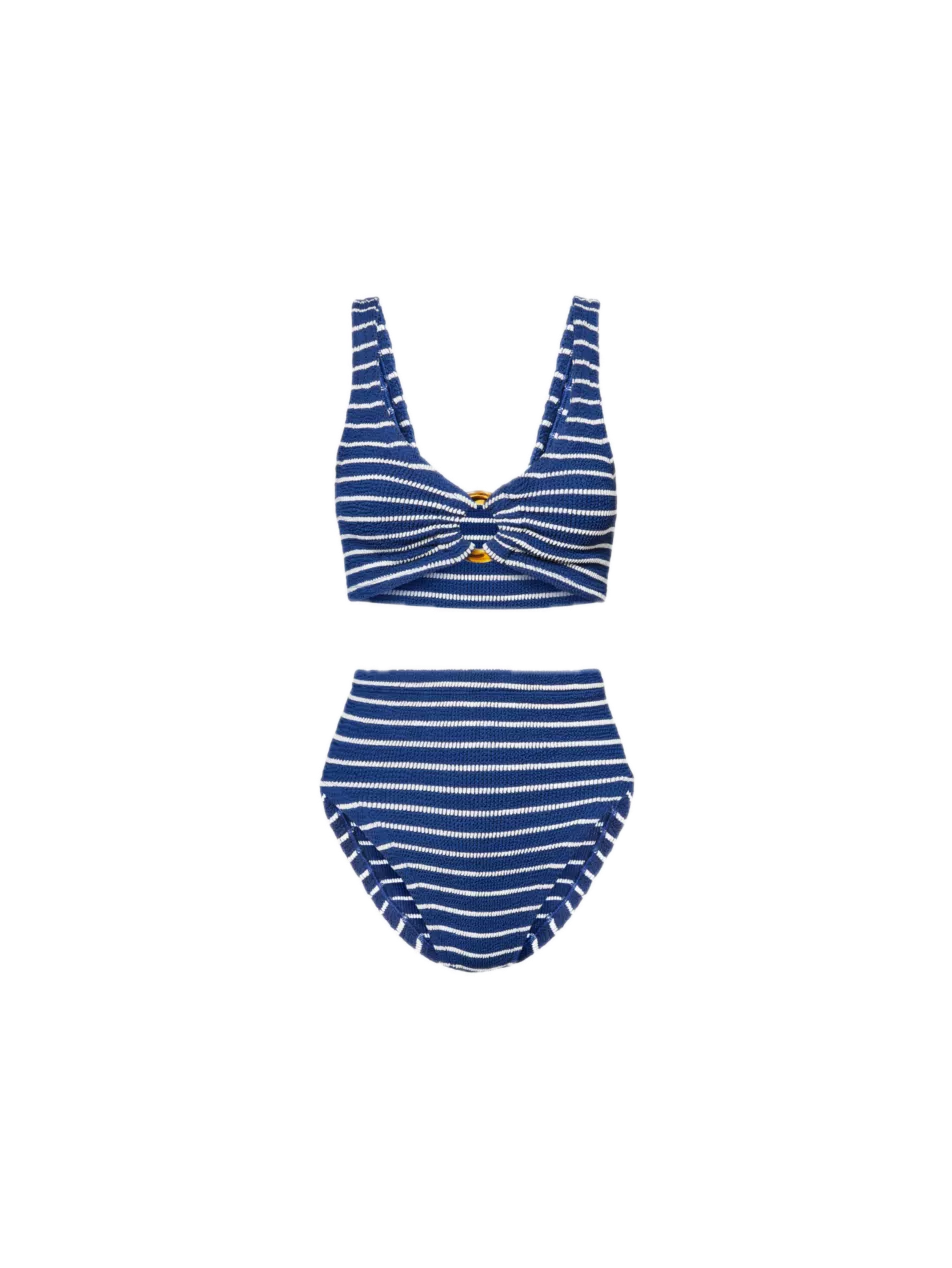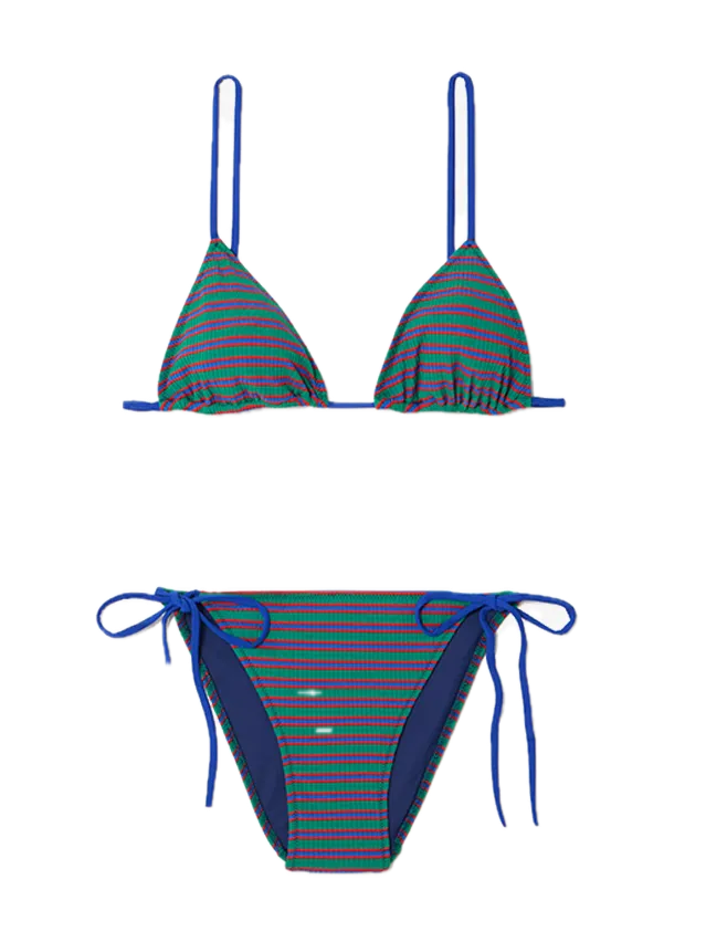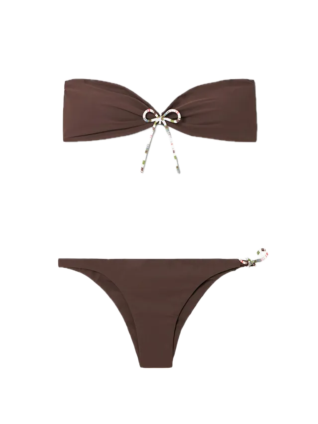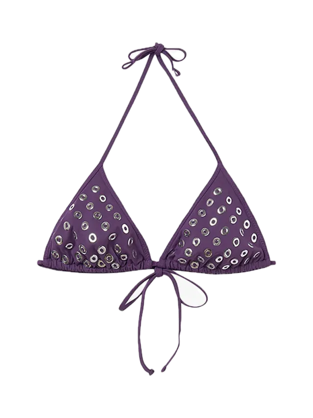 The beloved triangle top is up there in the pantheon of swimwear greats, and for 2025 it’s been given an upgrade by way of embellishments. Kylie Jenner wore Gimaguas’s studded Aro top (and matching swim hot pants, another of this season’s trending swim silhouettes) for a recent holiday. And during the same trip, she posed for beachside snaps in a diamanté-adorned, ’90s-hailing Chanel set, also cut to triangular perfection.
