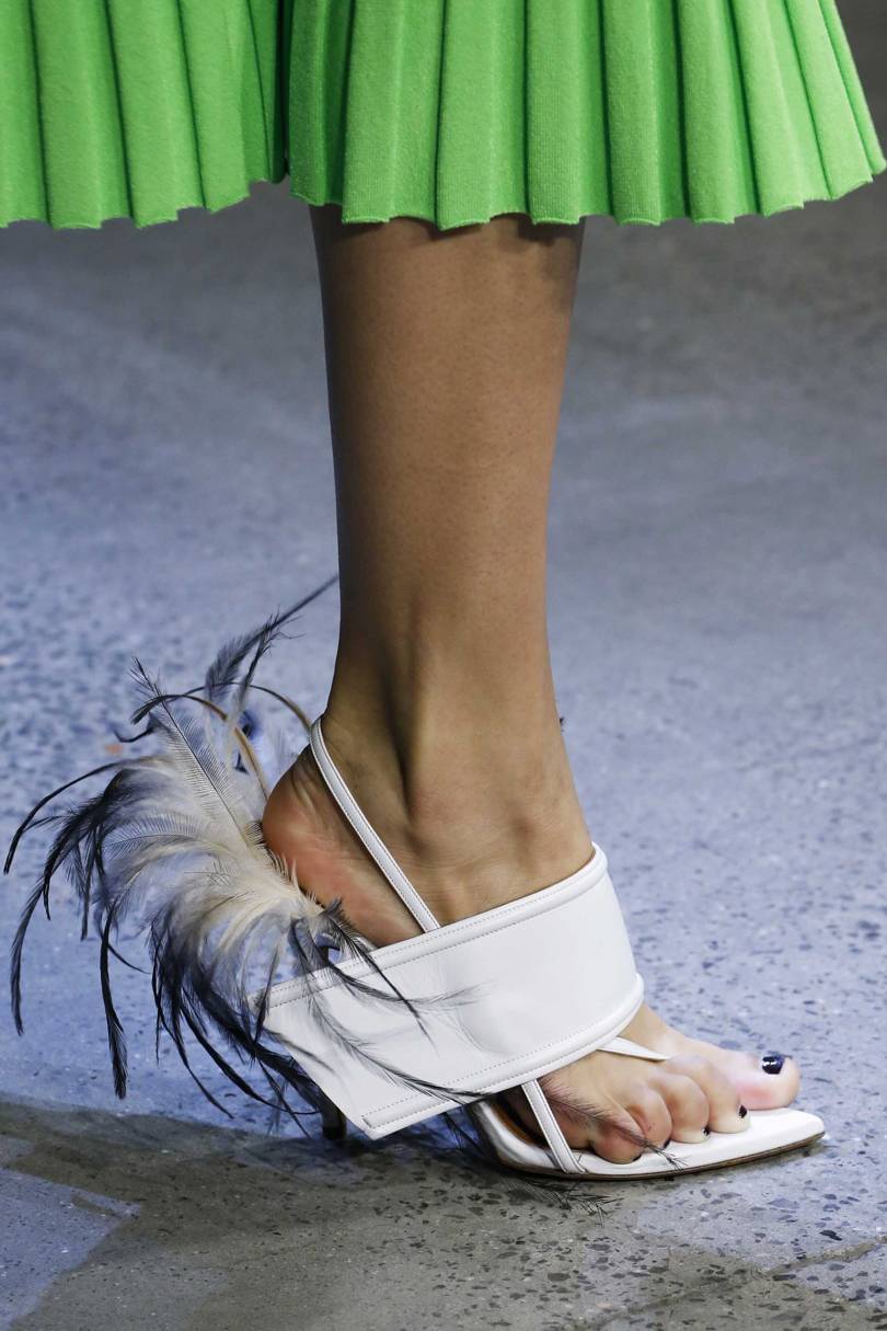 Feathers, feathers everywhere. This season, the abundance of fluff – from trims on cuffs to all-over – took on a new form of peacocking. But it was the feather shoe that was the stand-out buy, gently fluttering at Dries Van Noten, Brock Collection and Valentino, whose chunky leather sandals are already topping Vogue editors’ wish-lists.