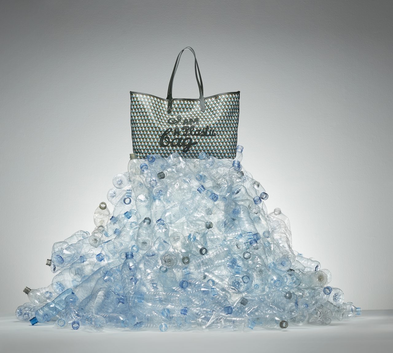 Riffing off her 2007 campaign 'I'm Not A Plastic Bag', Anya Hindmarch created her 'I Am A Plastic Bag', with each bag made from 32 half litre recycled plastic bottles