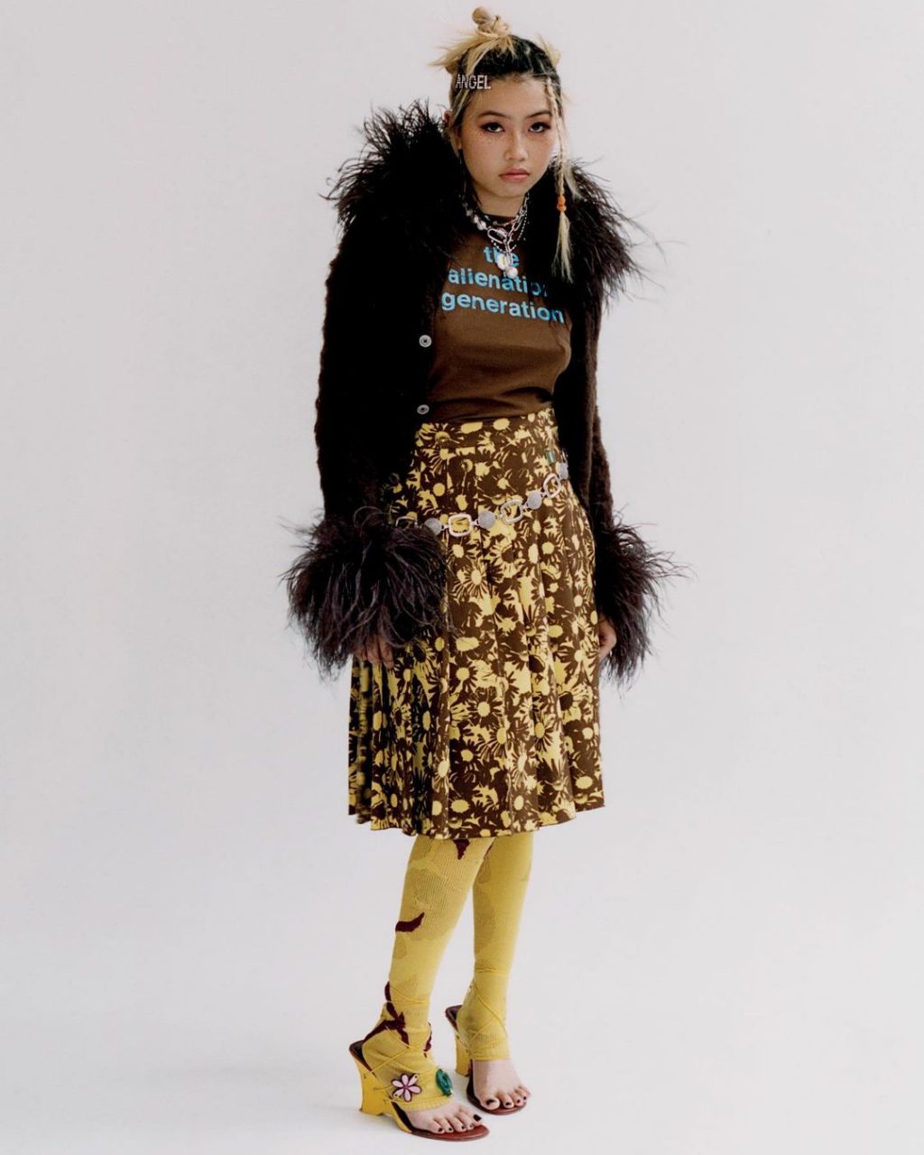 Camouflage miniskirts, original Claire Barrow illustrations, and images of a conjoined teddy bear litter the latest Heaven collection. How does the team determine which pieces will sell? “The Kiki boots were made in Italy for the Marc Jacobs autumn/winter 2016 show, and we wanted to make them more accessible this time around [by including them in this Heaven collection]. There was a lot of demand for them – I was on my laptop frantically trying to buy them like everyone else!” Nirui recalls. “Everything is so unpredictable. We’re not purposefully trying to get into the Gen Z mindset, we’re just working with people and creating things that we think are cool.”