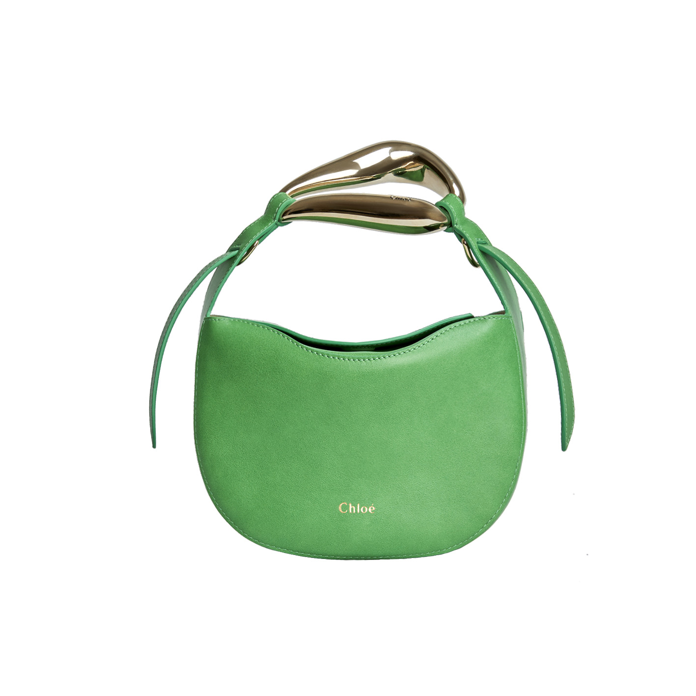 Chloé’s vibrant green Kiss purse features a metal top handle designed to resemble lips. The chic carryall can be worn over the shoulder or as a cross-body.