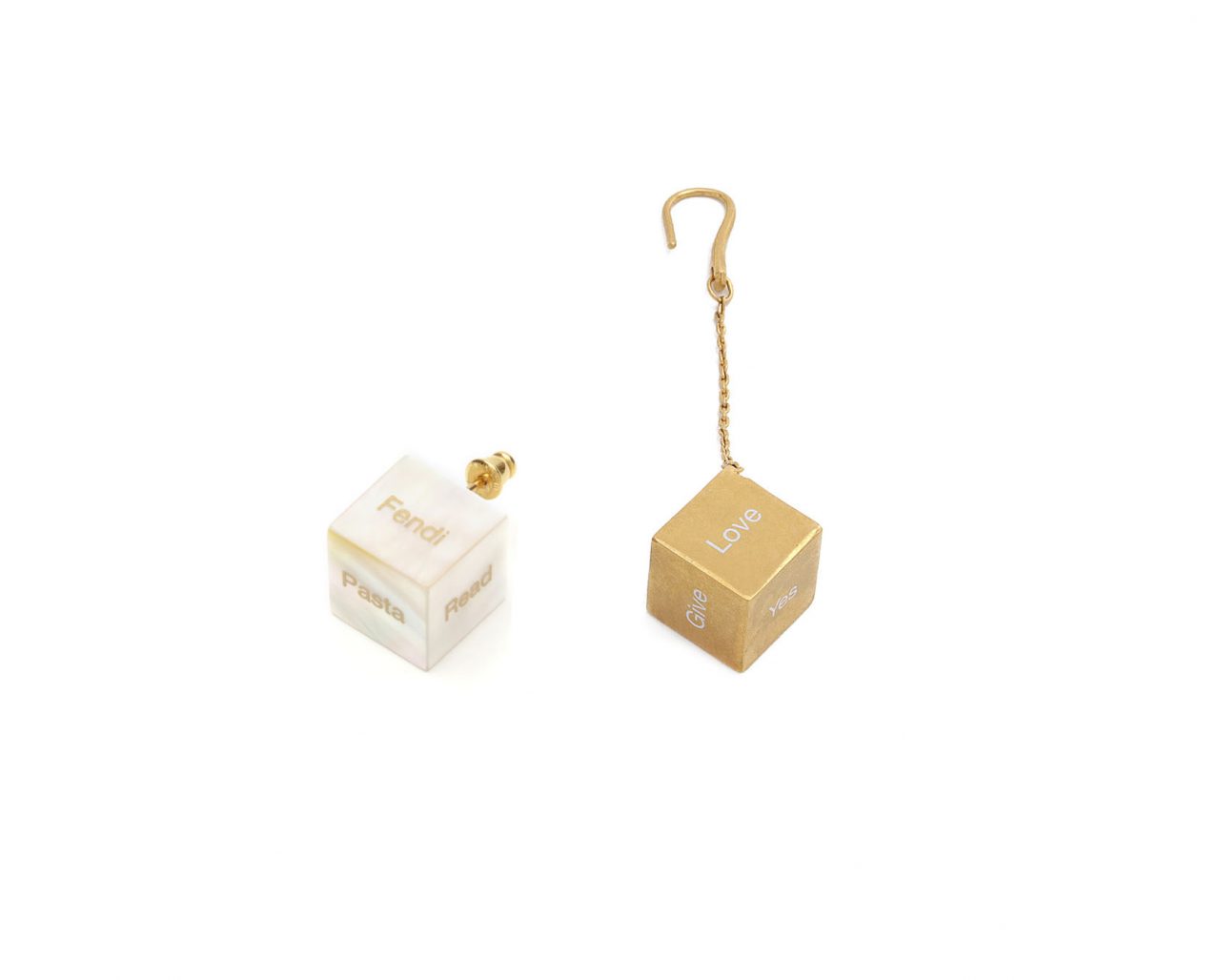 Crafted in Italy, these mis-matched earrings from Fendi will surely bring you some good luck. Each dice features quirky words such as ‘Pasta’, ‘Drink’ and ‘Ok’.