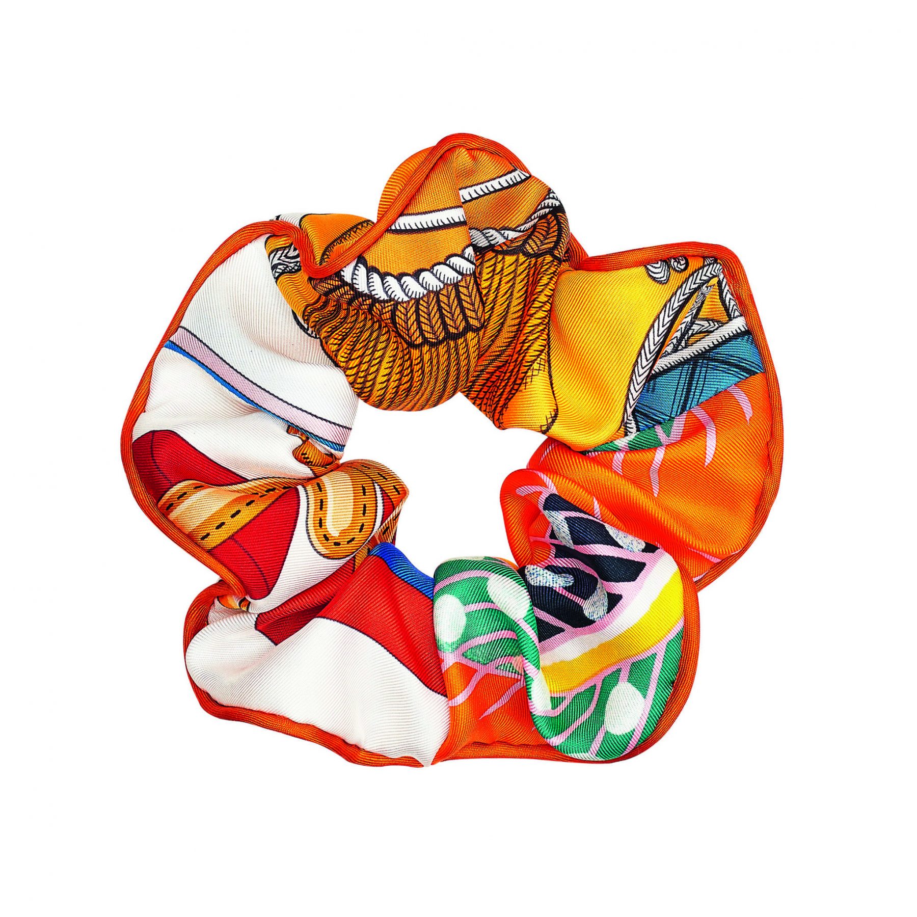 Hermès Scrunchie in printed silk twill; HK$1,830 at Hermés boutiques