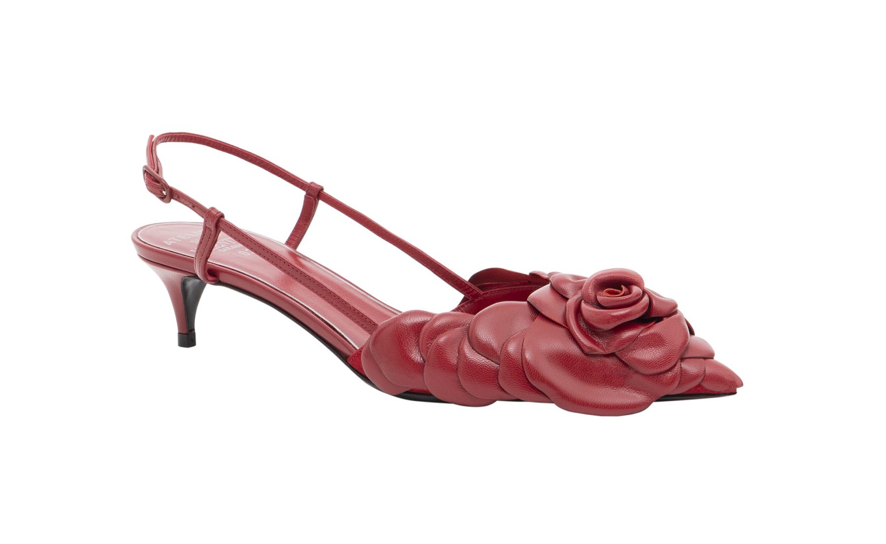 Valentino Garavani’s Atelier 03 Rose Edition slingback pumps are adorned with overlapping leather petals to create a 3D flower. Wear this statement shoe to work or on the weekends.