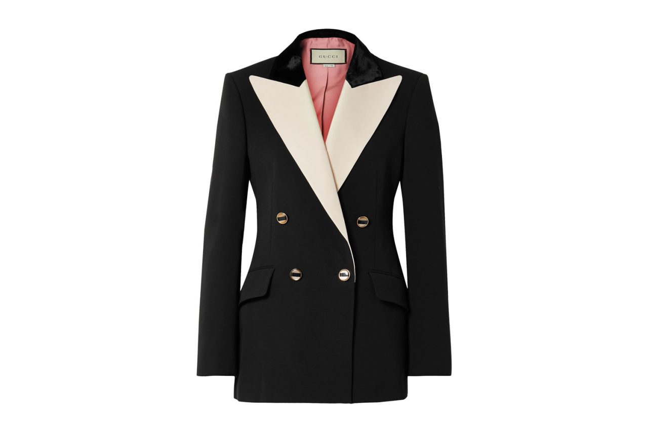 Gucci Double-breasted velvet and satin twill-trimmed silk and wool-blend blazer; HK$36,500 at net-a-porter.com