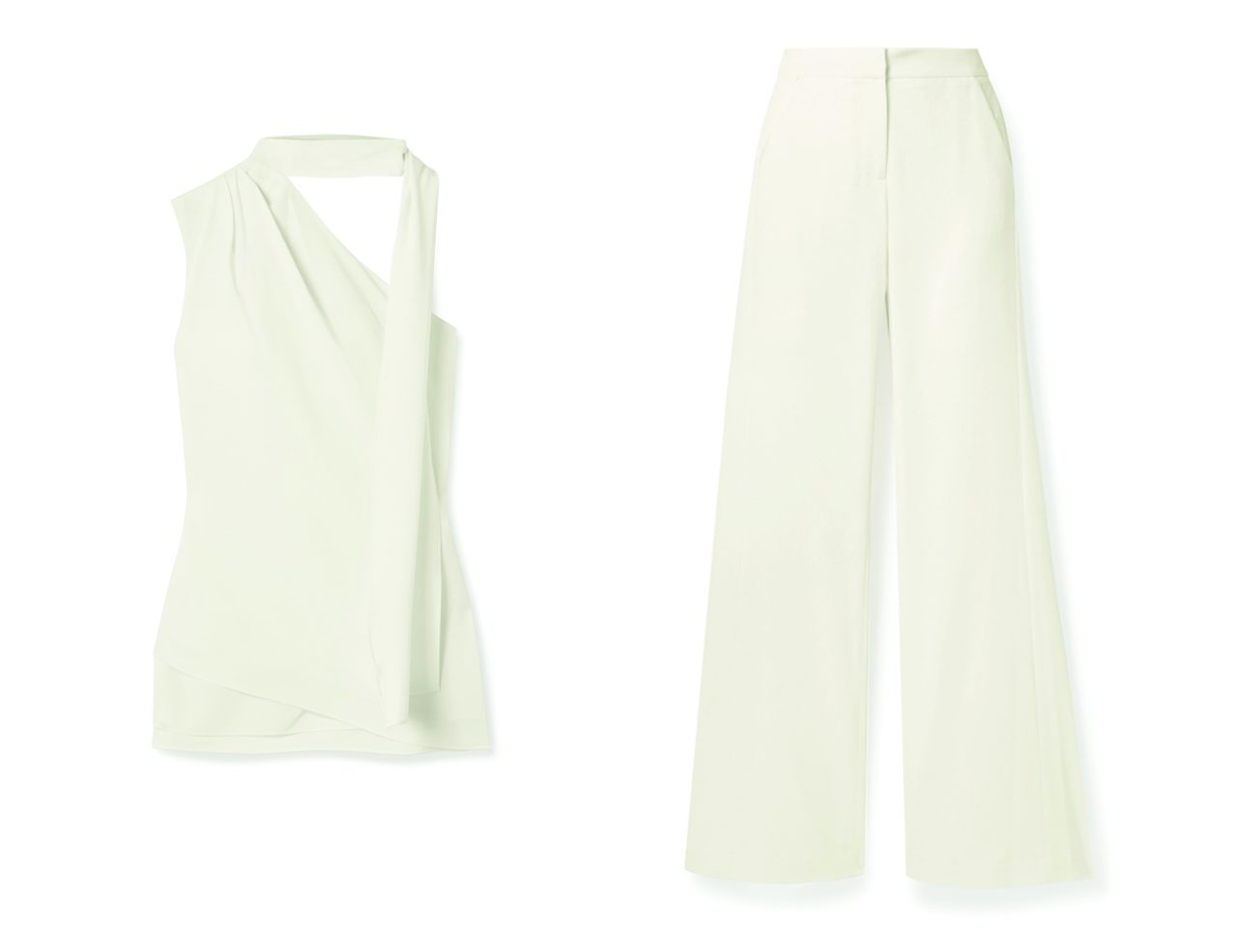 Halston Heritage Tie-neck one-shoulder crepe top; HK$2,126.25 at net-a-porter.com, Halston Heritage Crepe wide-leg pants; HK$2,835 at net-a-porter.com
