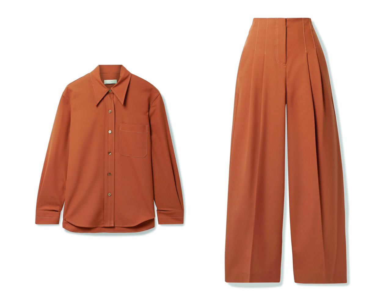 LVIR Wool-blend shirt; HK$2,100 at net-a-porter.com, LVIR Pleated wool-blend wide-leg pants; HK$2,210 at net-a-porter.com