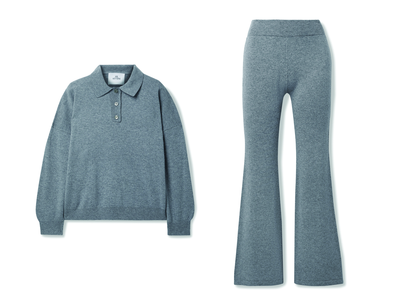 Mr. Mittens Mélange wool and cashmere-blend polo shirt; HK$3,170.99 at net-a-porter.com, Mr. Mittens Mélange wool and cashmere-blend flared pants; HK$2,977.30 at net-a-porter.com