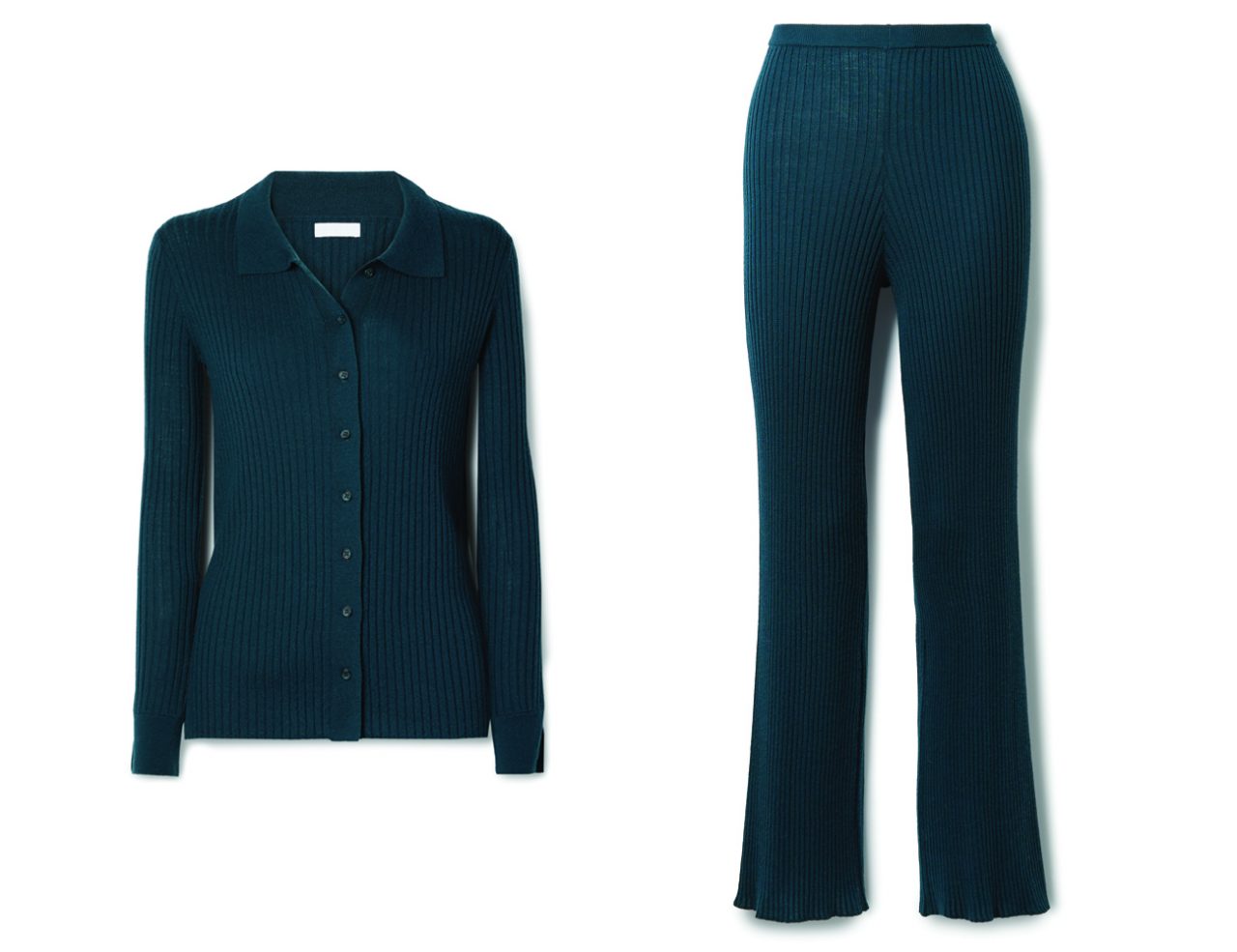 Sablyn Reign ribbed cashmere cardigan; HK$3,985 at net-a-porter.com, Sablyn Jordan ribbed cashmere straight-leg pants; HK$4,230 at net-a-porter.com