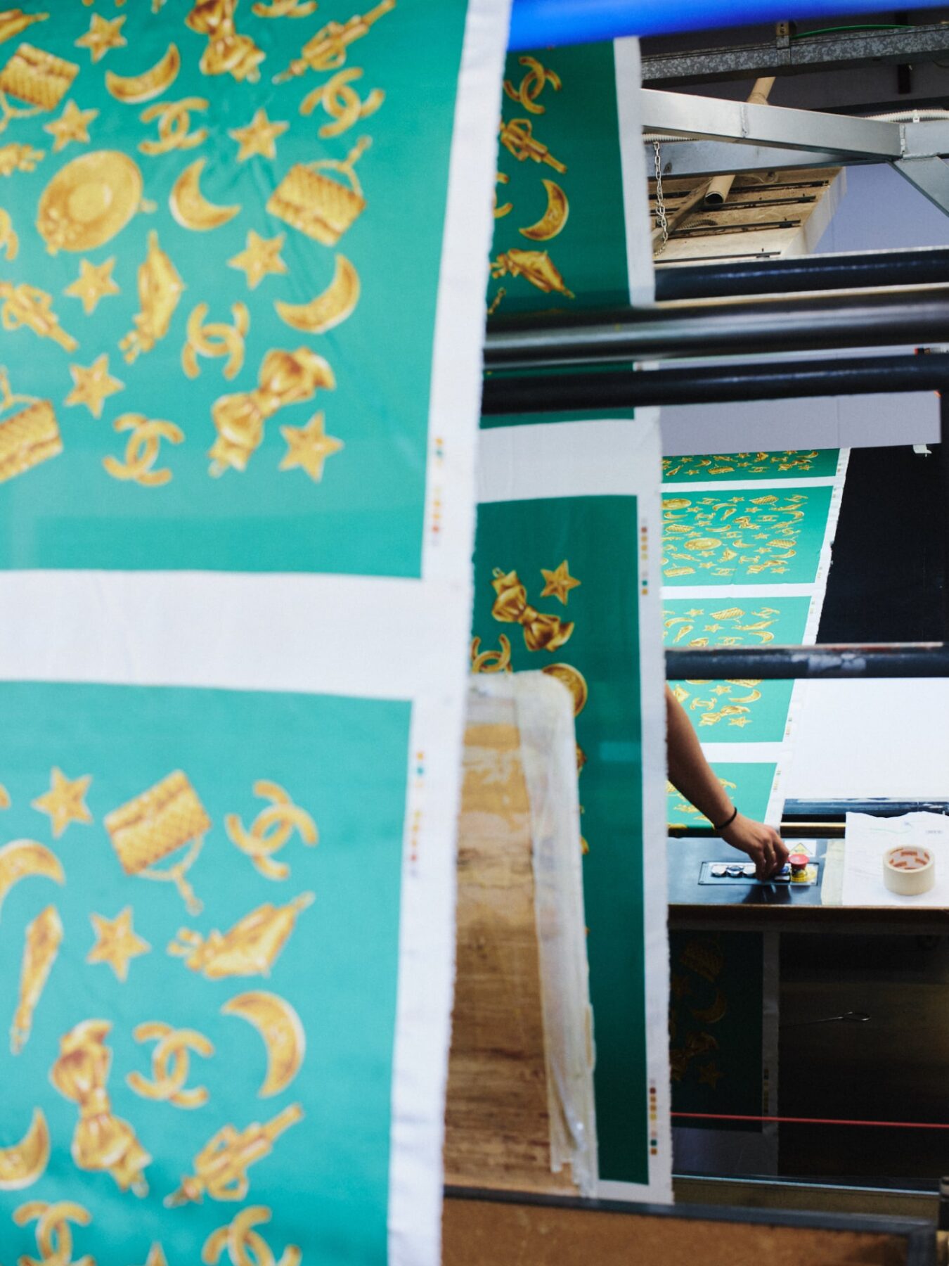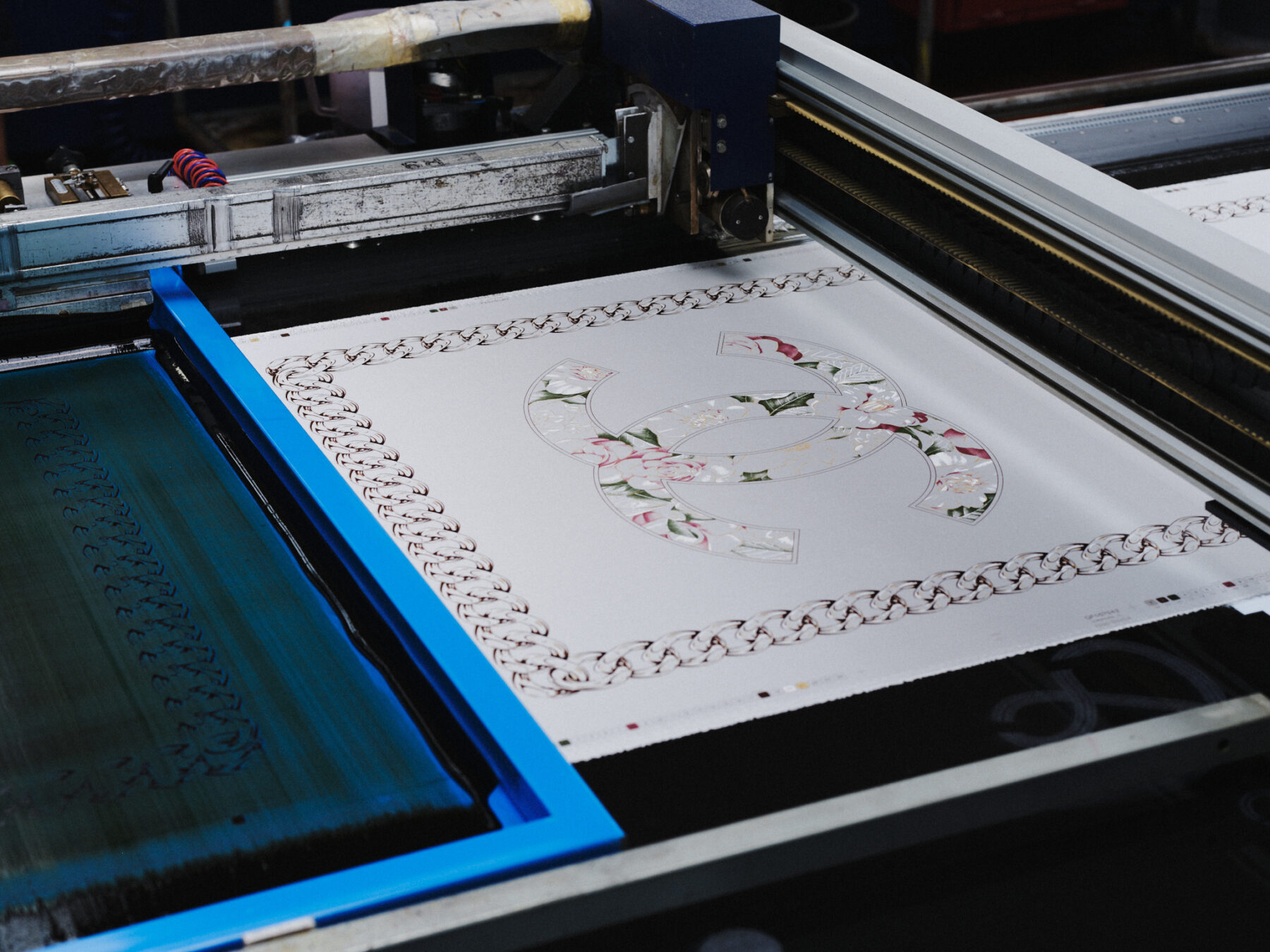 Once the silk is printed, it undergoes a series of finishing steps—steaming, washing, and ironing—to fix the colours and achieve the desired texture. These final touches transform the fabric into something extraordinary, ready to be cut, sewn, and styled into CHANEL’s iconic garments and accessories.