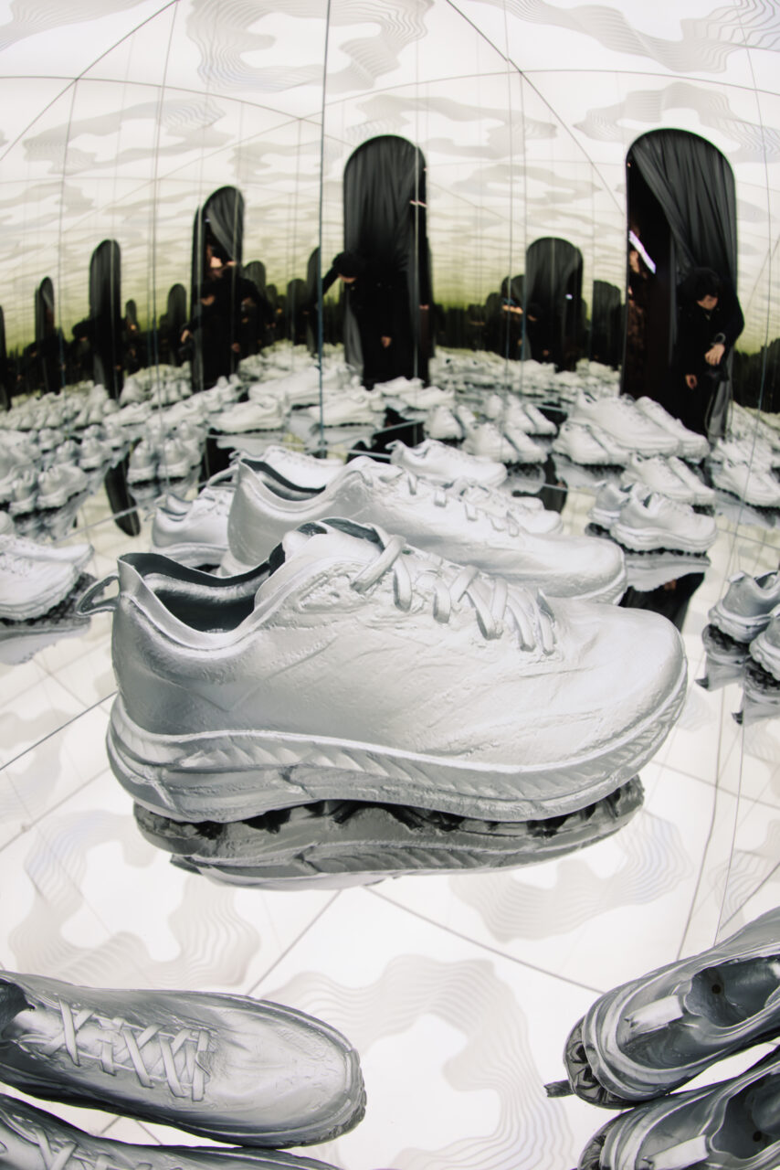 Keen for a bit of HOKA history? The running shoe brand is hosting their Mafate Studio pop-up to the K11 Musea Promenade until November 2, 2025. Within a reflective chrome box pulsating with neon signage, the theme “Trail Born, Urban Desired” comes to life in a showcase of the Mafate shoe’s evolution from the HOKA’s first trail running shoe into an everyday marker of style and performance.