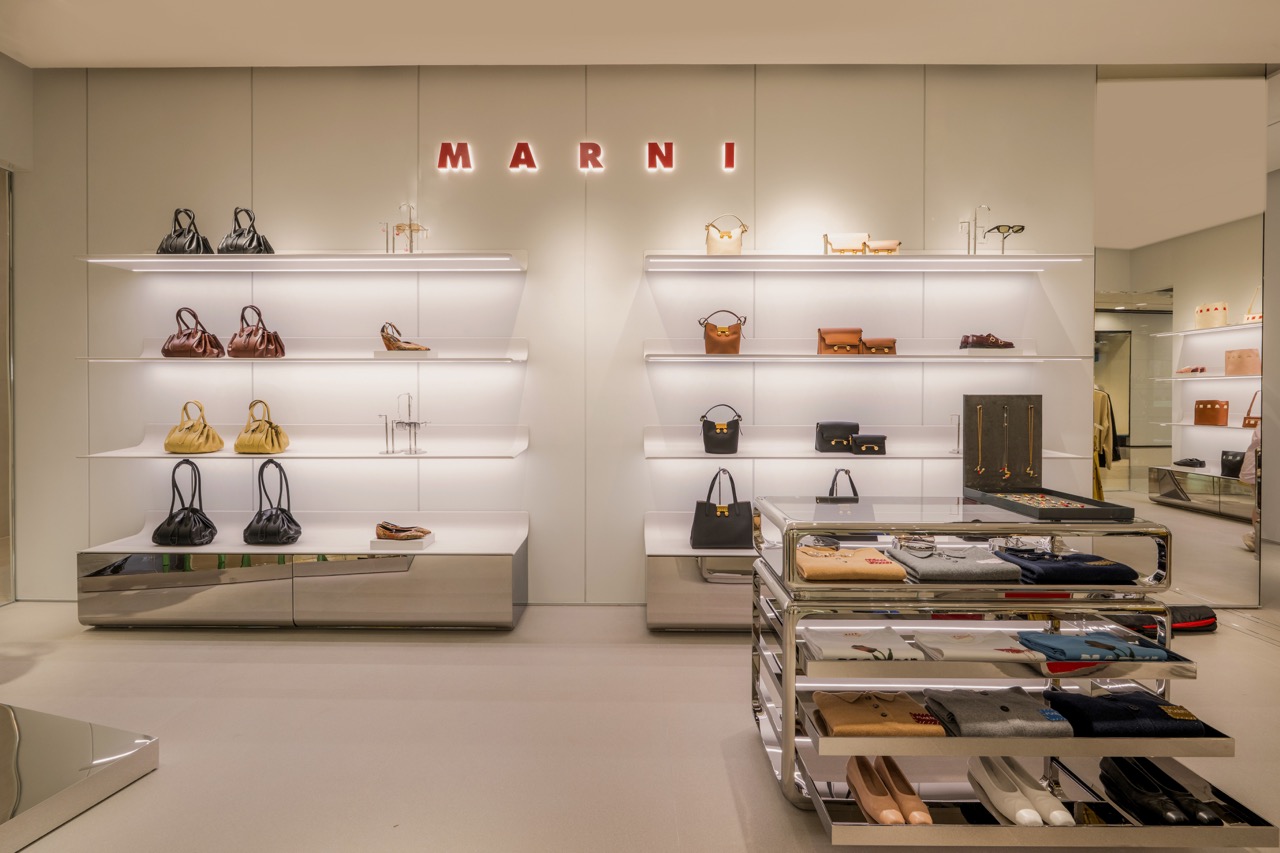 Marni has opened its latest boutique at ifc mall. Rendered in sleek grey and white with polished silver elements, the 1,800-square-foot space is home to women’s and men’s ready-to-wear, shoes, accessories, and handbags.
