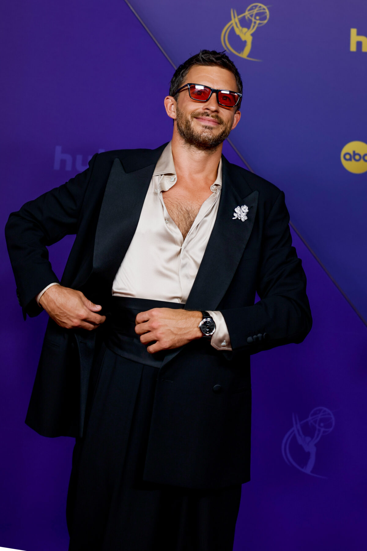 At the 76th Emmy Awards, for which Bailey was nominated for Best Supporting Actor as Tim Laughlin in Fellow Travelers, he stepped out in an Armani black suit with a floral brooch from De Beers. He further dials up the heat by unbuttoning his shirt and wearing tinted sunglasses, matching the steamy nature of the series.