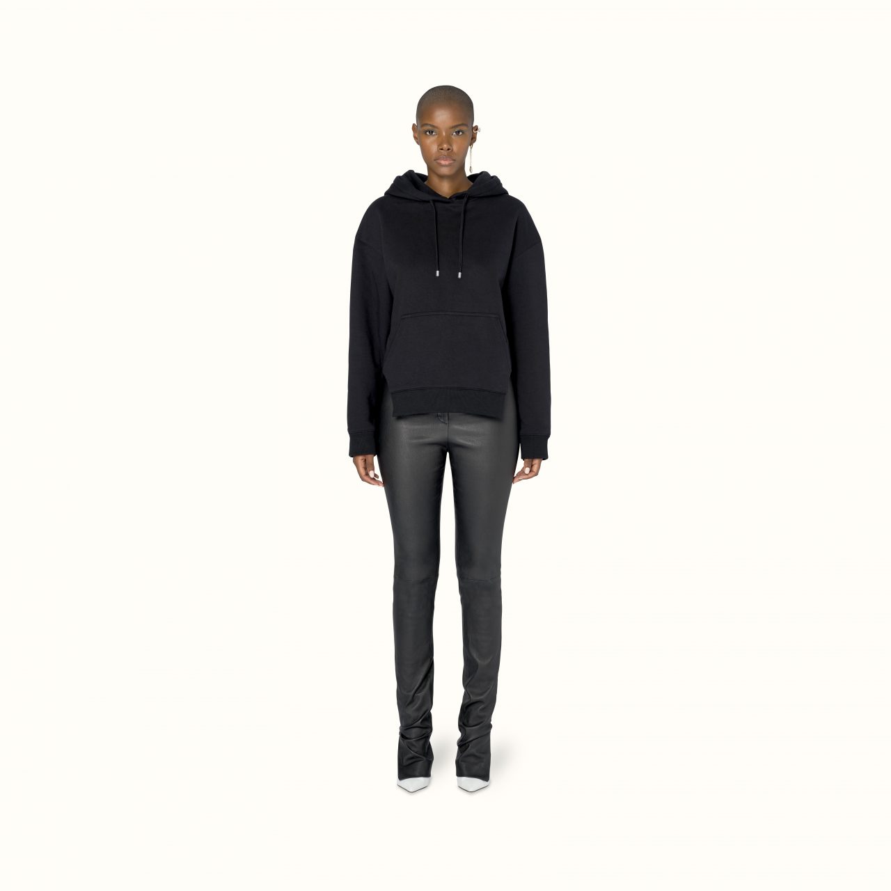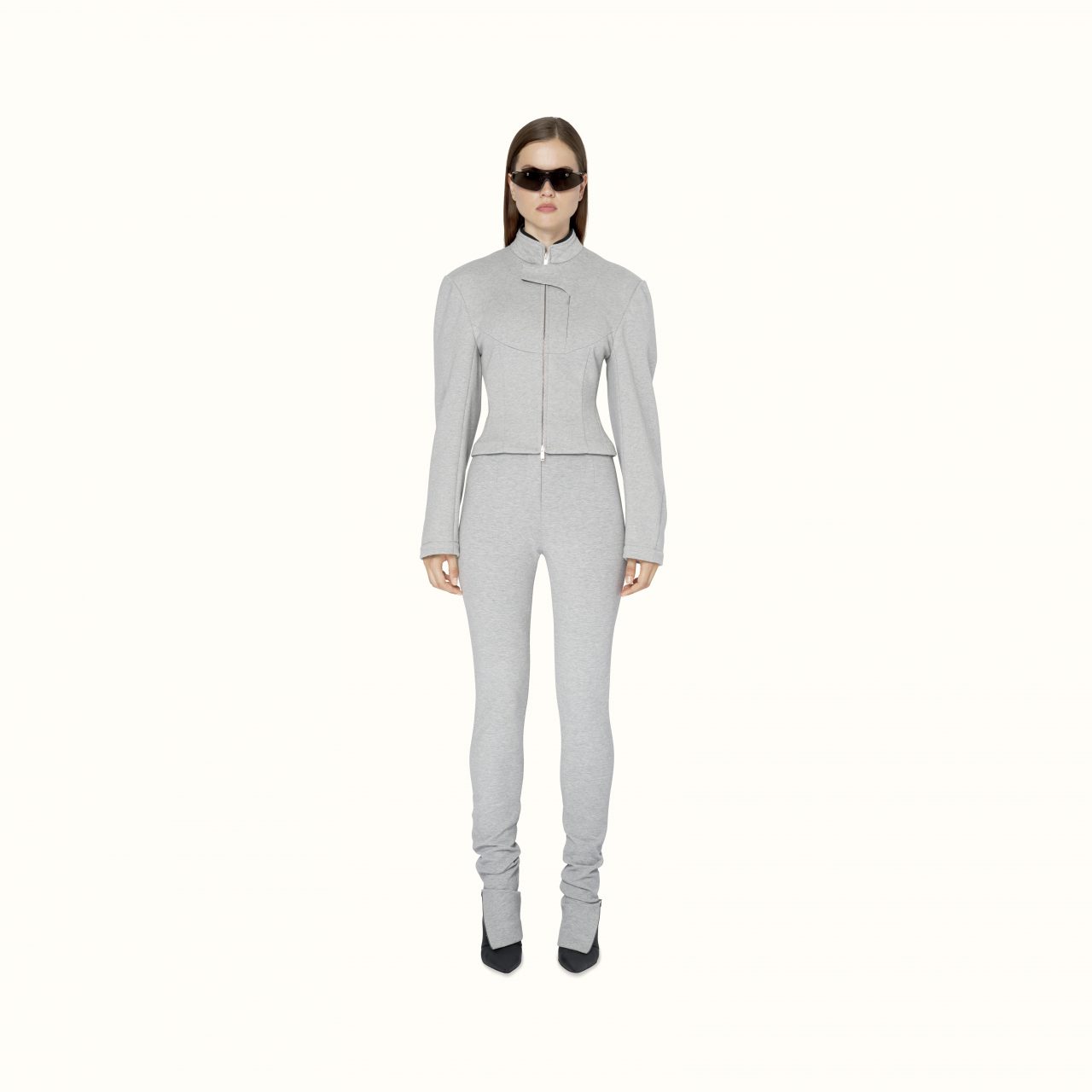 Available exclusively online, Release 8-19 introduces a range of pre-fall staples designed to challenge and transform traditional suiting. Double-breasted satin blazers appear in a light mulberry sheen to feature the Maison’s signature waist-cinching form, while the use of cotton-jersey is elevated into biker-style sweatshirts and ankle zip pants that elongate the silhouette. For shoes, Rihanna introduces Fenty’s first-ever boot — the Corset boot featuring an angular T-heel — along with twist-strap pumps in white leather and wasabi satin. Accessories-wise, pearls feature in a series of arm cuffs and free-hanging hoops, joined by the label’s foldable sunglasses in a new jet-black colouration.
