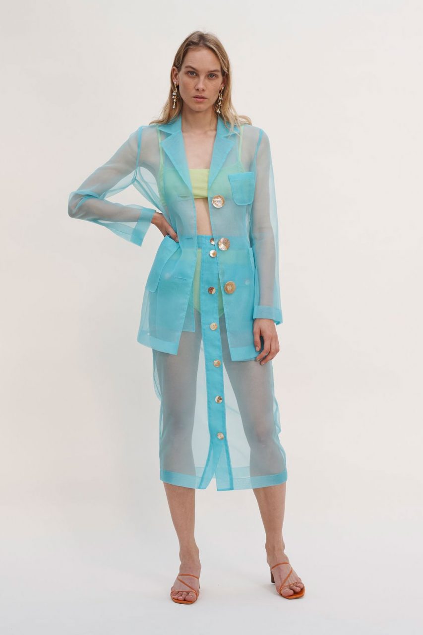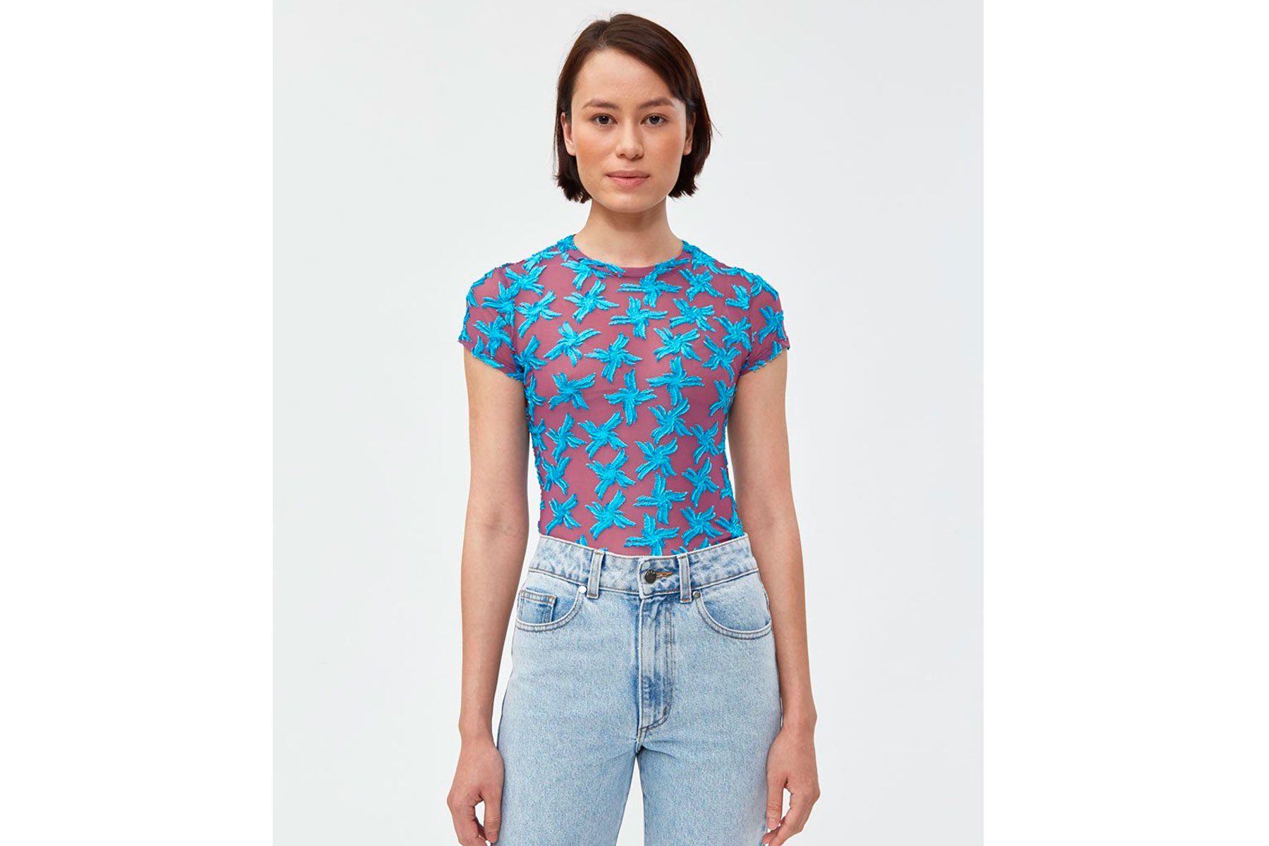 Sheer tops are an elegant answer to surviving the summer heat. Sartorially speaking, see-through materials – mesh, silk organza and lace – make great layering pieces that add textural contrast and soft, sheer volume at whisper weight. Look to Prada and Rejina Pyo for a burst of neon colour or opt for the sepia tones of Molly Goddard and Emilia Wickstead. There are the boxy bowling shirts from Bode and Rachel Comey or the lithe, shin-grazing dresses at Jacquemus. Here, we round-up our favourite.