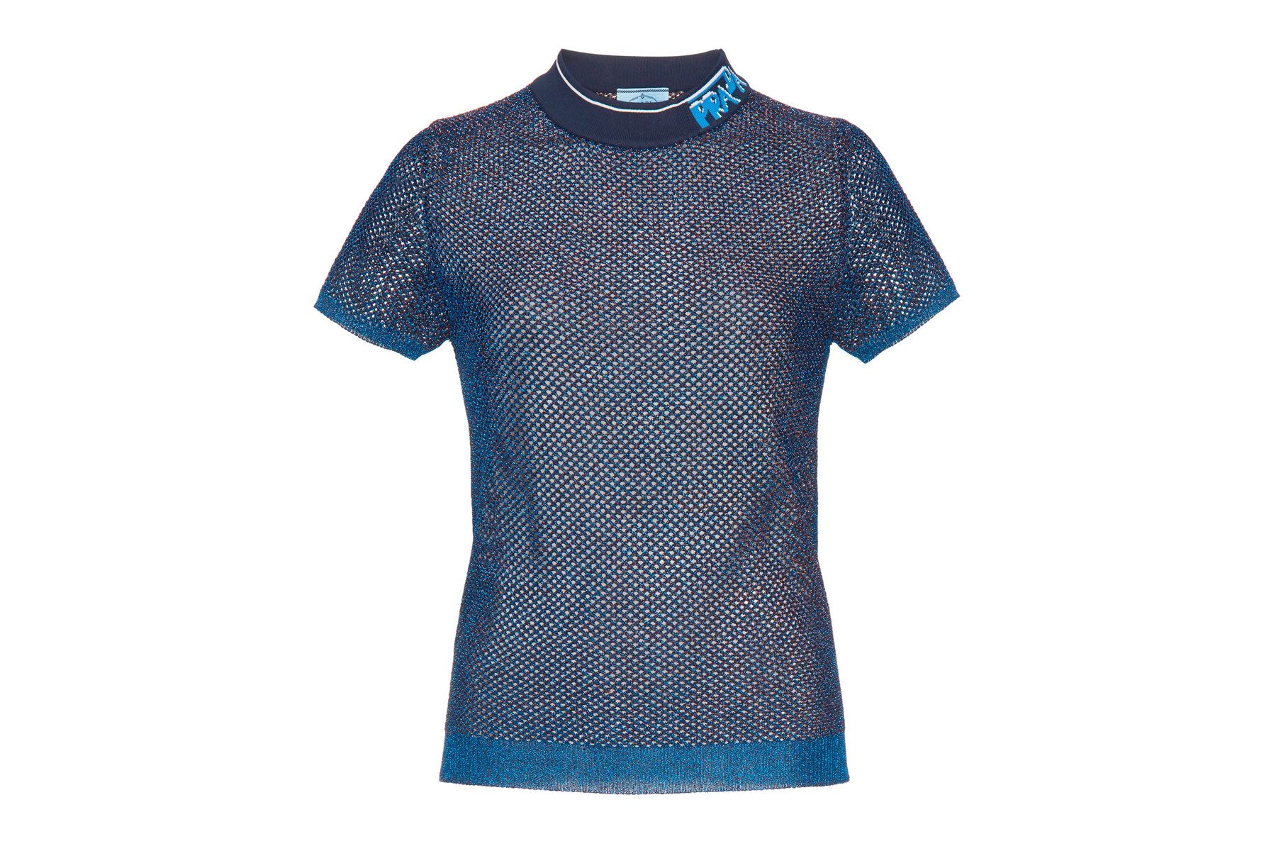 Prada Logo Collar Lurex Mesh Waffle-Knit Top; HK$6,750 at modaoperandi.com