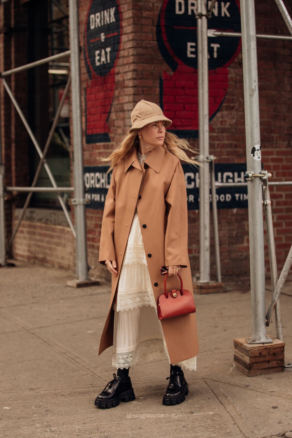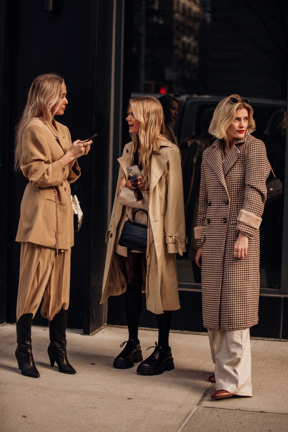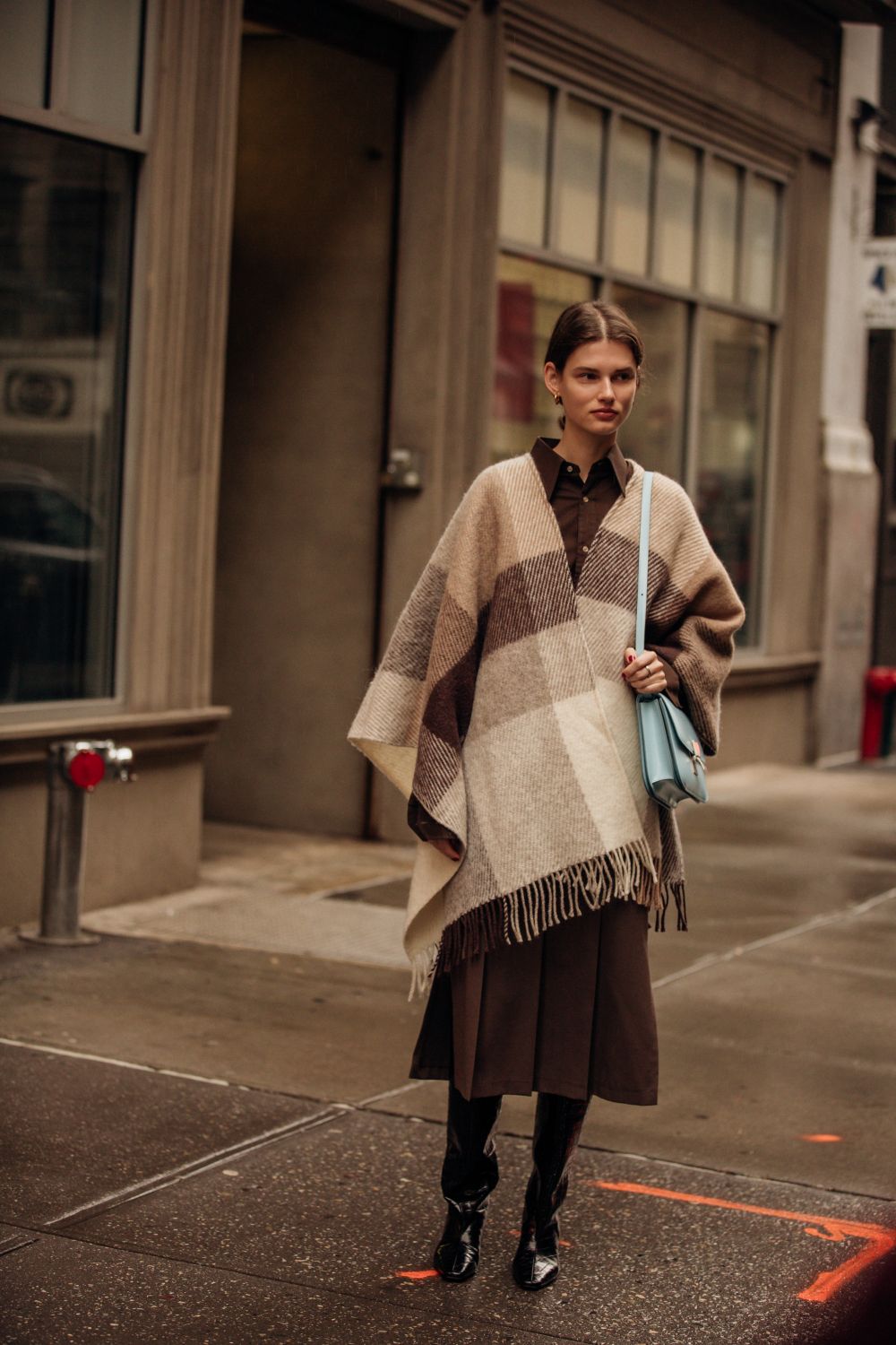 Fashion month kicked off with a covetable display of style on the streets of New York. Chunky knits were the ultimate layer – on top of floaty skirts and dresses, and jeans and even draped over coats – along with a faithful trench coat, while neutrals, khaki and plaid reigned supreme in colour and pattern.
