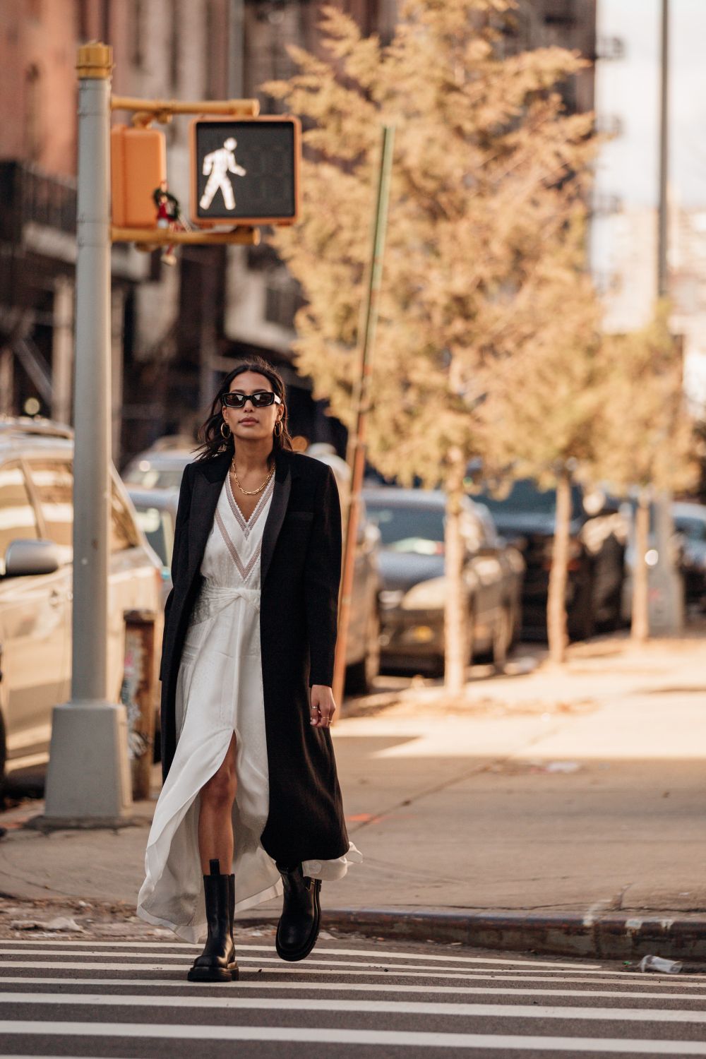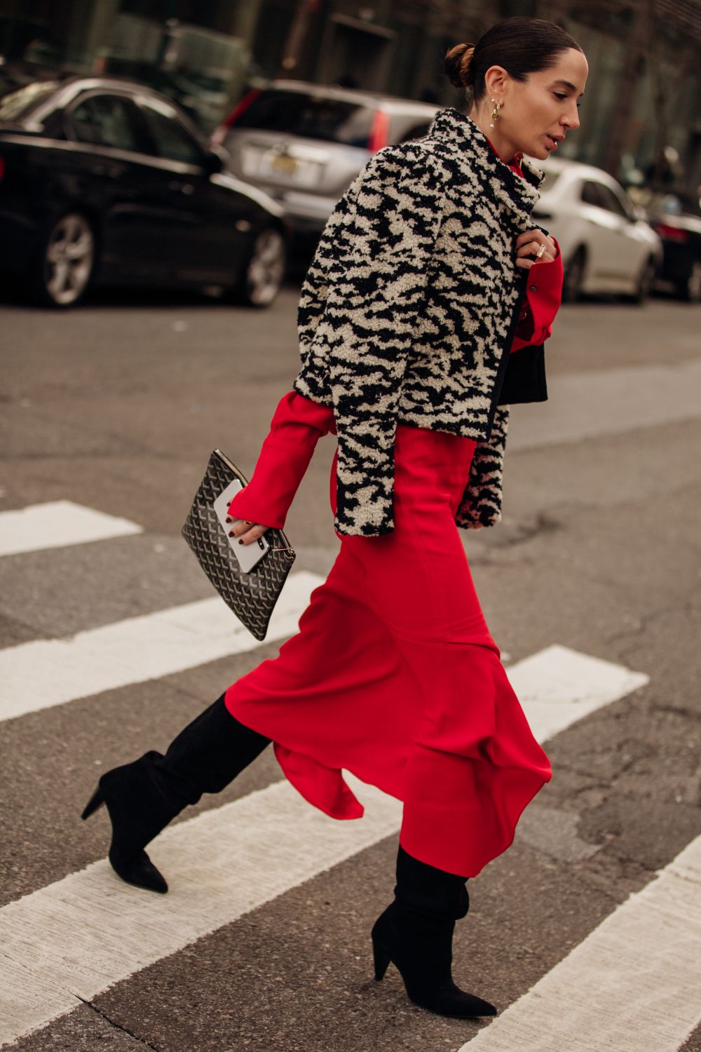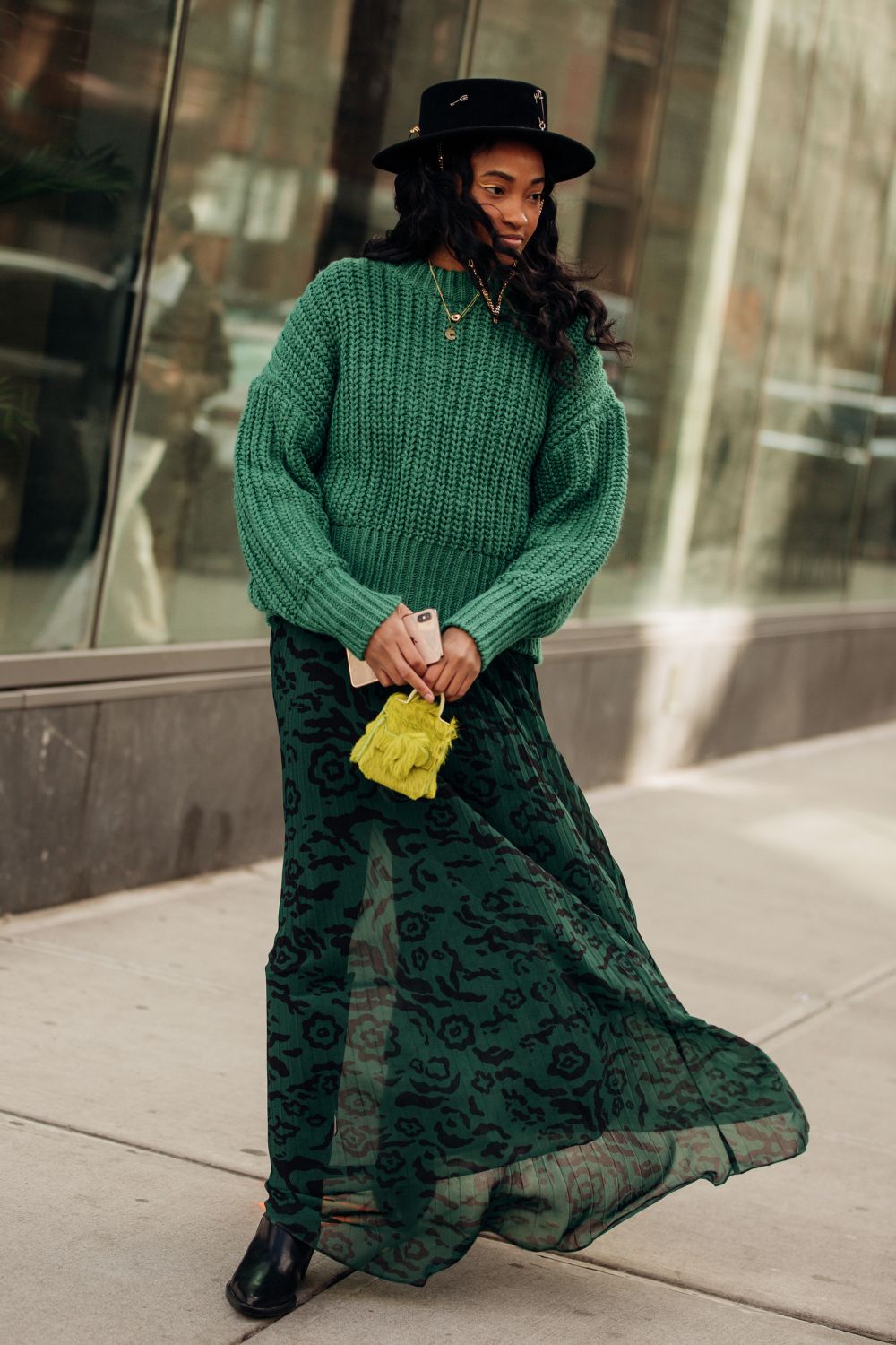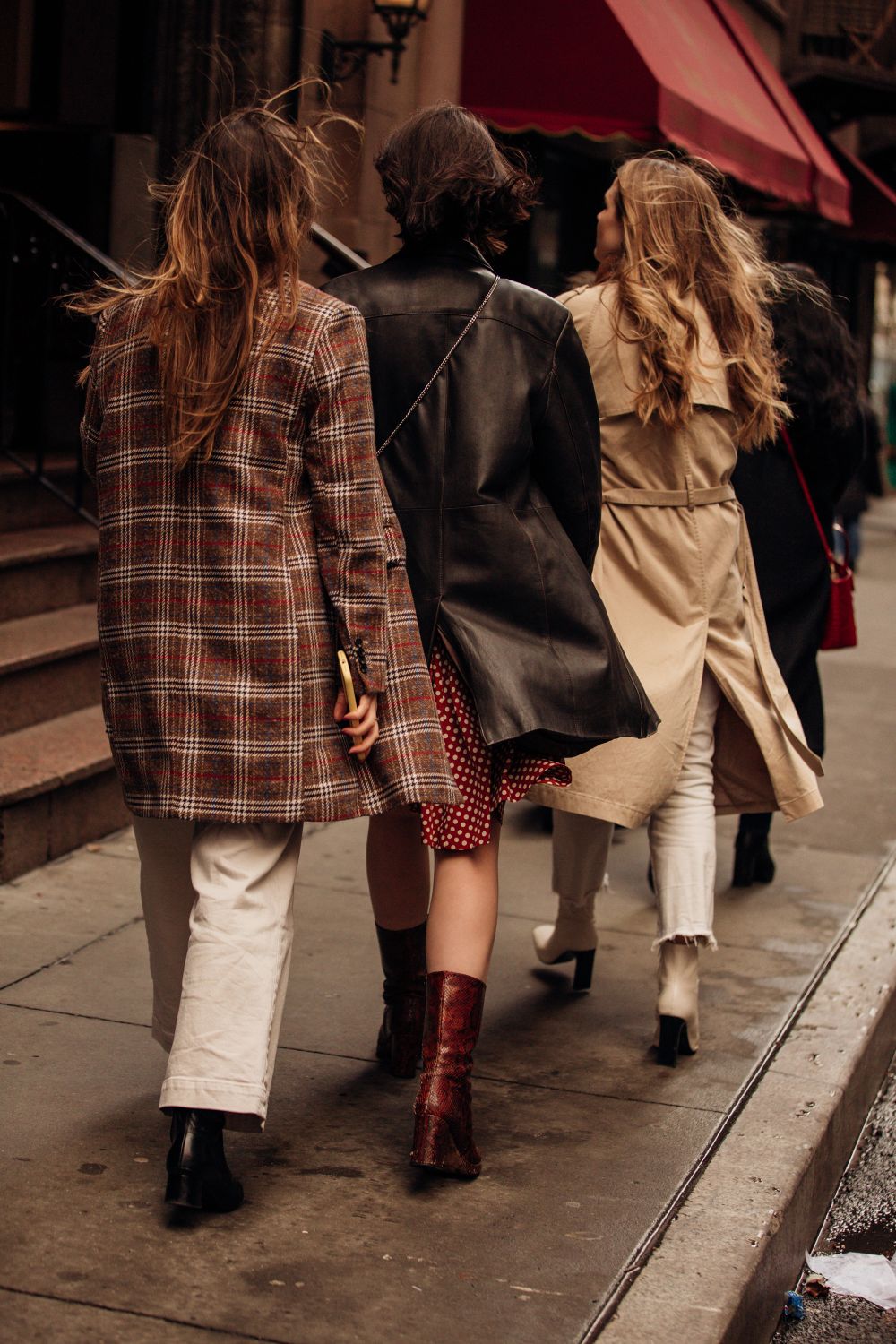 Fashion month kicked off with a covetable display of style on the streets of New York. Chunky knits were the ultimate layer – on top of floaty skirts and dresses, and jeans and even draped over coats – along with a faithful trench coat, while neutrals, khaki and plaid reigned supreme in colour and pattern.