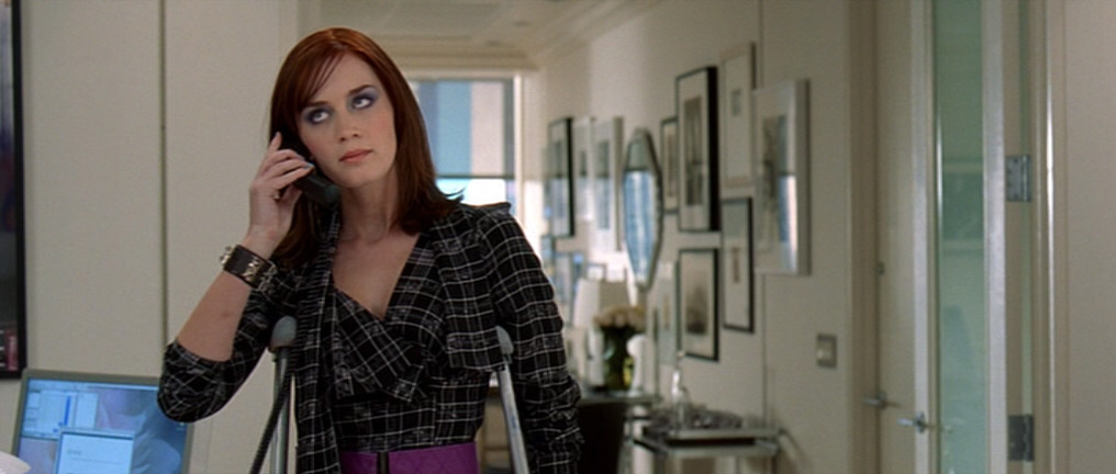 You will never catch Emily at a hideous skirt convention. Even when her leg is in a cast, she does not arrive to work with anything short of fabulous. One of her better looks is when she pretends to begrudgingly accept Andy’s clothes from Paris. She wears a black and white plaid jacket, accessorising with a purple belt and an alligator Hermes Collier de Chien bracelet. The cherry on top is her signature auburn hair and frosted blue eyeshadow.