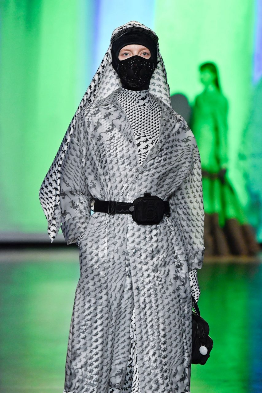 A mask on the catwalk at the Marine Serre autumn/winter 2020 show.