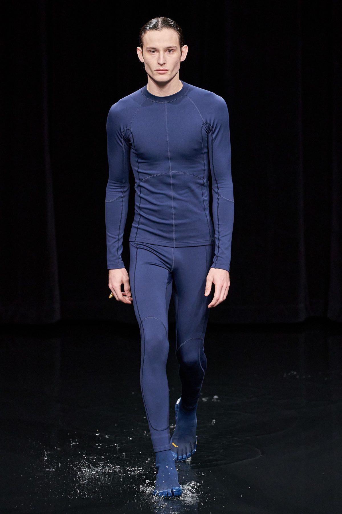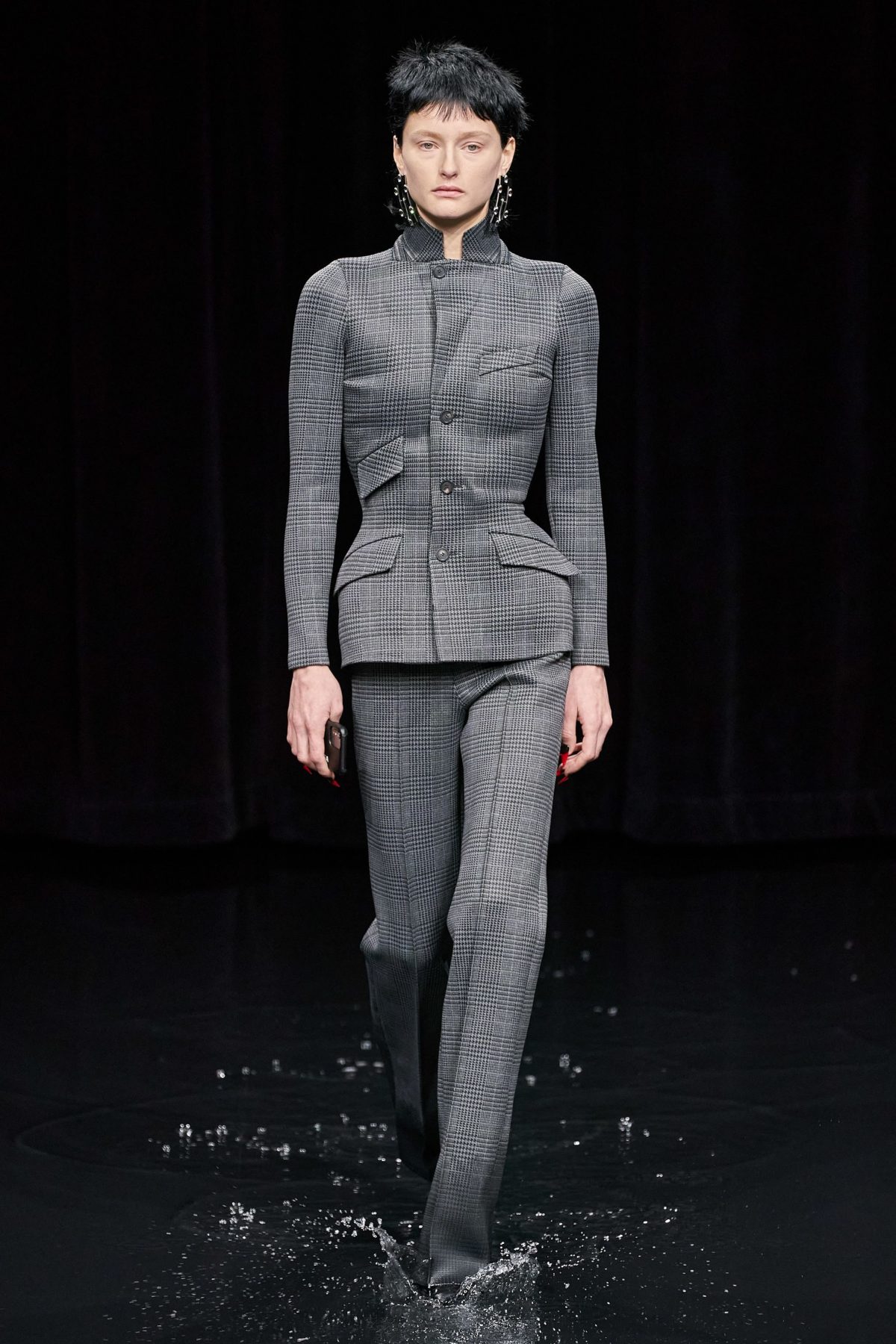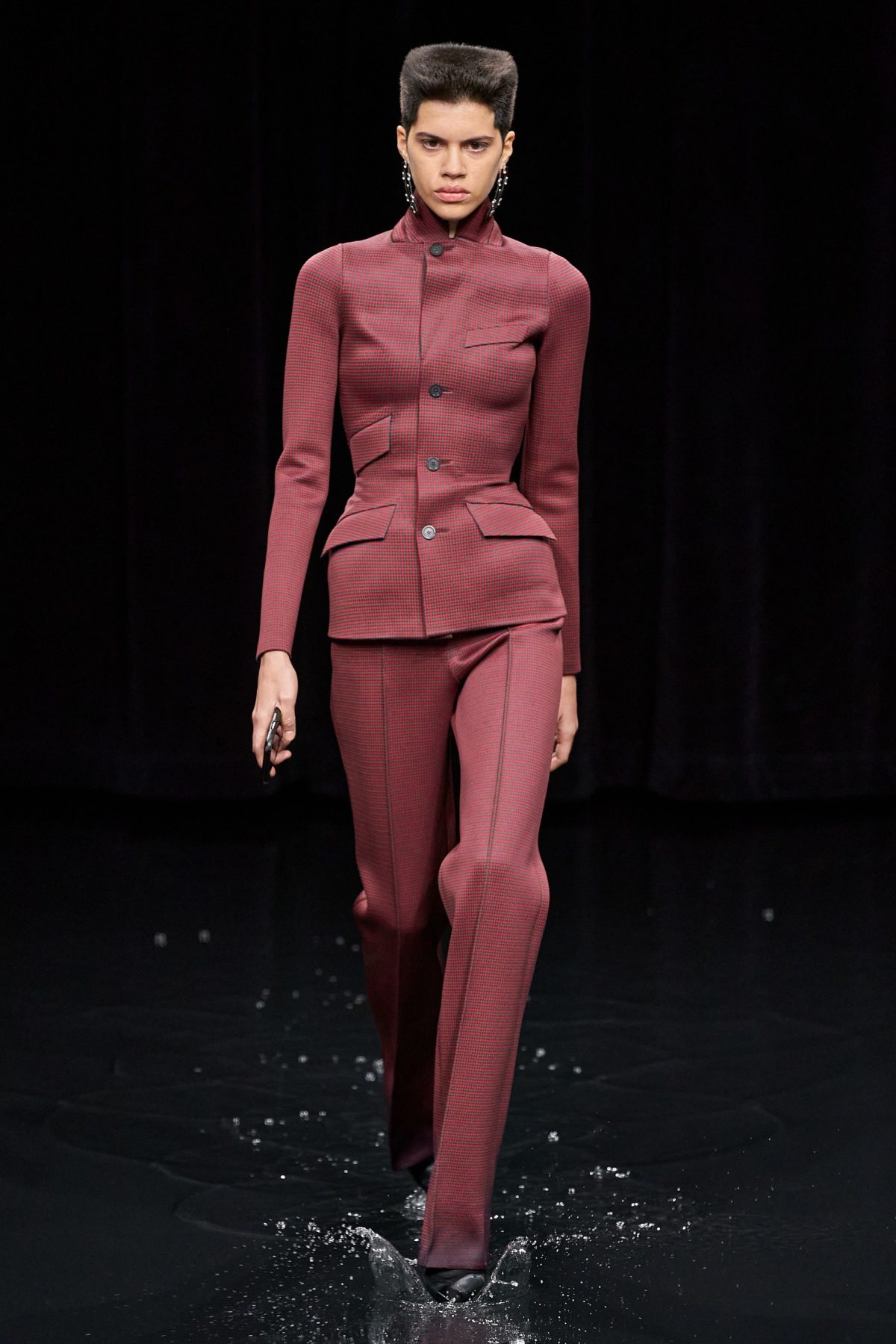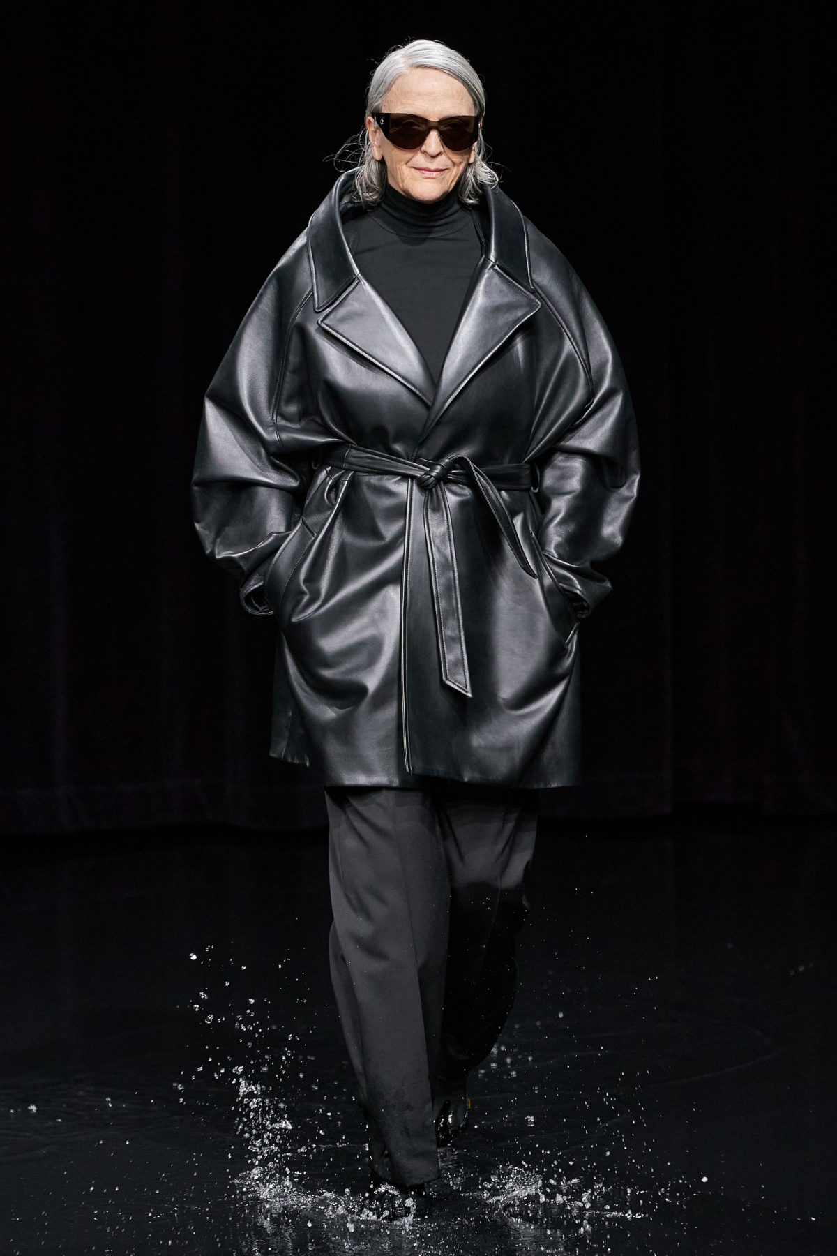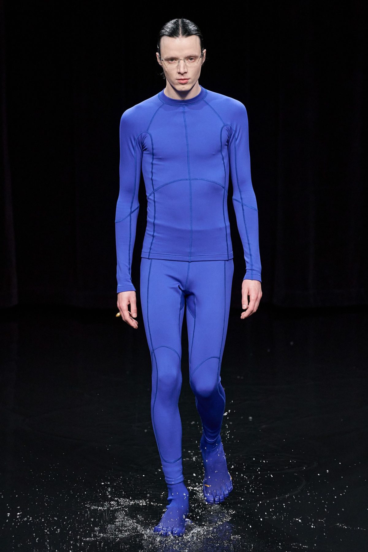 Set in a vast, almost pitch-black auditorium was an immense pool of water disguising the runway, with digital screens above depicting a hellish sky that flashed with lightening, red clouds, satellite shots of Earth, and then finally, a total eclipse. “It’s the blackest show I ever did,” said designer Demna Gvasalia.