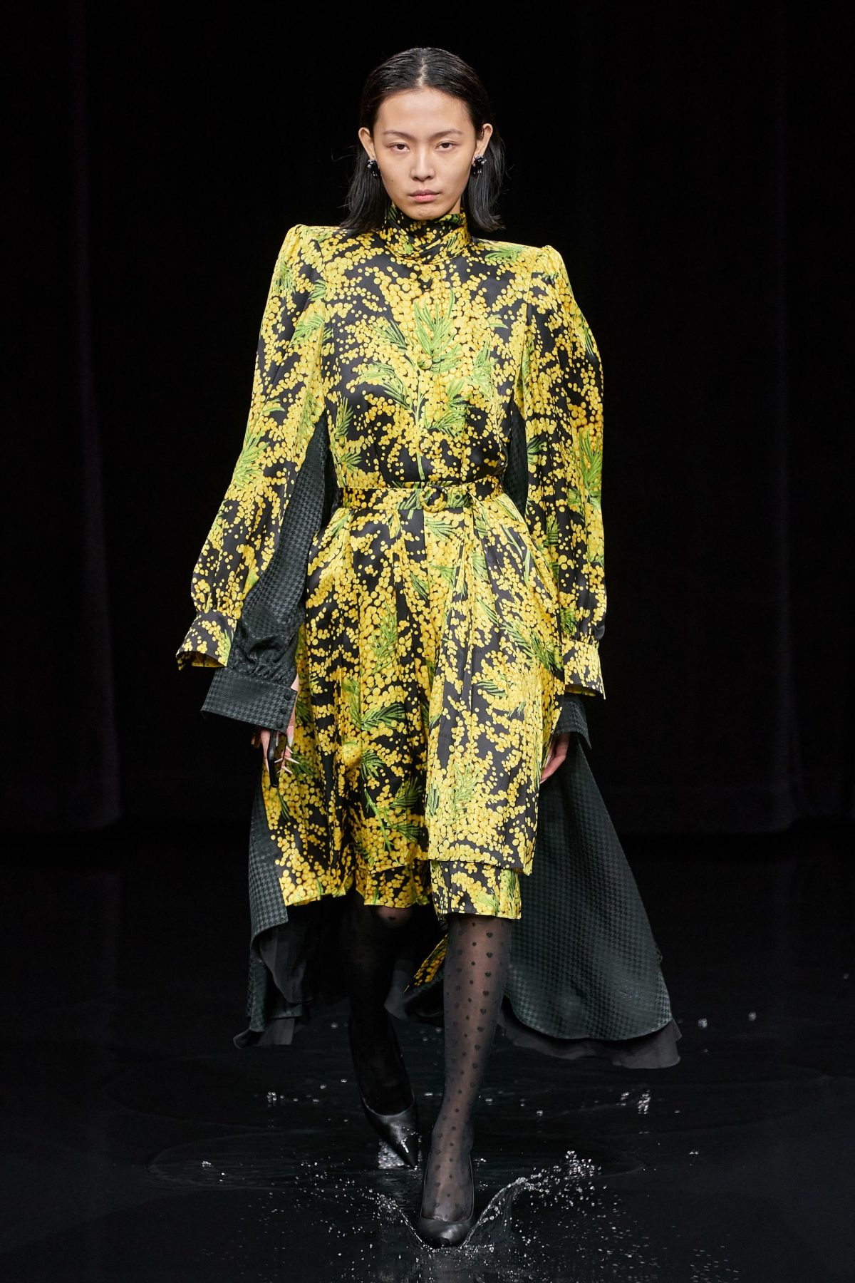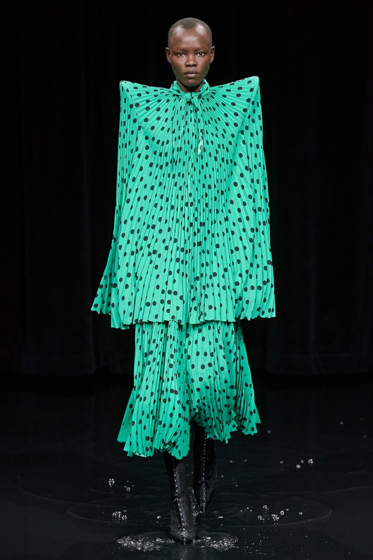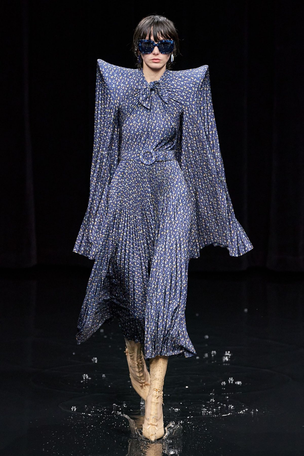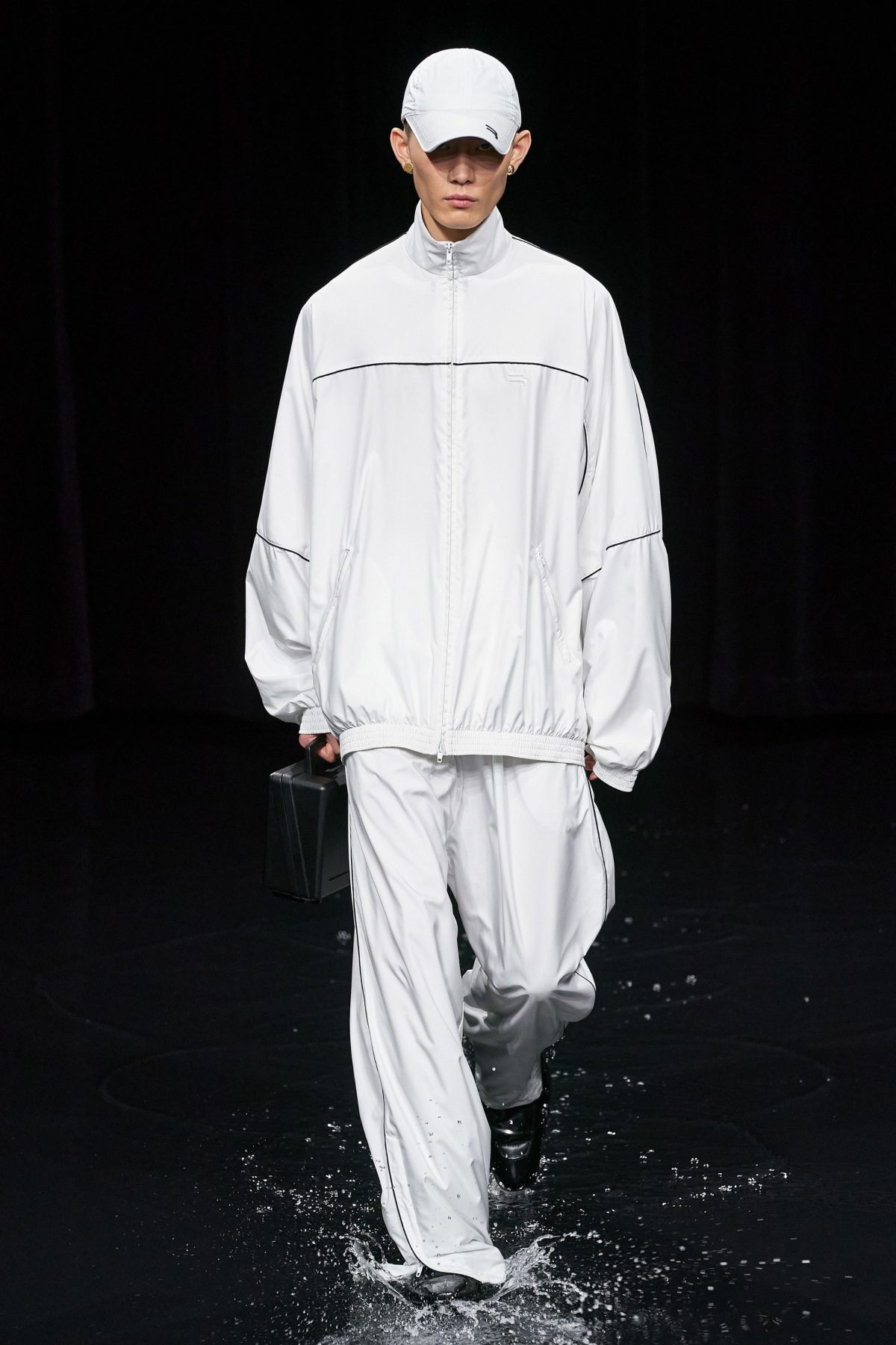 After shapely all-black looks, rendered in everything from velvet to leather, was a resurrection of motifs from past seasons. There were the sculptural shoulders, now pointier and wider than ever, the floral and plissé dresses, the logomania sportswear, and the second-skin neoprene suits. Though varied in genre, their austere silhouettes and staunch repetition was Gvasalia’s way of saying “Fashion is my religion.”