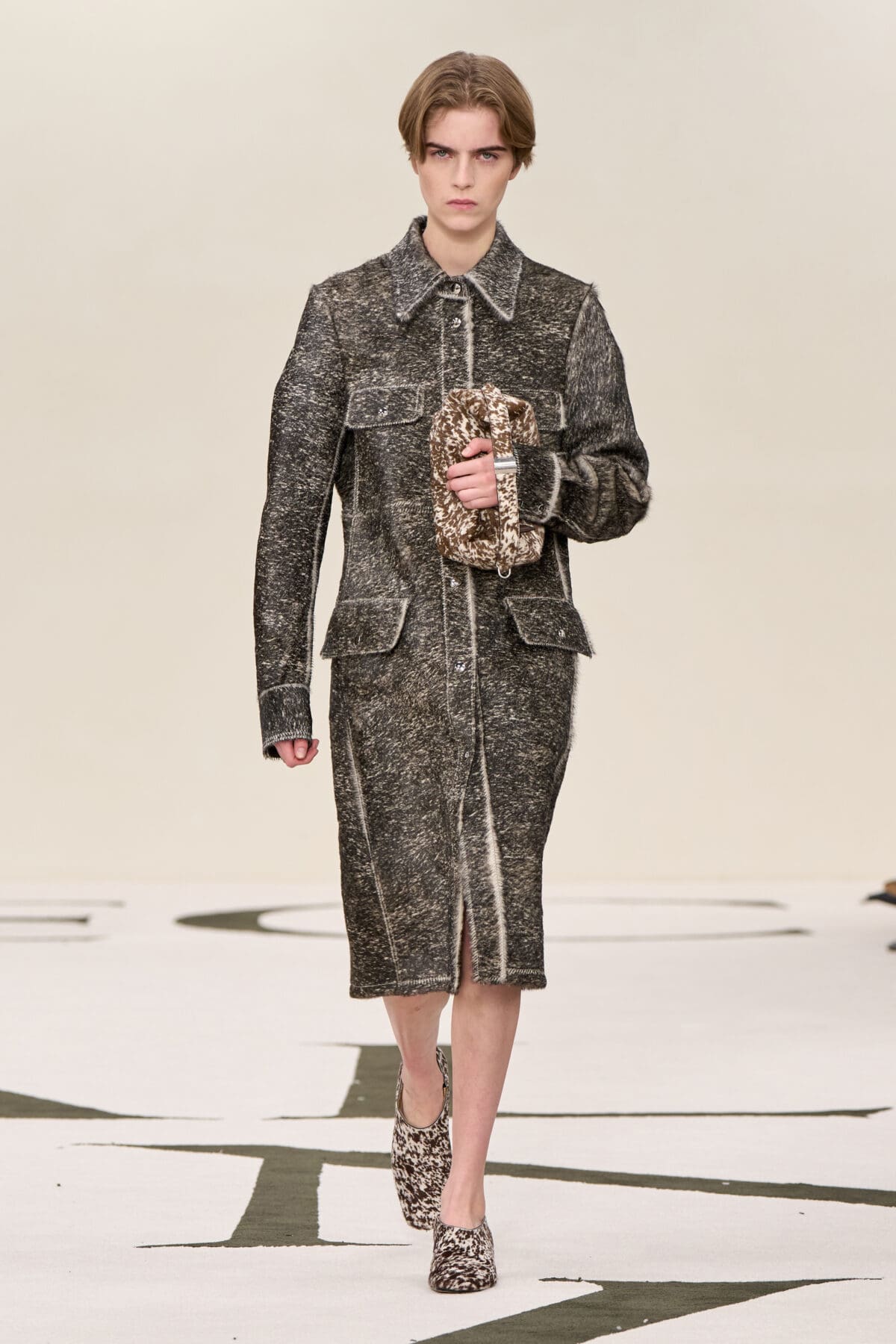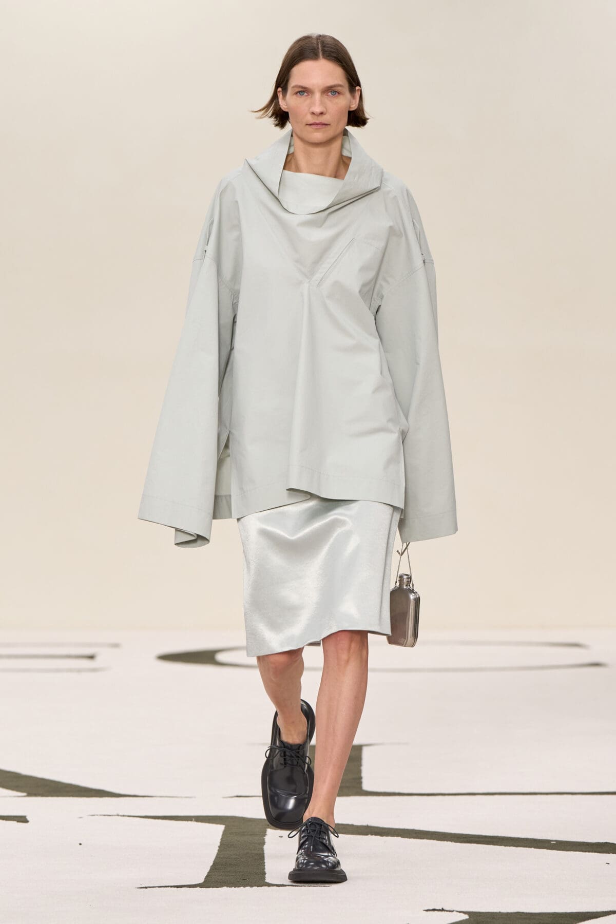 What previous interpreters of the brand’s legacy have tended to miss is the sensuality of Calvin Klein’s minimalism. Francisco Costa’s was dry; Simons’s wasn’t really minimal at all. Leoni’s previous experience might have suggested that she too would struggle with the hotter side of Calvin’s pure/provocative dynamic. In the business, acolytes of Jil Sander, #OldCeline, and The Row are called fashion nuns for a reason. If the collection never quite reached the level of sexy, it certainly raised the pulse. What elevated this debut, and gave it its potential, was the carefully considered shift in silhouette Leoni maneuvered.
