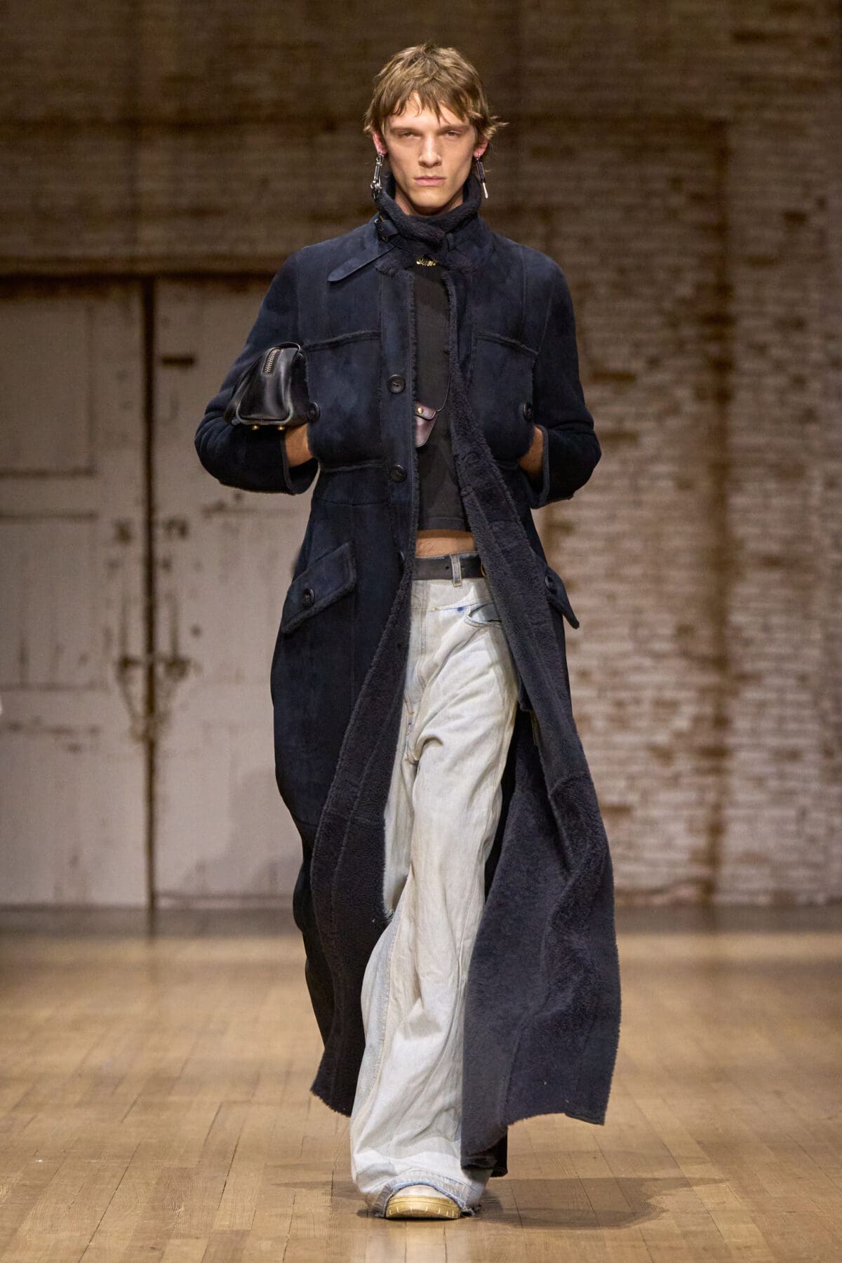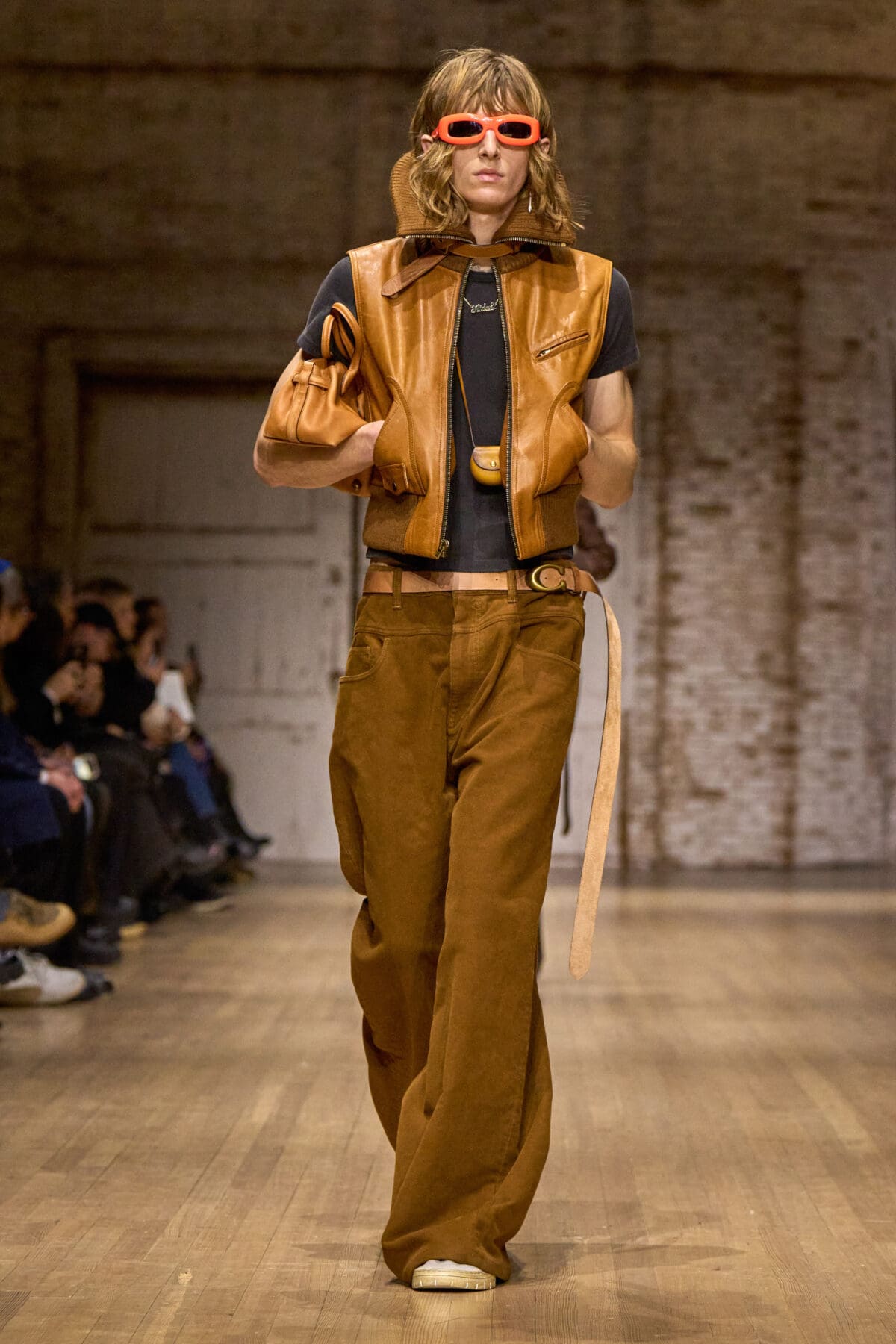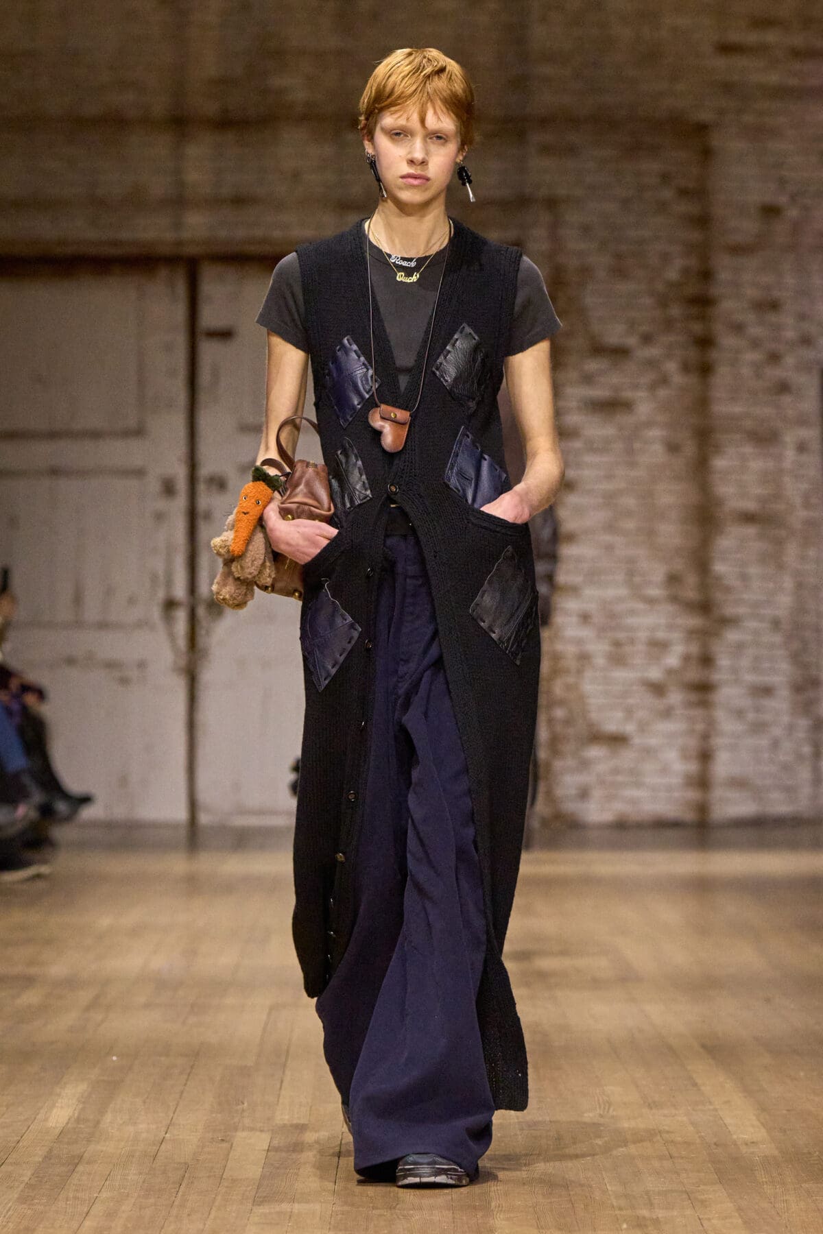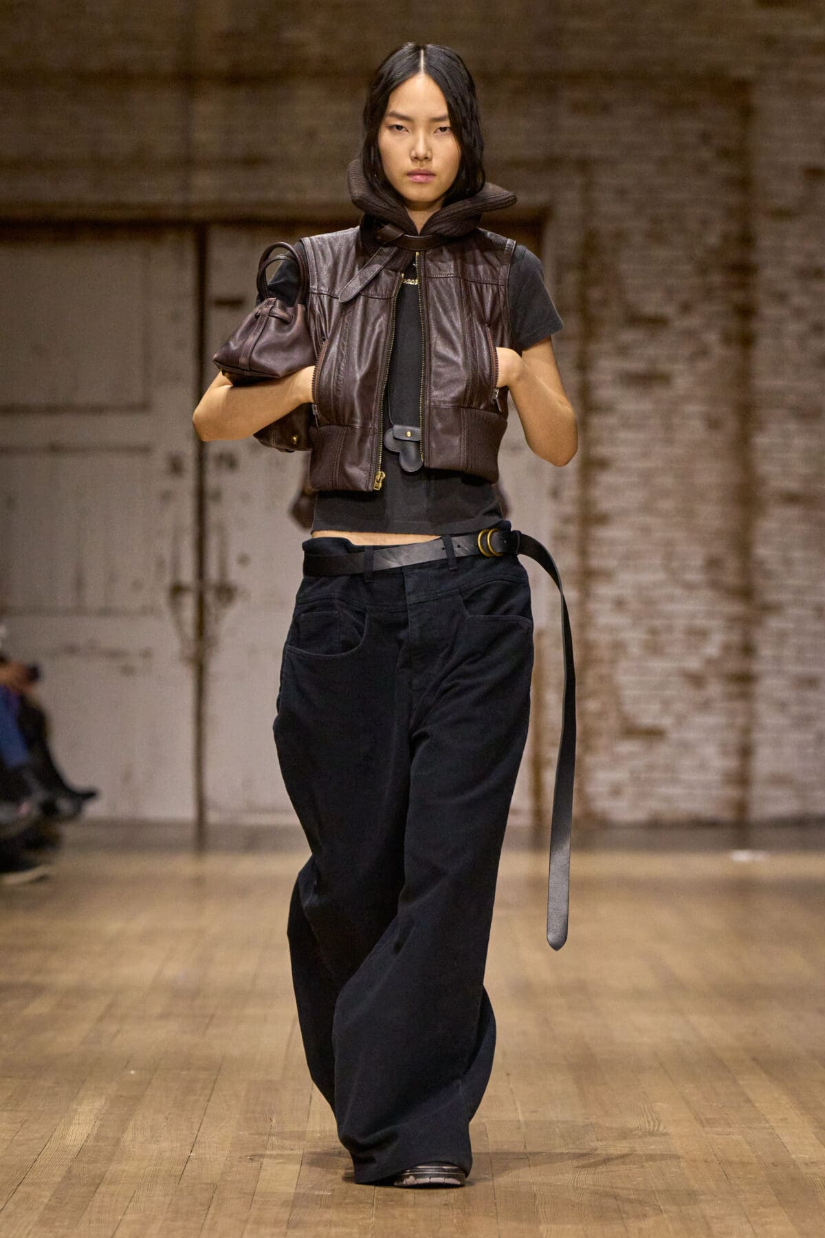 At that preview, Vevers had remarked that as he was working on fall, “the idea of a clear message kept coming up, whether it was a really focused color palette, or a very clear silhouette. There’s definitely a kind of ’90s nonchalance going on, but it’s as important to be as clear about what you’re doing as who you are: our values of inclusivity and sustainability.” When it comes to the latter, that meant all the denim in the show was upcycled; the jeans with the leather patches were particularly good. And when it came to the look, Vevers certainly caught the current generational interest in the ’90s (and the early noughts). It’s a time that is likely on the minds of the people he had on the Coach runway; the casting of the show was terrific.