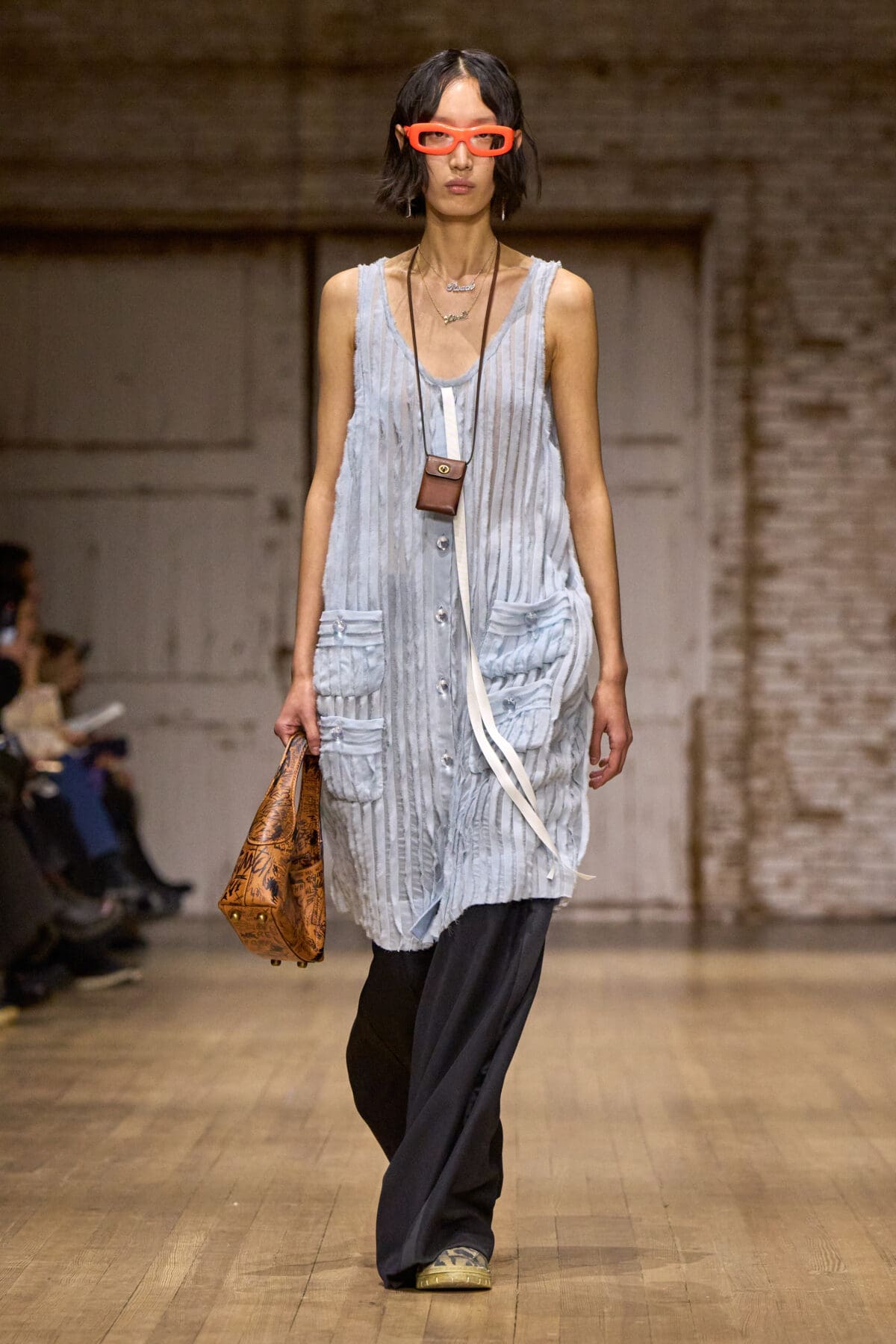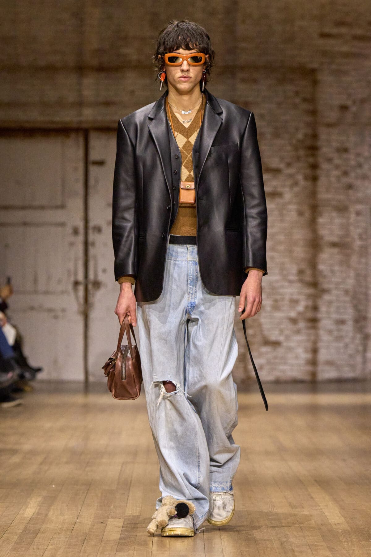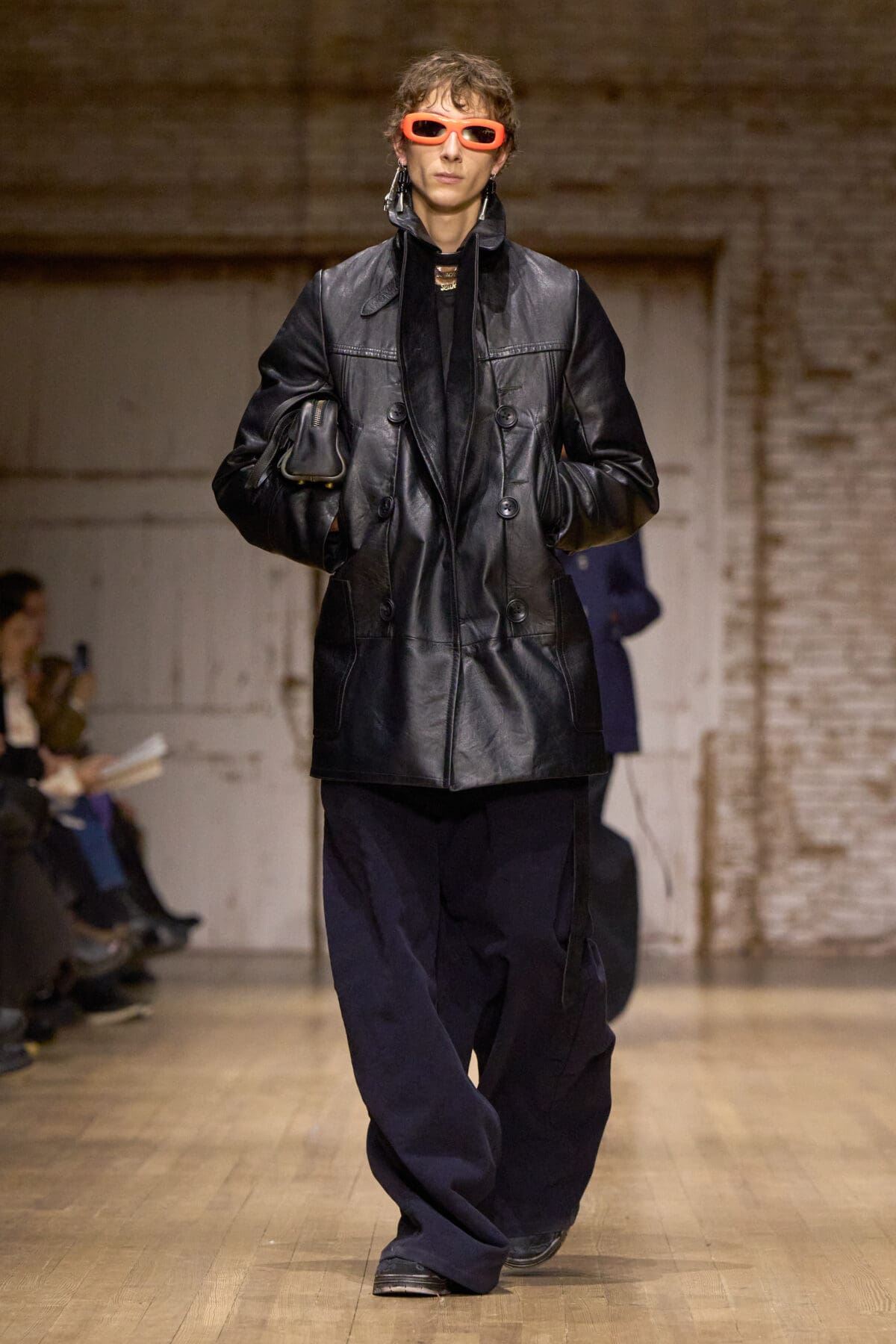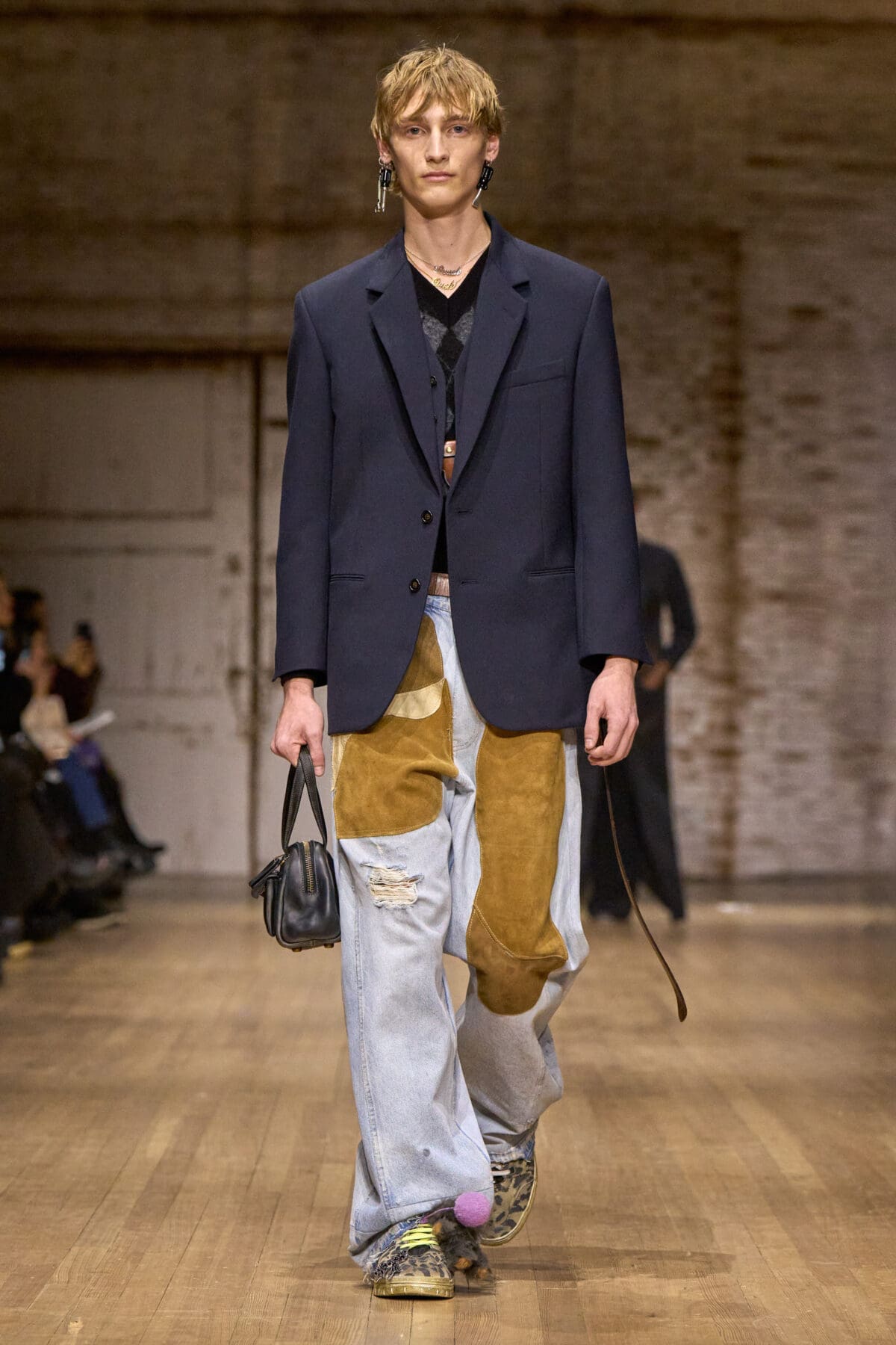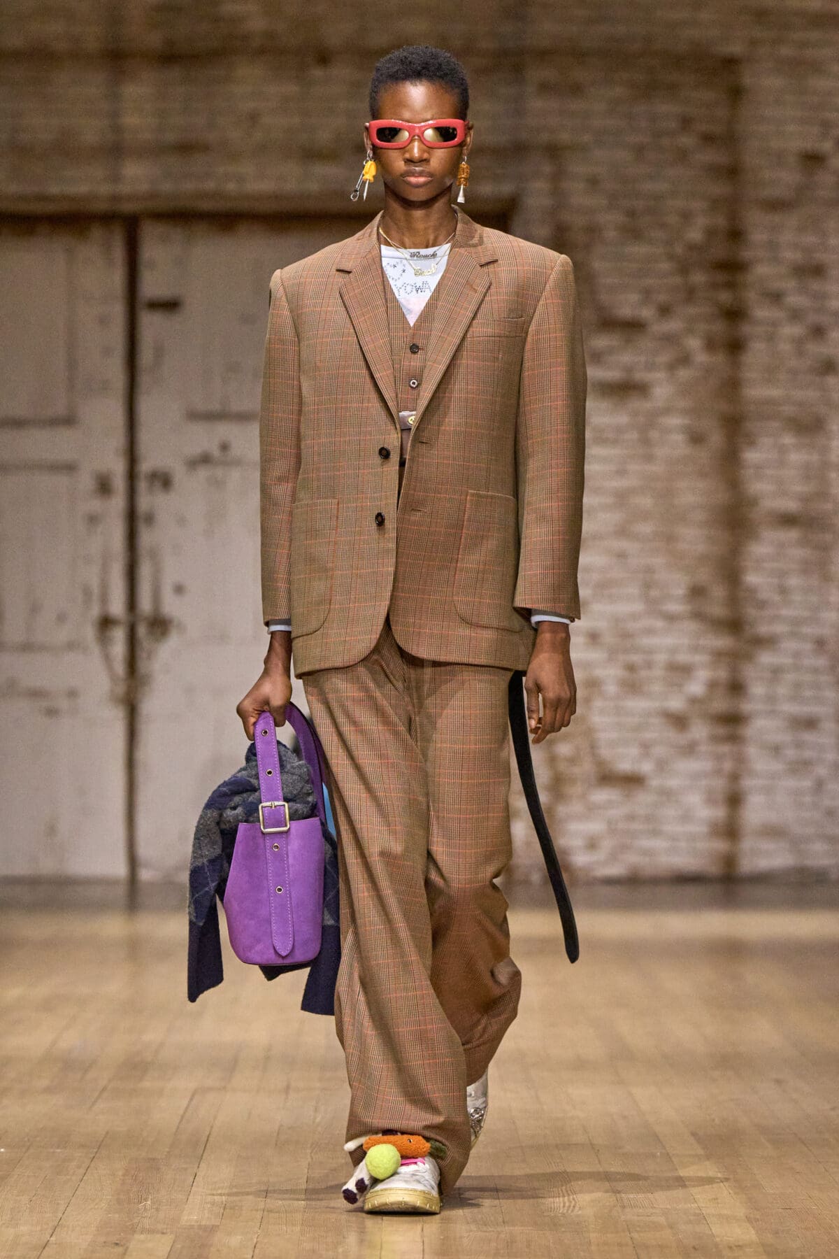 At that preview, Vevers had remarked that as he was working on fall, “the idea of a clear message kept coming up, whether it was a really focused color palette, or a very clear silhouette. There’s definitely a kind of ’90s nonchalance going on, but it’s as important to be as clear about what you’re doing as who you are: our values of inclusivity and sustainability.” When it comes to the latter, that meant all the denim in the show was upcycled; the jeans with the leather patches were particularly good. And when it came to the look, Vevers certainly caught the current generational interest in the ’90s (and the early noughts). It’s a time that is likely on the minds of the people he had on the Coach runway; the casting of the show was terrific.