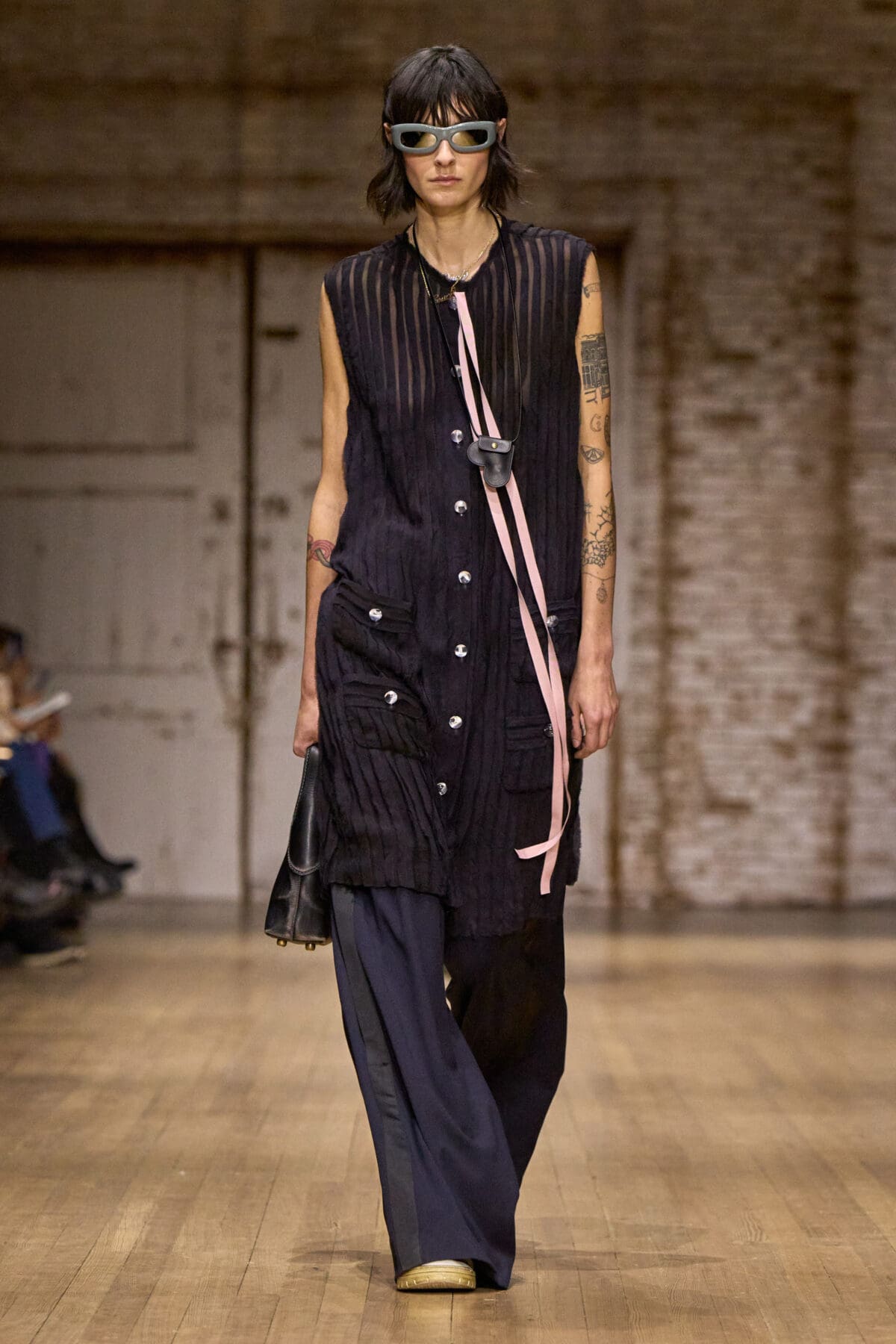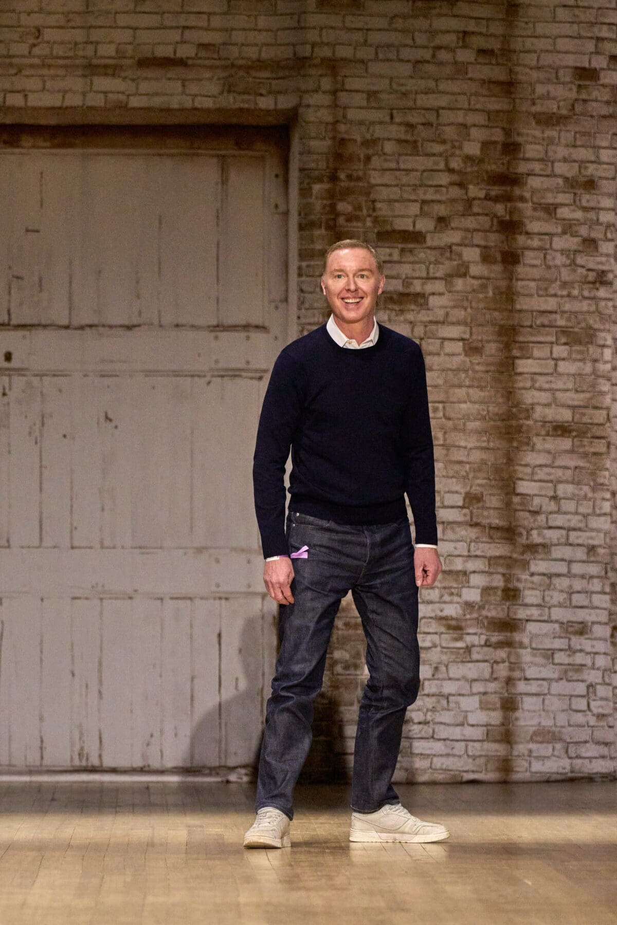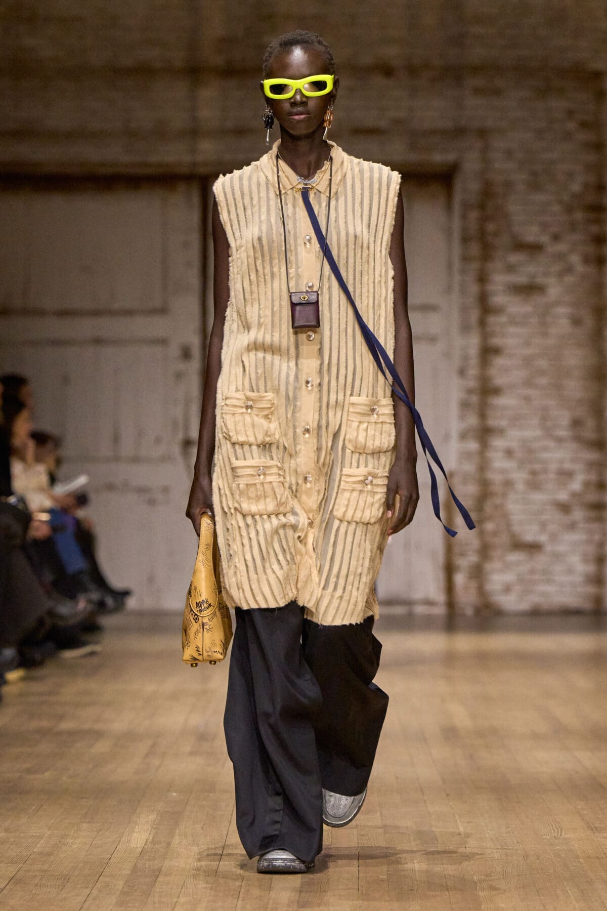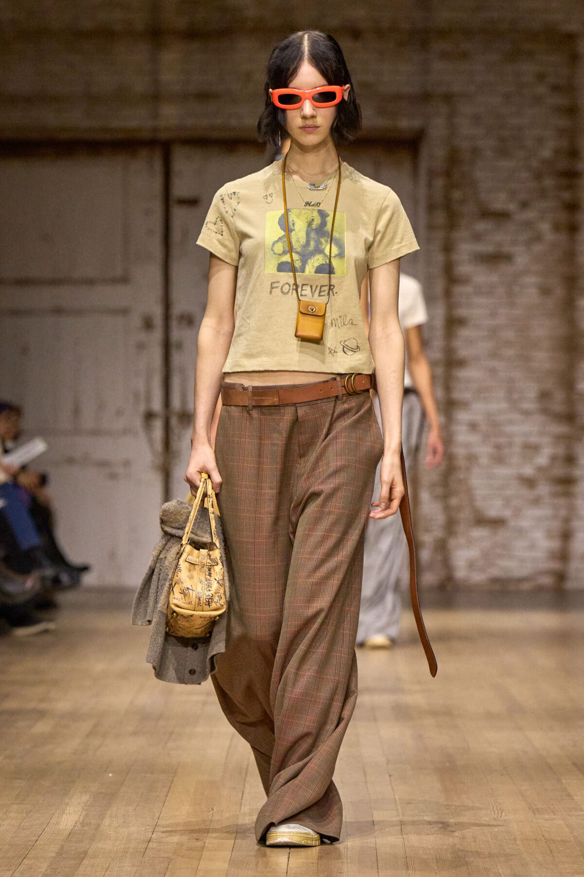 At that preview, Vevers had remarked that as he was working on fall, “the idea of a clear message kept coming up, whether it was a really focused color palette, or a very clear silhouette. There’s definitely a kind of ’90s nonchalance going on, but it’s as important to be as clear about what you’re doing as who you are: our values of inclusivity and sustainability.” When it comes to the latter, that meant all the denim in the show was upcycled; the jeans with the leather patches were particularly good. And when it came to the look, Vevers certainly caught the current generational interest in the ’90s (and the early noughts). It’s a time that is likely on the minds of the people he had on the Coach runway; the casting of the show was terrific.