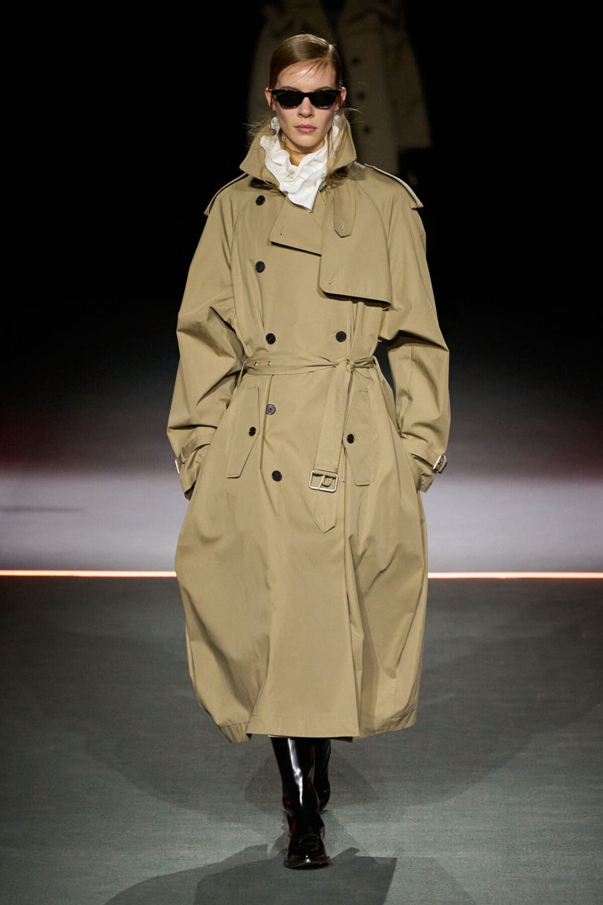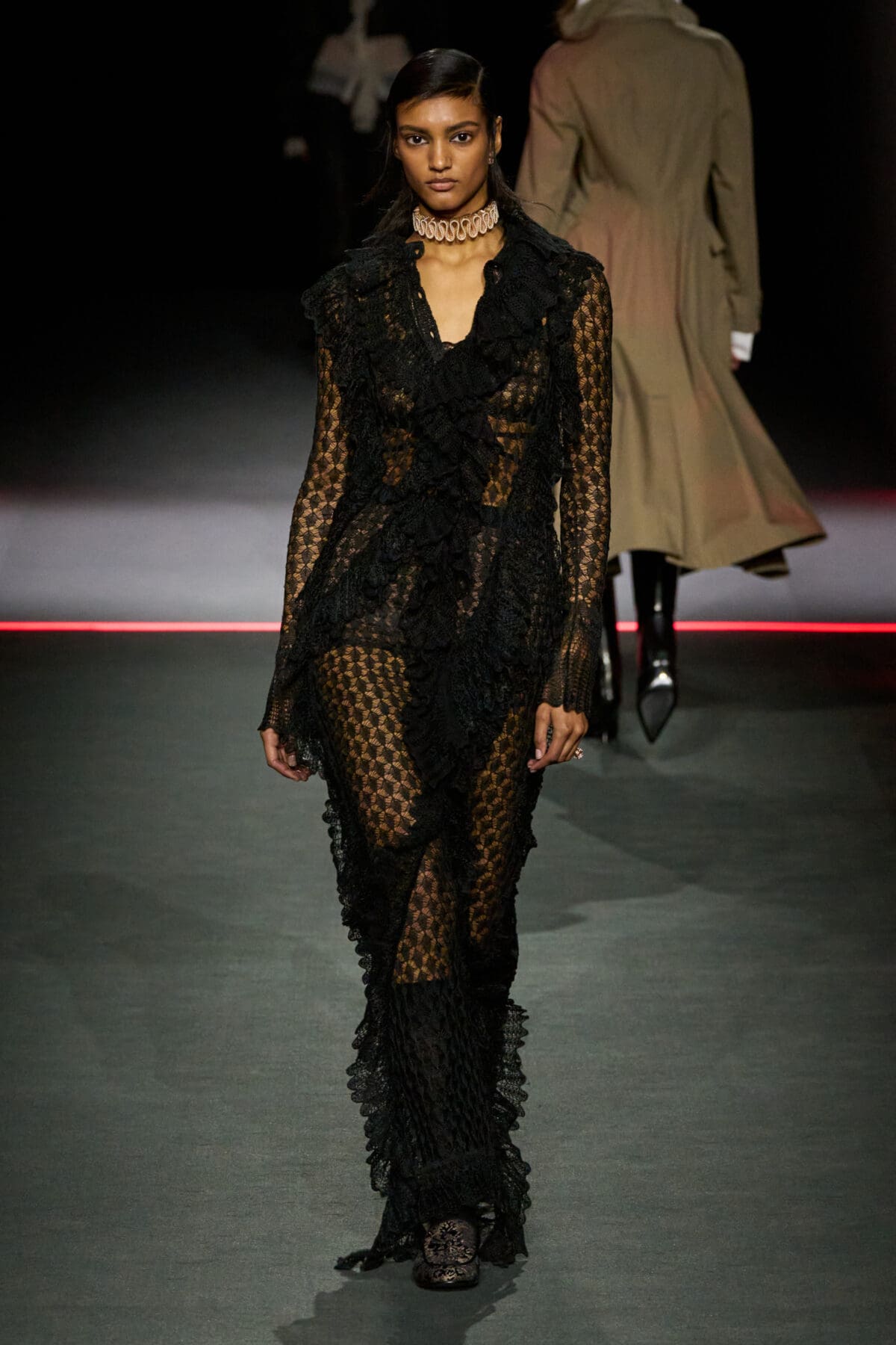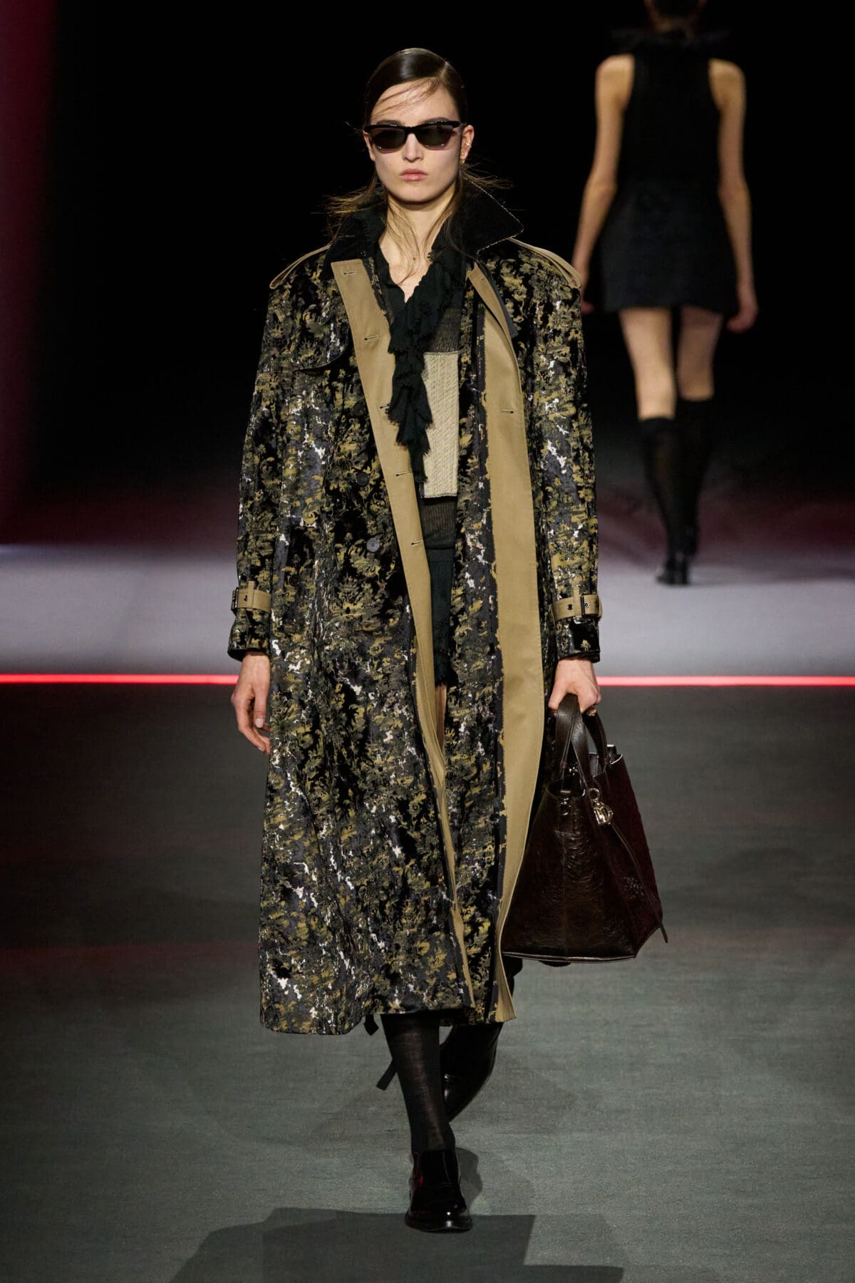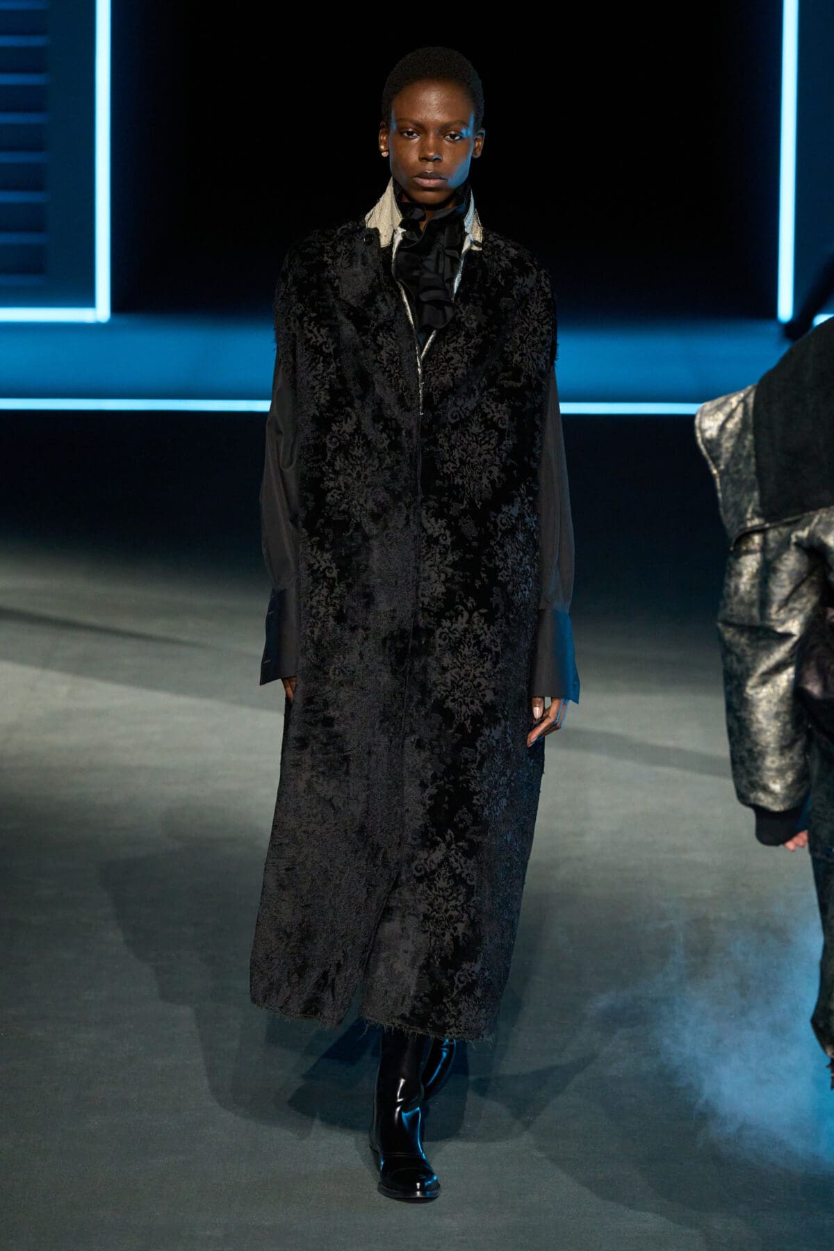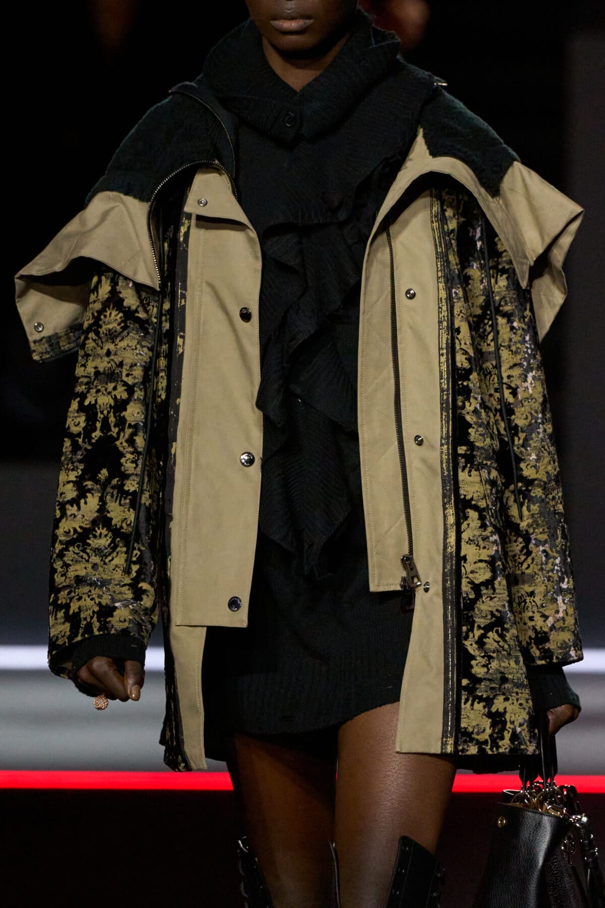 But really, what Chiuri was very good at this season was transforming rainwear and parkas into utility luxury garments via blurry prints of antique textiles on, say, riding macs or denim suits. The truth for most humans is that you can’t tell what you’re looking at any more: what appears unwearably hot and chunky turns out to be light; what seems to be lace (that overabundance of sheer dresses) is actually knitted.