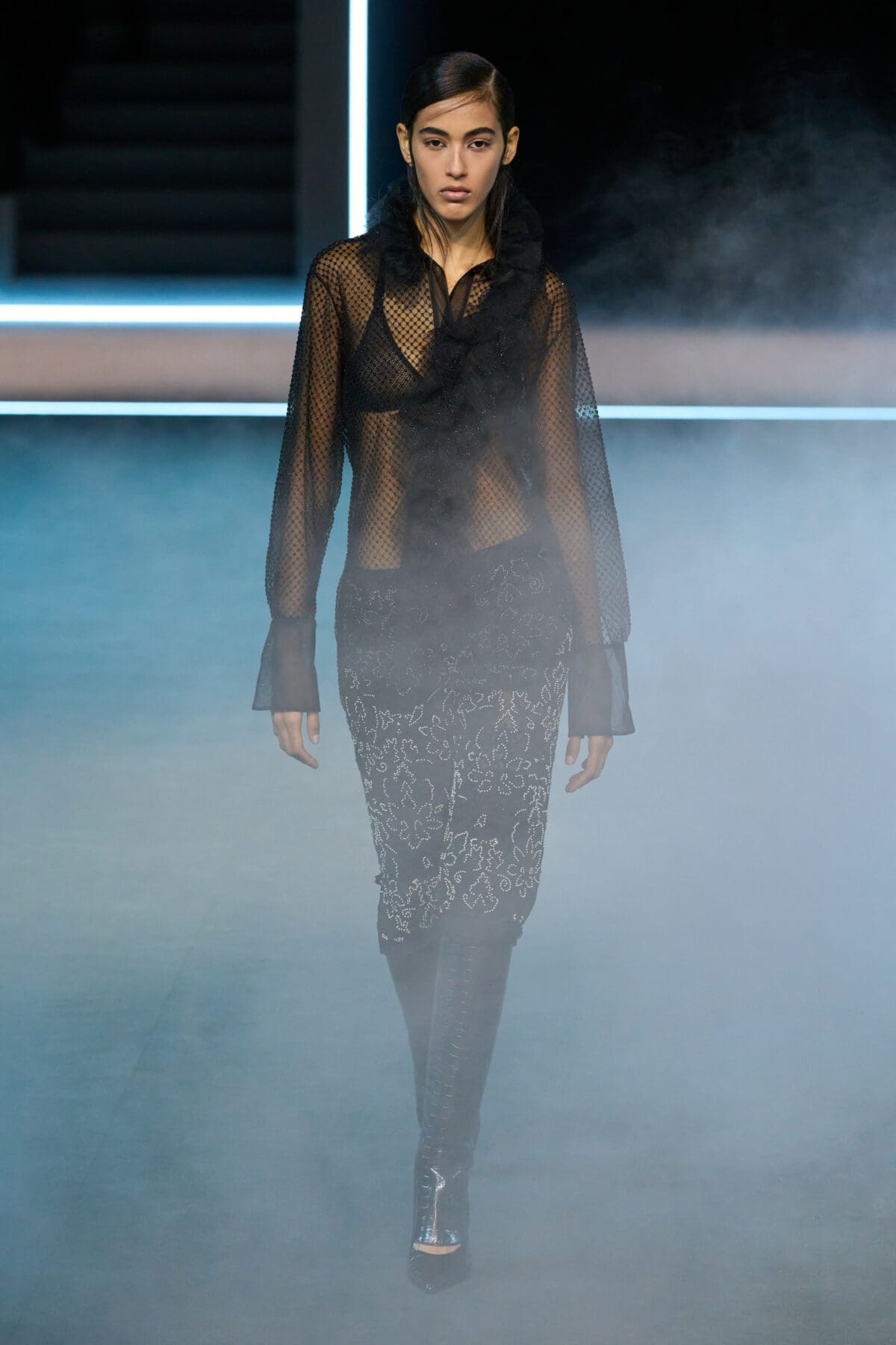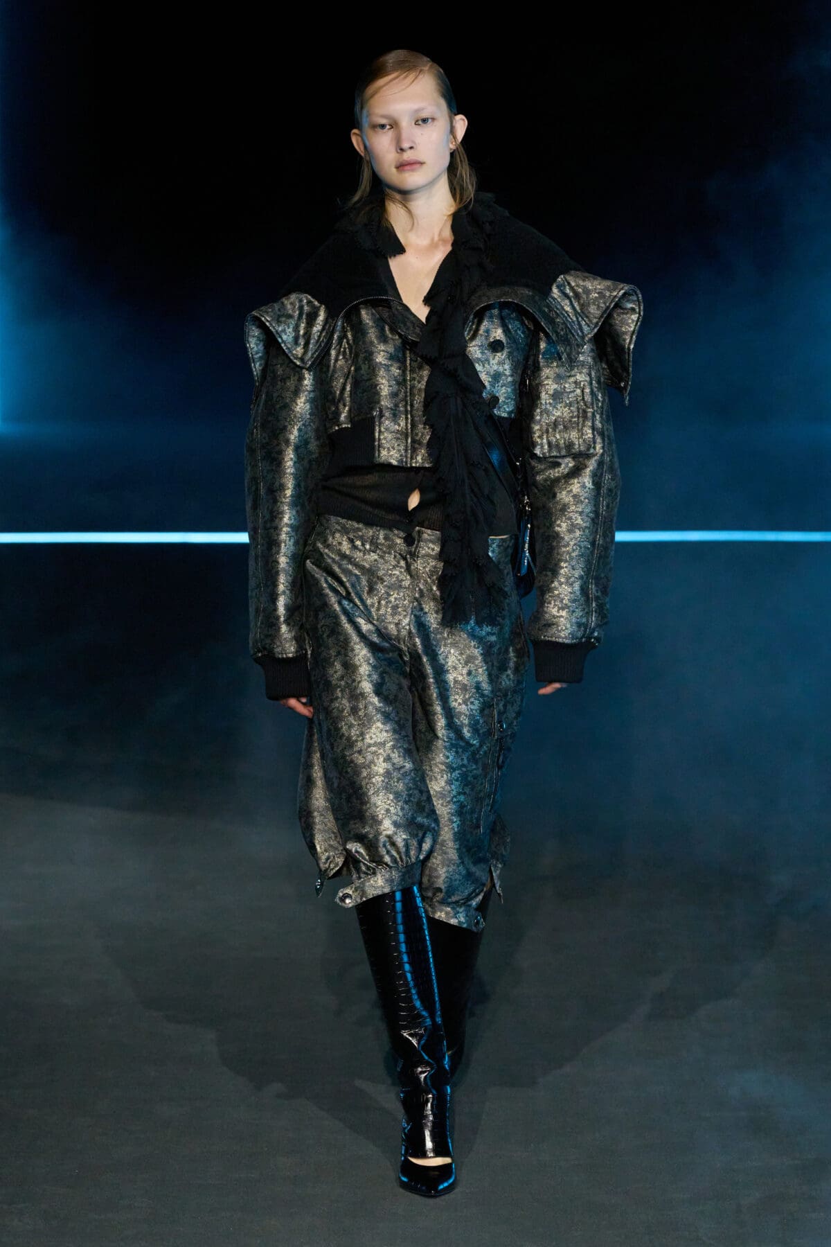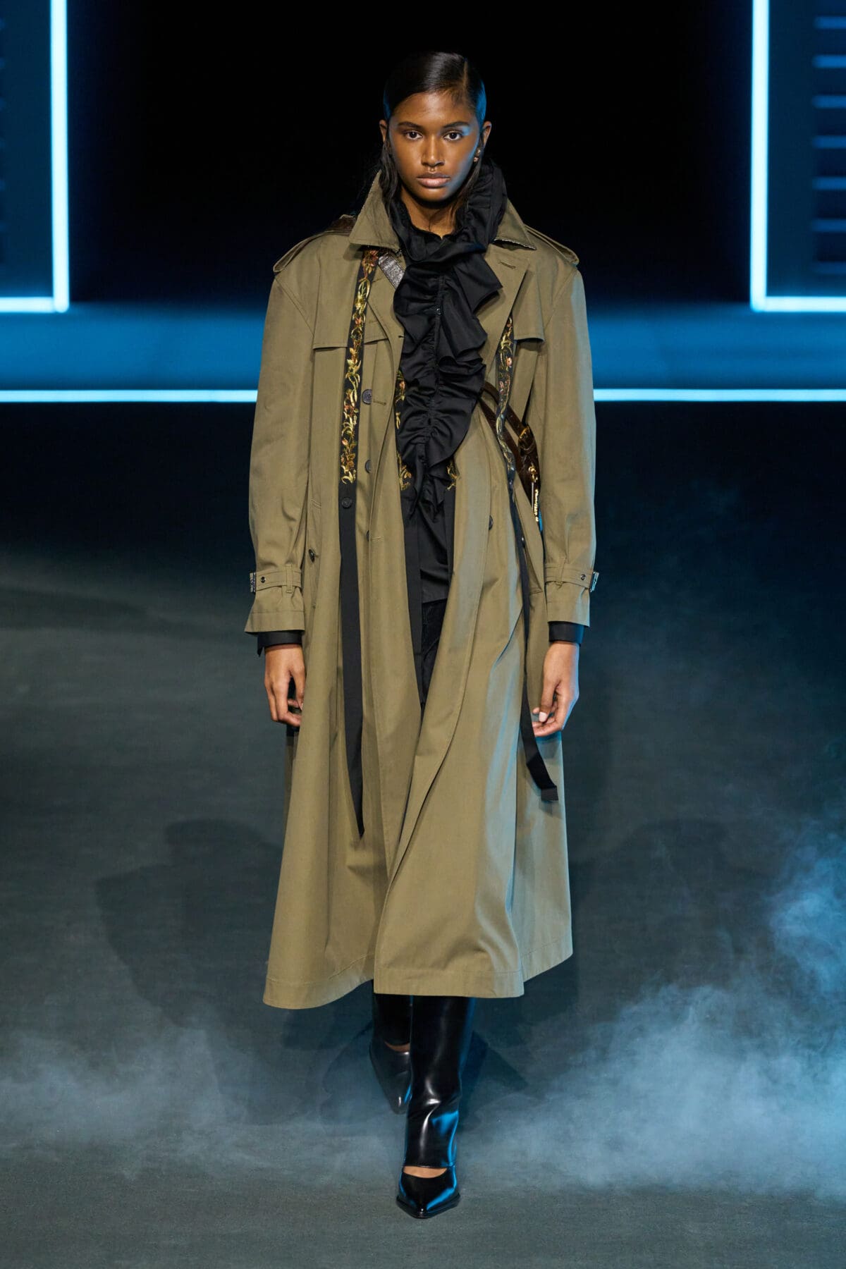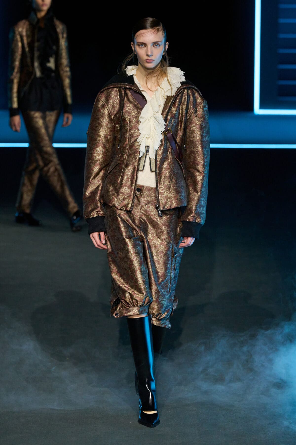 But really, what Chiuri was very good at this season was transforming rainwear and parkas into utility luxury garments via blurry prints of antique textiles on, say, riding macs or denim suits. The truth for most humans is that you can’t tell what you’re looking at any more: what appears unwearably hot and chunky turns out to be light; what seems to be lace (that overabundance of sheer dresses) is actually knitted.