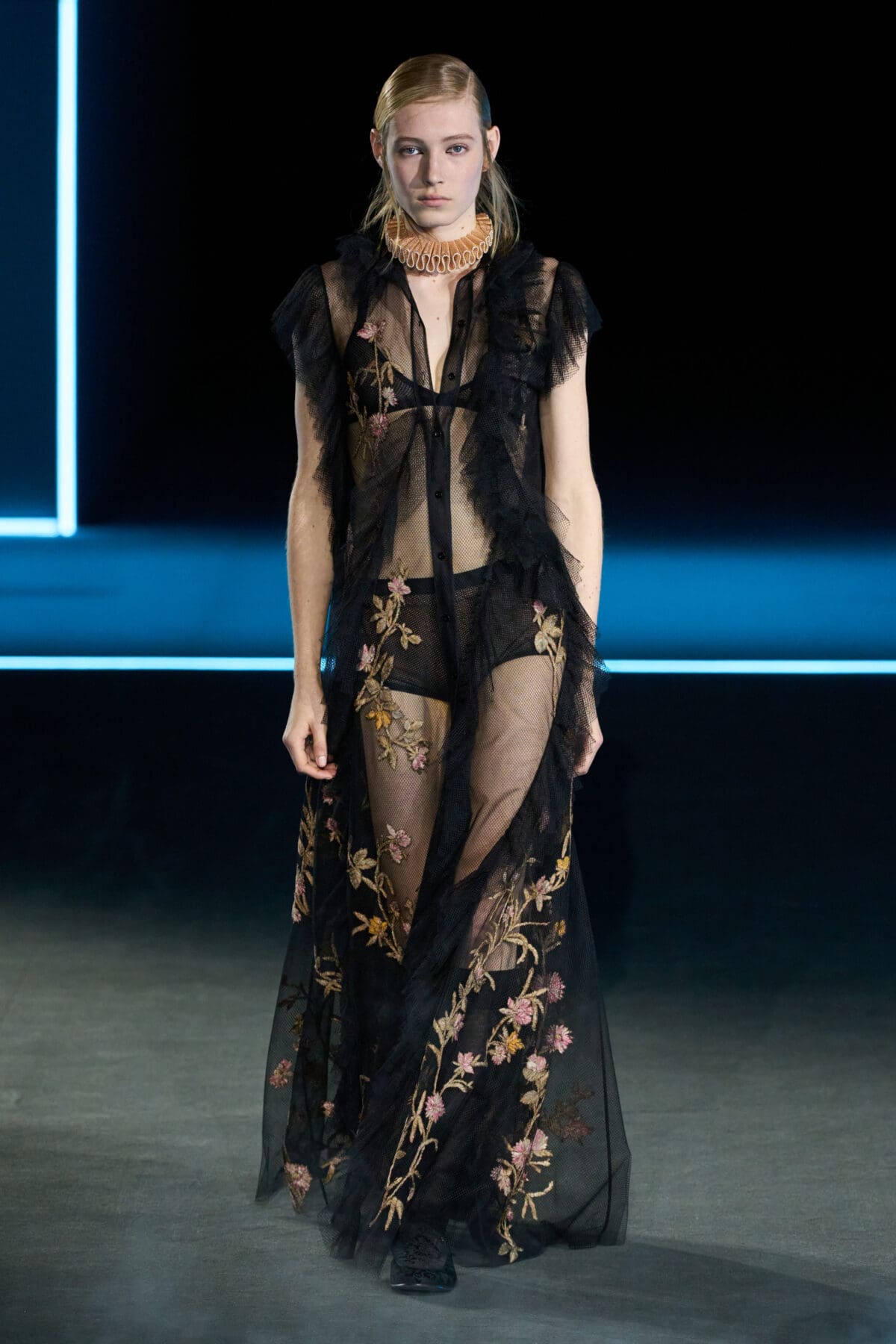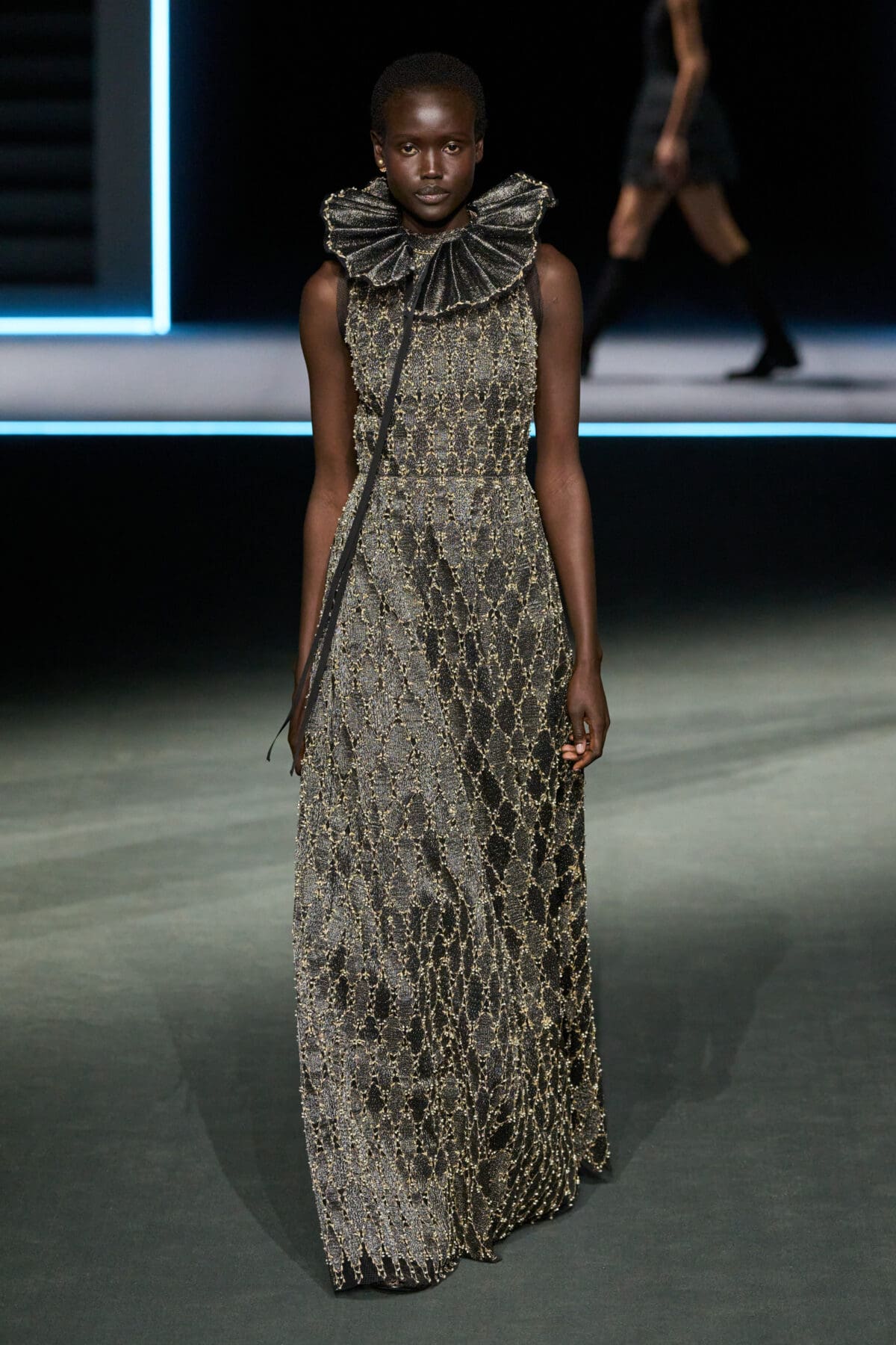 A huge ally to Chiuri in all of this is the advance in fabric and knitwear technology, mainly in specialist Italian factories. This was all intel I gleaned from a chat with her. In performance, as it were, it may not have showed up as well: Chiuri brought Robert Wilson in to add staging, but his puzzling symbolism managed to get in the way. Props, anyway, for what Chiuri did within this collection, simply by going beyond the letter of the house rules.
