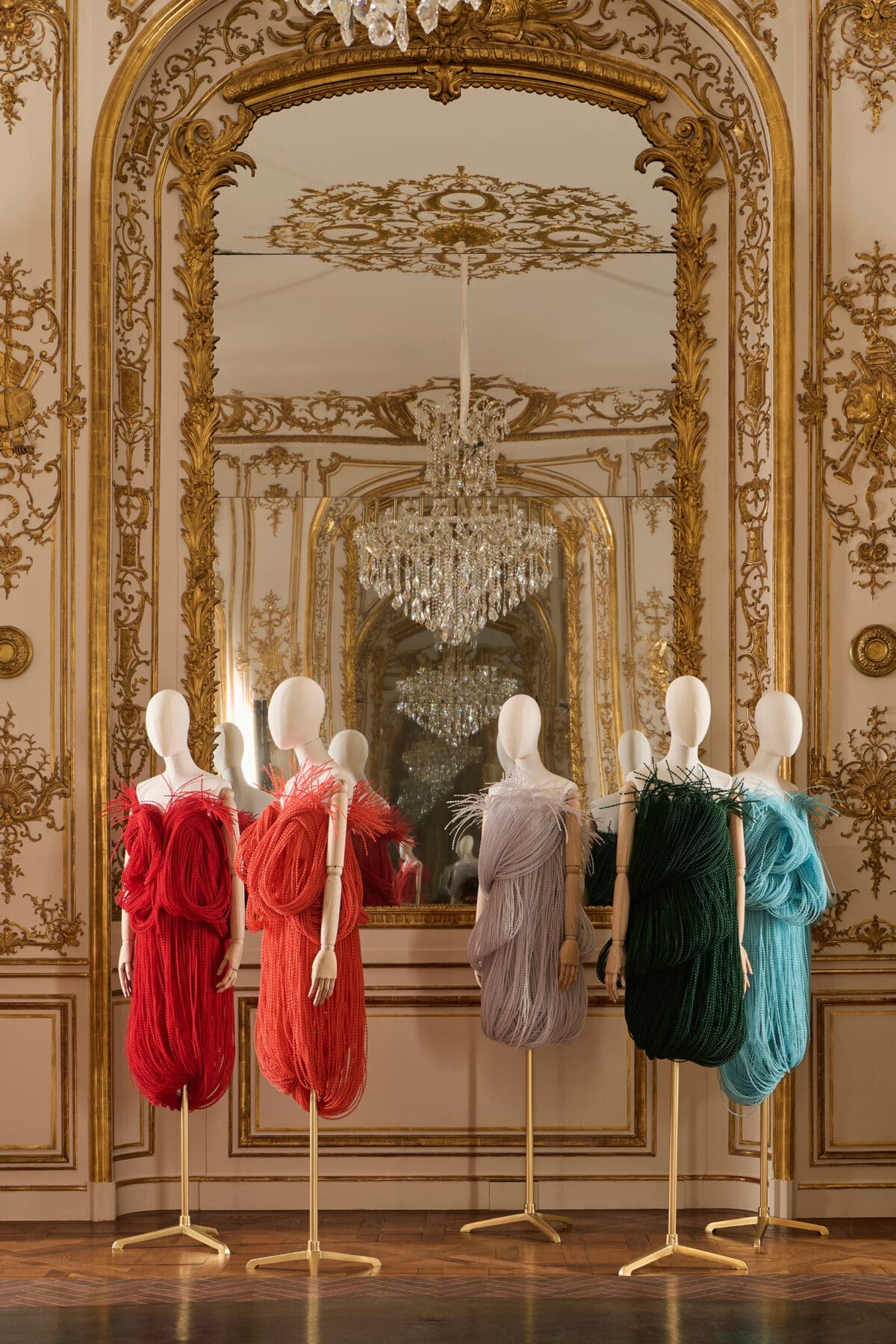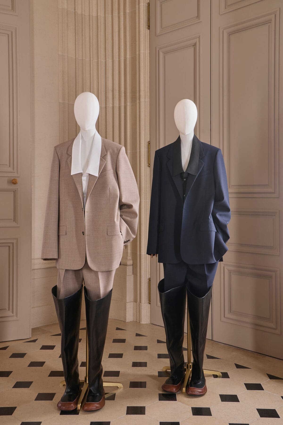 Jonathan Anderson started his tenure at Loewe in June 2014 with a static exhibition of his first menswear collection in the company’s Paris headquarters at Saint Sulpice. At the age of 30 he was already showing signs of placing the Spanish leather brand in a wider context, displaying his work as artifacts, giving a sense of how they were made; throwing in a reference to his boyhood love of Meccano; making people smile. So today there was a feeling of something coming full circle when the Loewe women’s and men’s collections were presented in another, way grander exhibition over multiple rooms of a Hotel Particulier on Rue de L’Université.