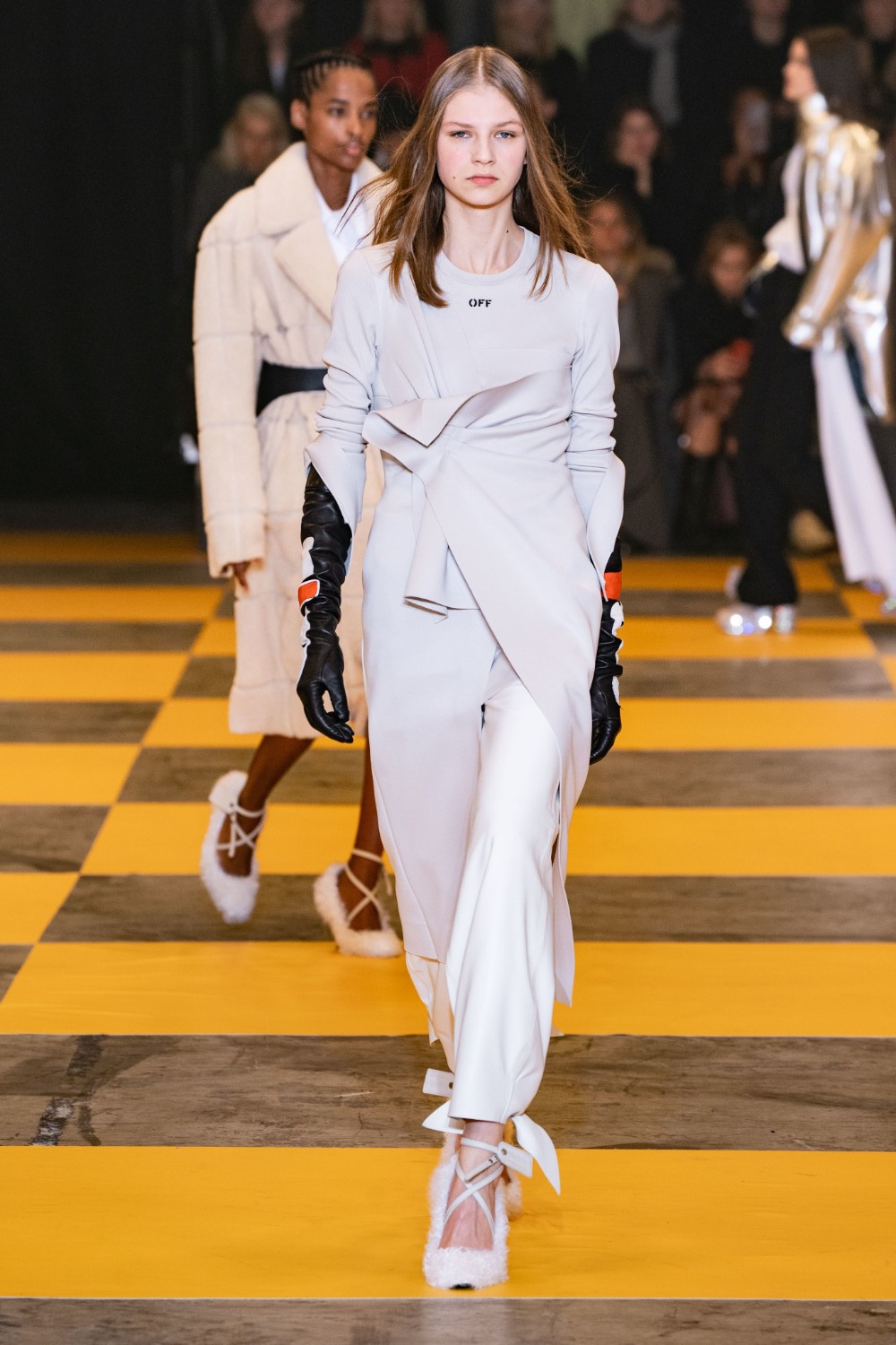 There’s a not-so-subtle shift taking place this Autumn/Winter 2019 season that sees many of fashion’s streetwear giants tone down the logomania for a return to tailoring. At the forefront is Off-White, whose famous quotation marks and athleisure slant were visibly absent from its collection. “The streetcar I rolled in was streetwear,” Virgil Abloh said. “But now it’s commonplace. I’m intrigued by the empowered woman who wants to dress in a feminine but chic way.”