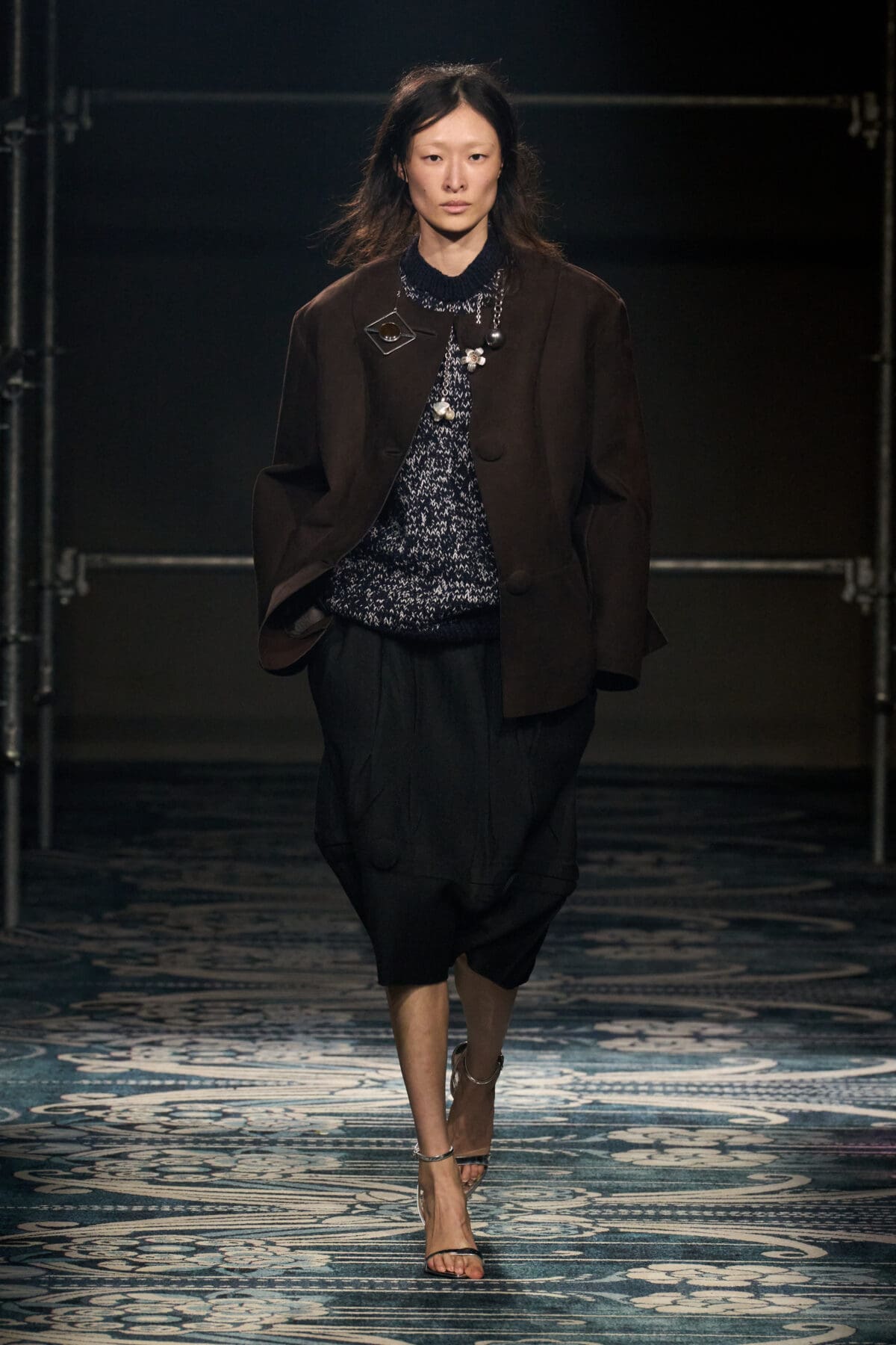 Exposing clichés is written into the brand source code here, and Prada is famous for pronouncing that “ugly is exciting,” but she and Simons tapped into something potent in their examination of femininity and its discontents, a subject that’s bubbling up in other parts of the culture, as well. By all accounts, Demi Moore is about to scoop up a Best Actress Oscar for The Substance for playing a mid-career actress who chooses an injectable that turns her into an actual monster over aging naturally, the job prospects of a 50-something star being so slim. And in Nightbitch, the demands of full-time motherhood transform Amy Adams’s character into a dog.