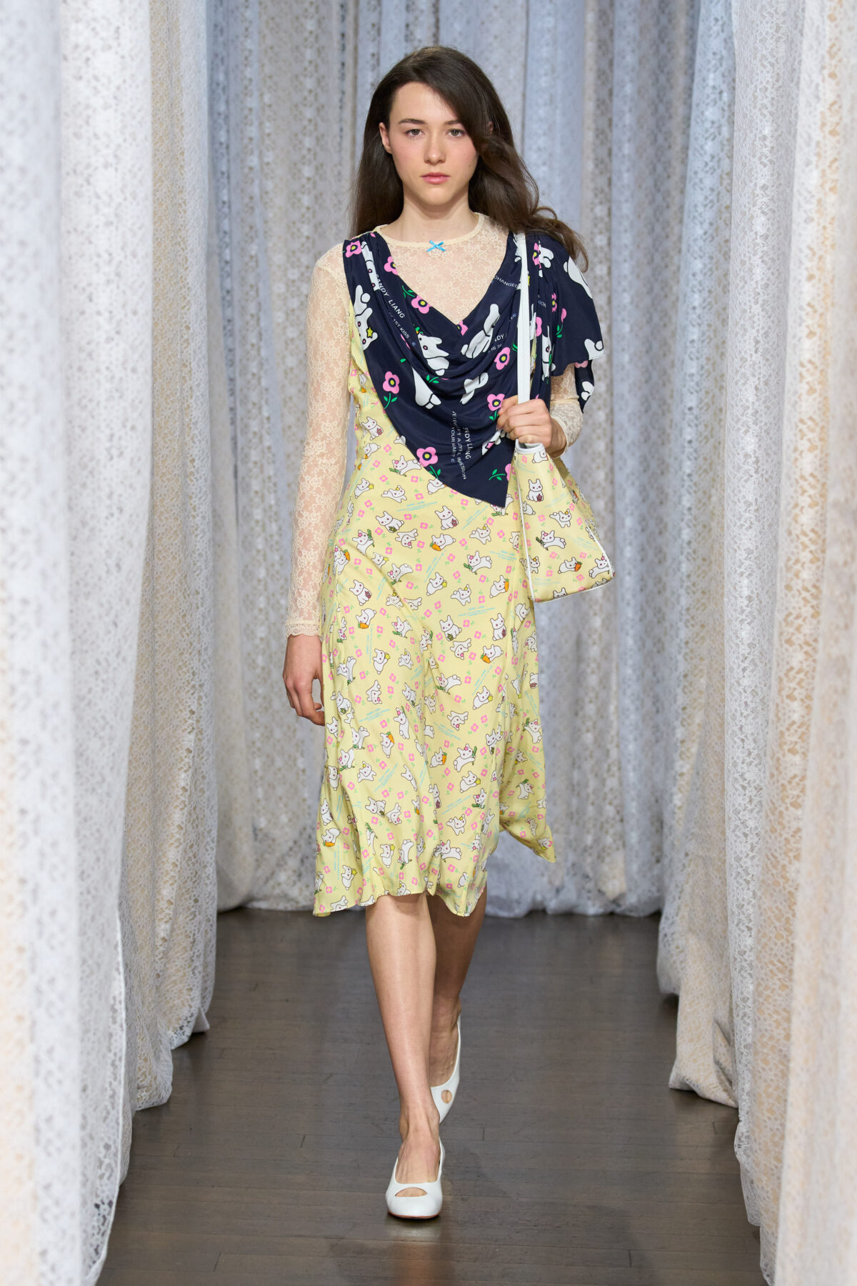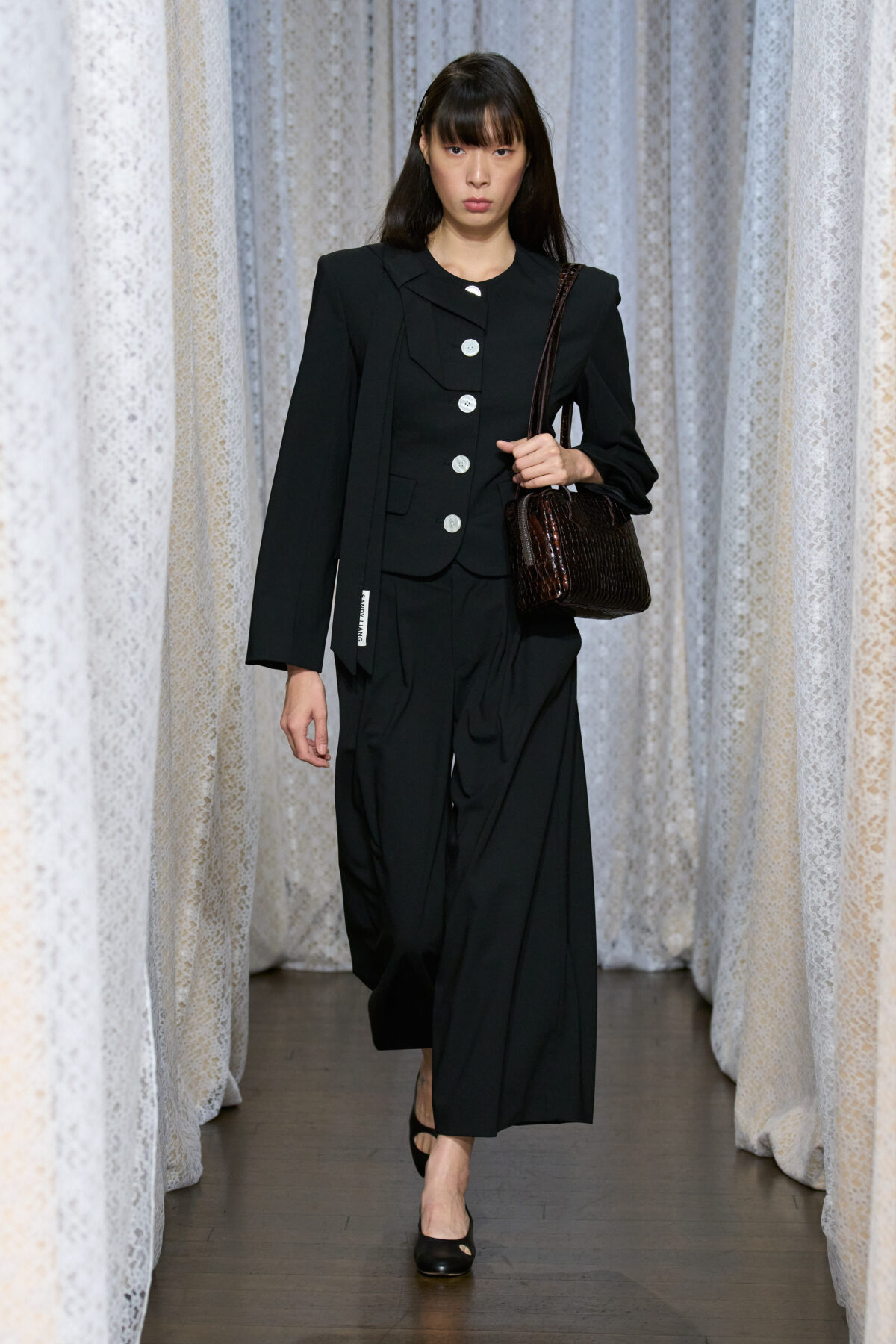 One of Sandy Liang’s most valuable traits as a designer is her ability to create not just clothes, but also a fantasy. She’s a tastemaker of sorts, and was able to create a world with just 37 looks. This season, she took us into the life of dollhouses and dolls, having been inspired by the 5th Avenue heiress Huguette Clark, who had an obsession with the toys. Liang remarked that she, like the late Clark, has a sense of childlike wonder. “You know, Clark was kind of stuck in childhood, and even as she got older, she was obsessed with dollhouses and all of her trinkets. She had a mansion on 5th Avenue, but it was just filled with rooms of all these toy houses she got commissioned in France and Japan.”