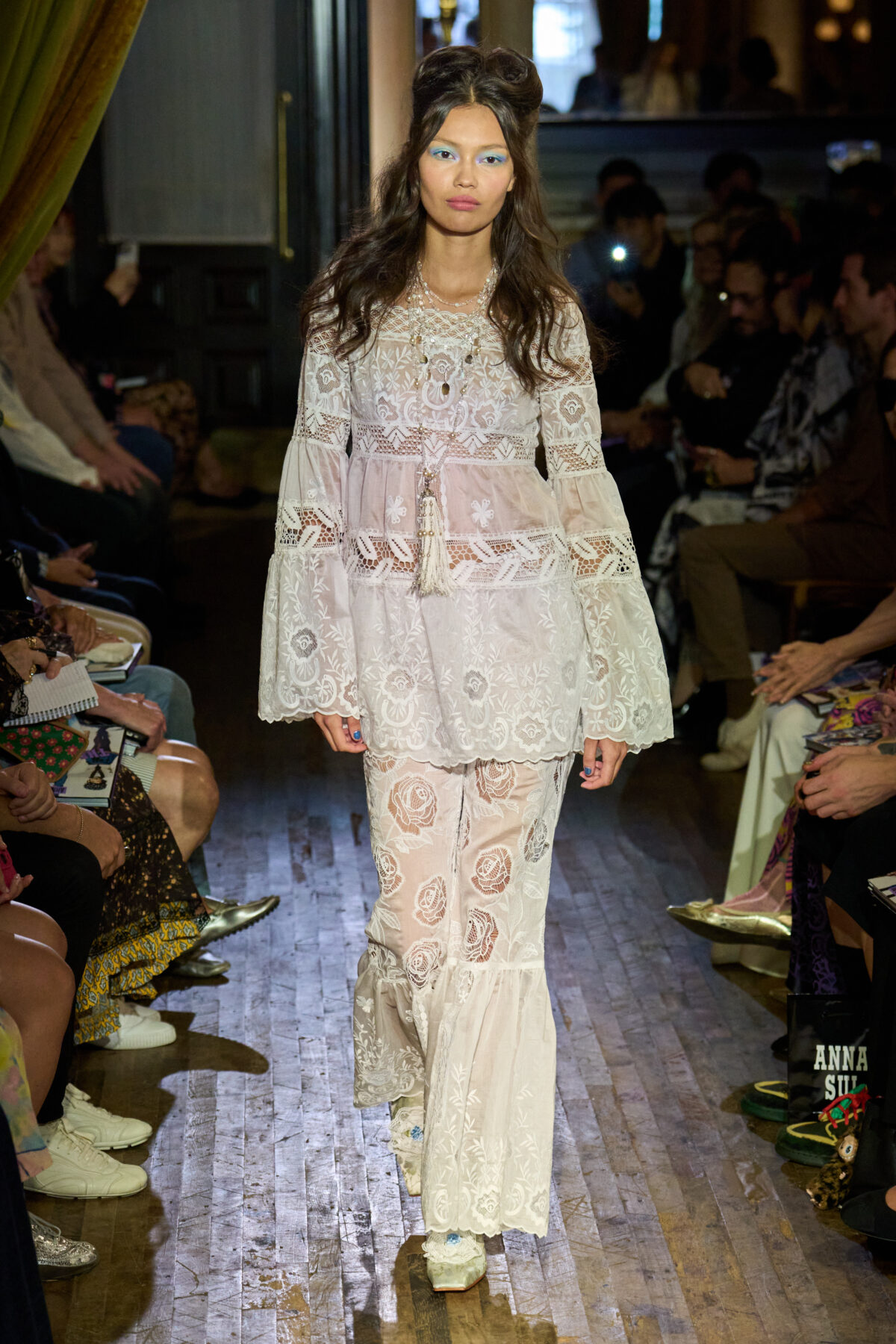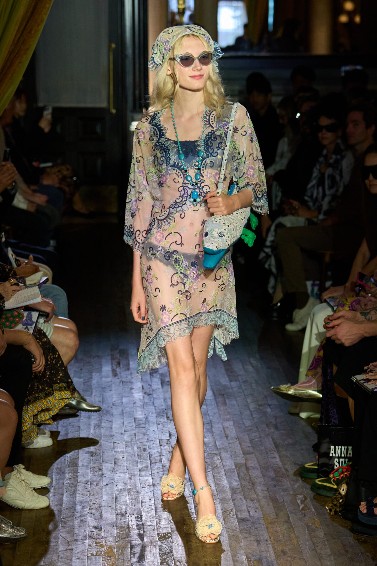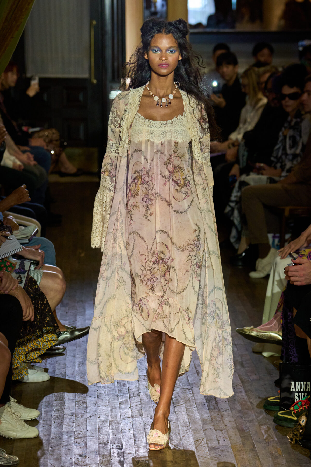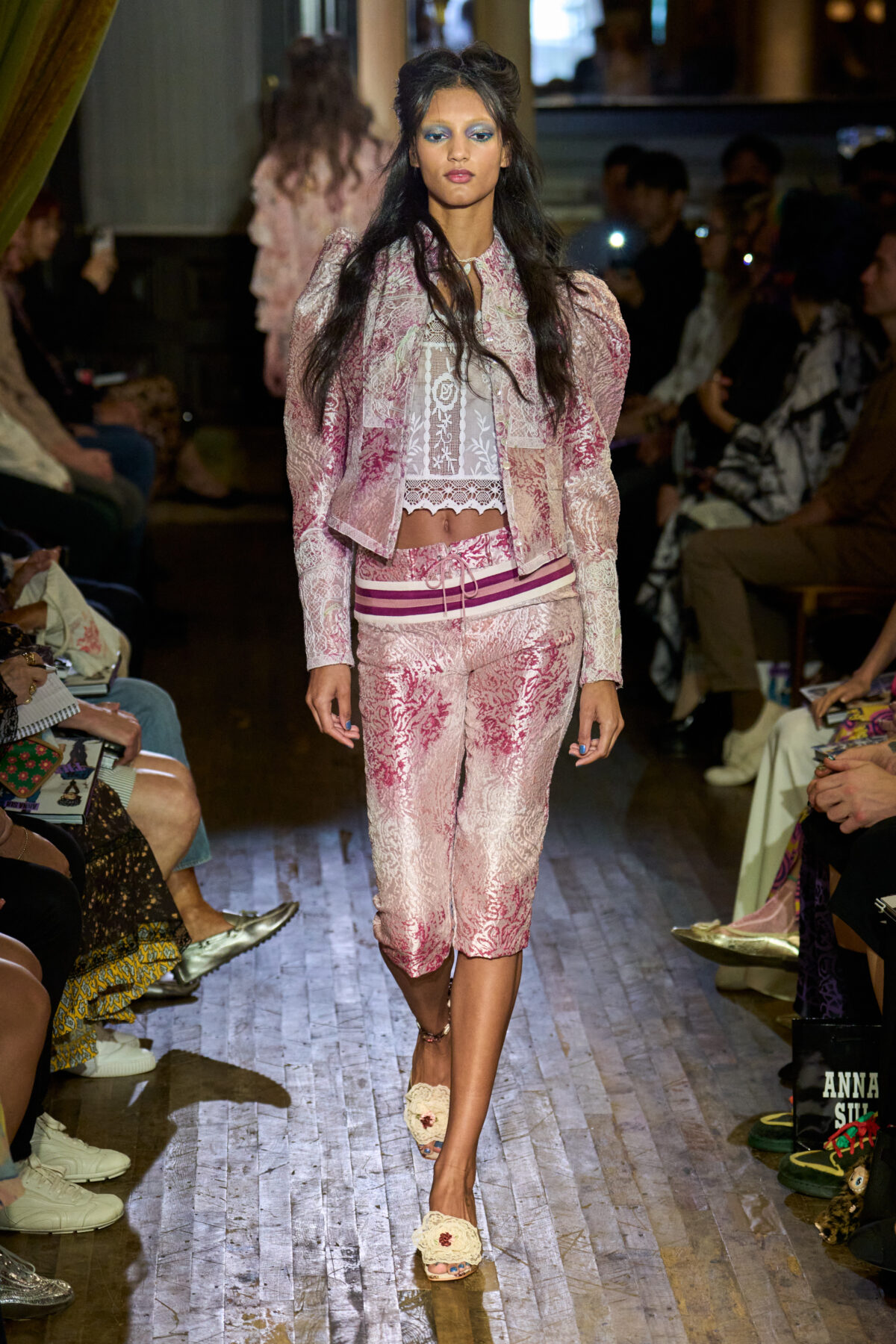 Anna Sui gave copies of her new book, The Nineties x Anna Sui, to guests at her spring show. Reflecting on the decade captured inside the new Rizzoli publication, she said, “I think people will be surprised by how different and lo-fi it was back then.” Though there are many more photographers backstage and PRs in the front of house at Anna Sui today, attending her shows can still sometimes feel like a throwback to a different time in fashion—one more motivated by personal passions than bottom lines. The words pure and true come to mind.