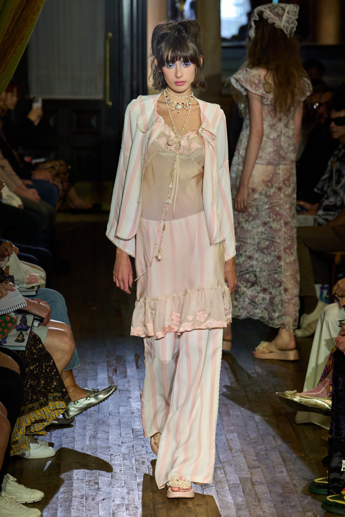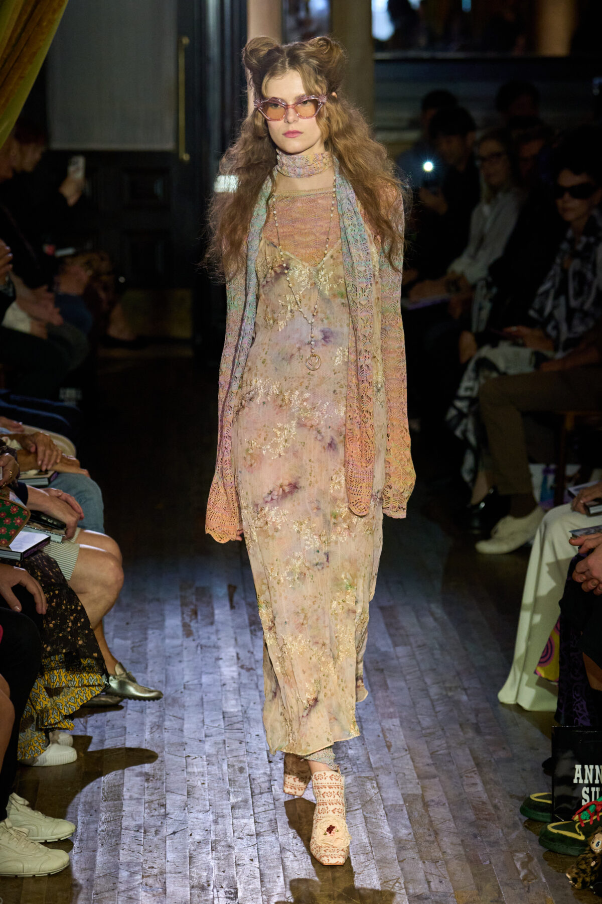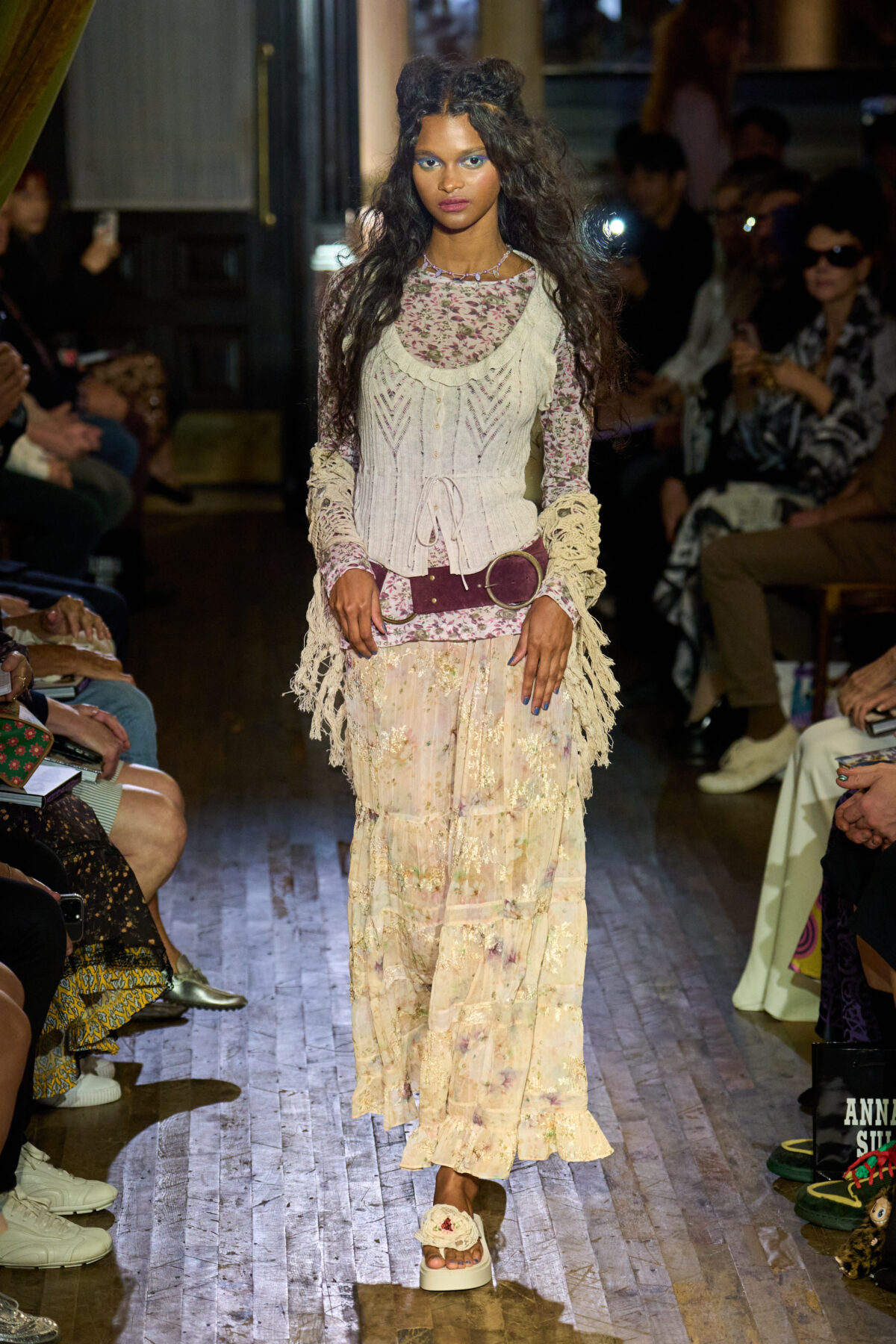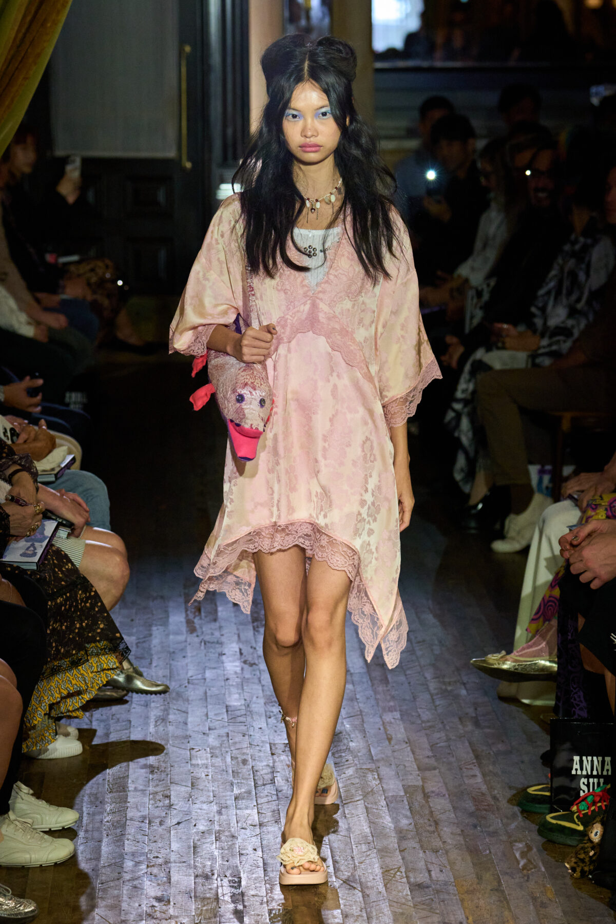 Anna Sui gave copies of her new book, The Nineties x Anna Sui, to guests at her spring show. Reflecting on the decade captured inside the new Rizzoli publication, she said, “I think people will be surprised by how different and lo-fi it was back then.” Though there are many more photographers backstage and PRs in the front of house at Anna Sui today, attending her shows can still sometimes feel like a throwback to a different time in fashion—one more motivated by personal passions than bottom lines. The words pure and true come to mind.