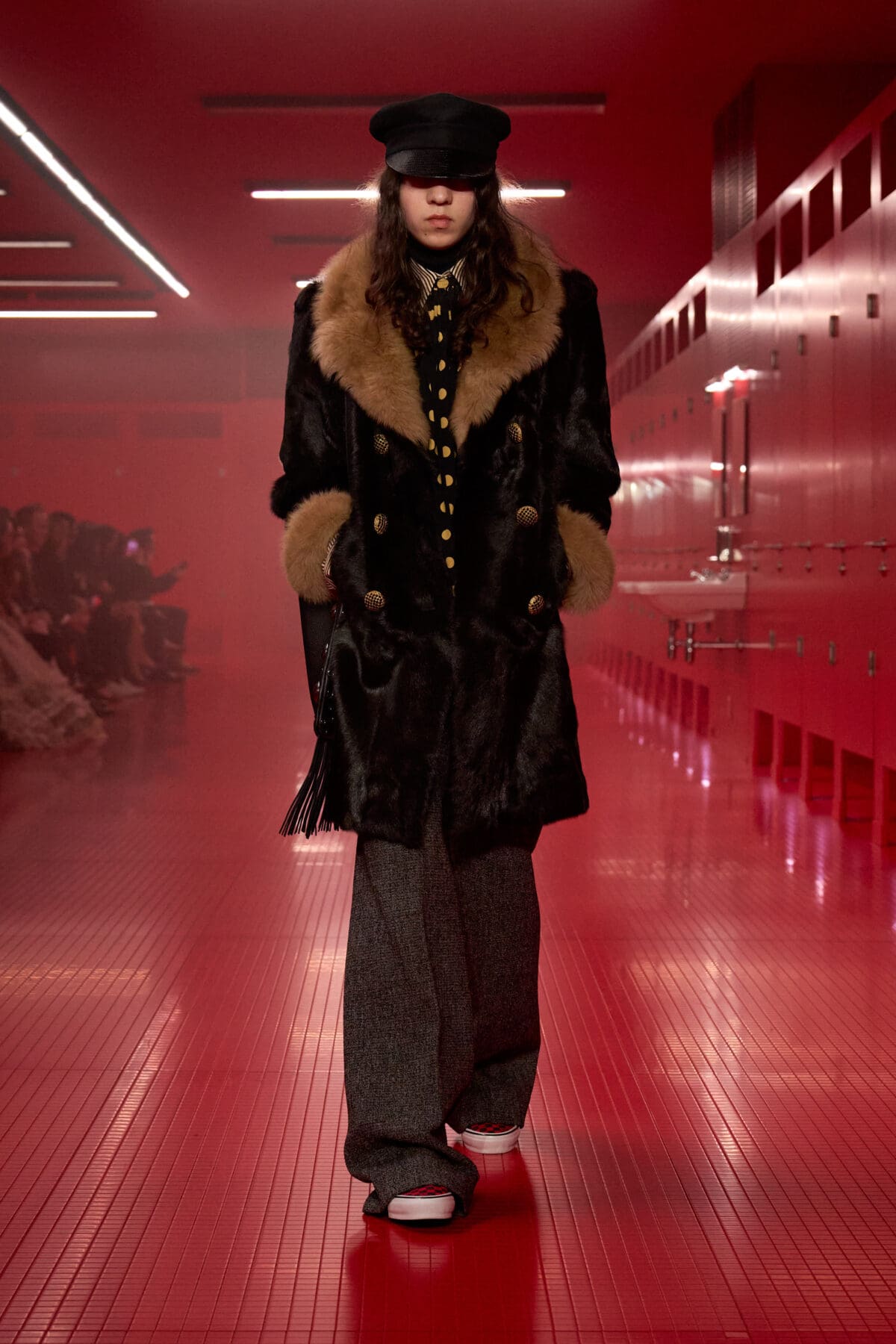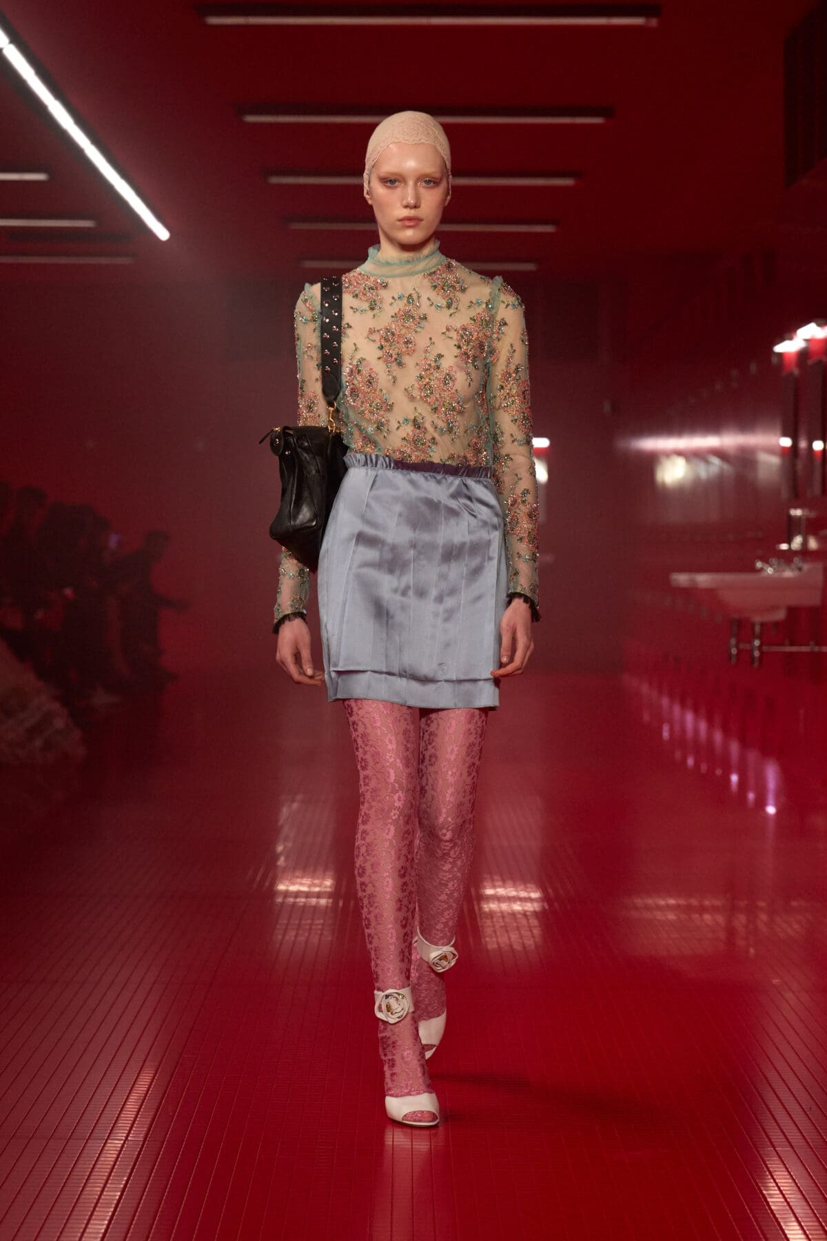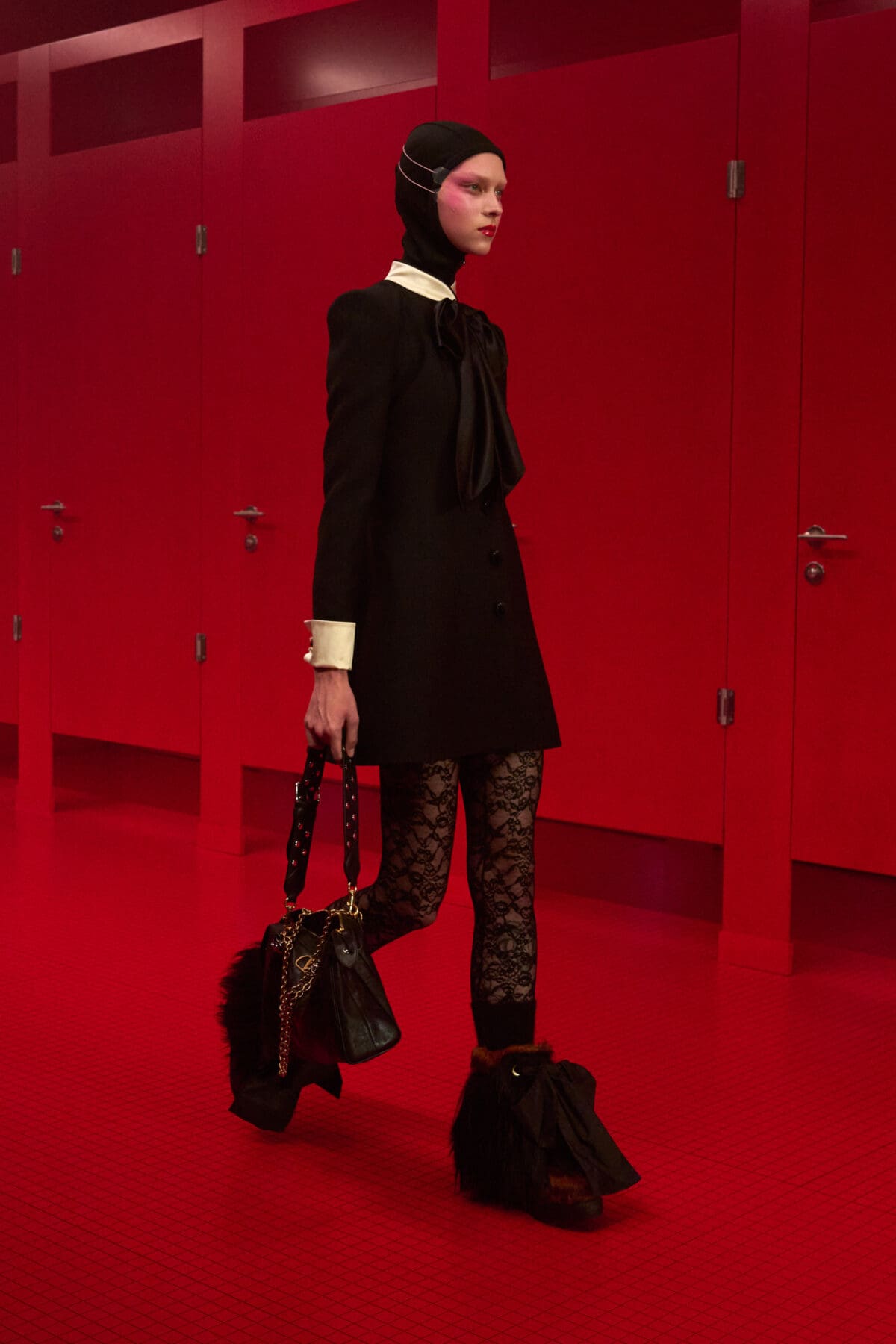 This was Michele’s second ready-to-wear show for the brand. The reaction to his first was mixed, with some suggesting that the former Gucci creative director wasn’t trying hard enough to reinvent. The sound of a toilet flushing told us all we needed to know regarding how he felt about that criticism. Officially, the show was about exploring the performative nature of intimacy (hence the public private space of the lavatory). But as one of fashion’s thought leaders on gender fluidity— Michele’s very first Gucci show having given us the men’s pussy bow blouse—he could also have been providing a sharp commentary on the rising tide of anti-trans hate.