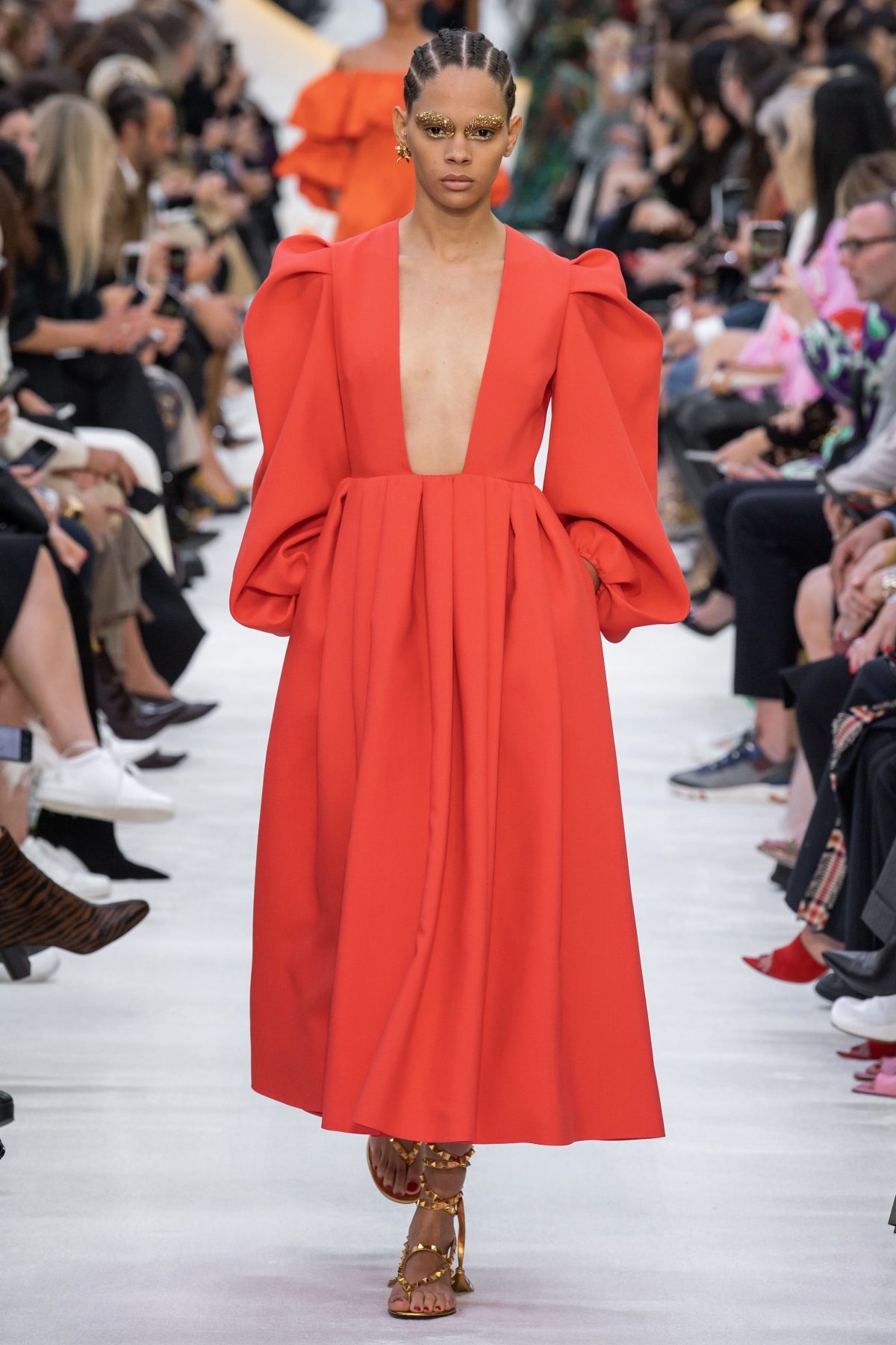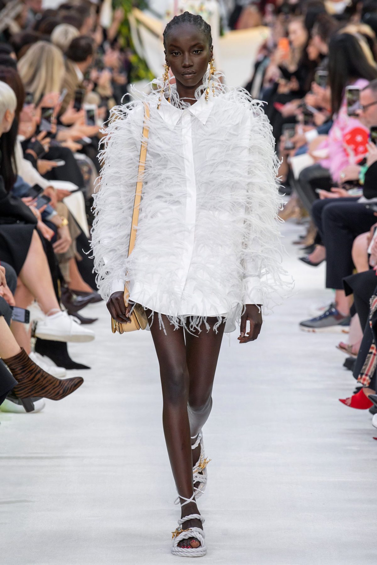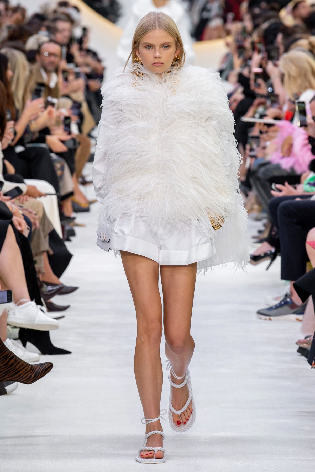 Dresses of fantastical colour and volume have become the hallmark of Pierpaolo Piccioli’s Valentino, but for Spring/Summer 2020, the creative director exercised the art of “taking away” with an opening meditation on the humble white shirt. “I wanted to work on something universal, to get back to the essence of shape and volume,” he said. And so the show opened, set to the honeyed tune of Frank Ocean’s cover of “Moon River,” with twelve all-white looks built on “ordinary” pieces like the shirtdress, the Bermuda shorts, the pencil skirt, all rendered in cotton poplin and with couture-like artistry.